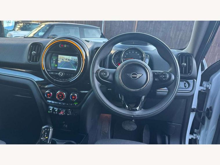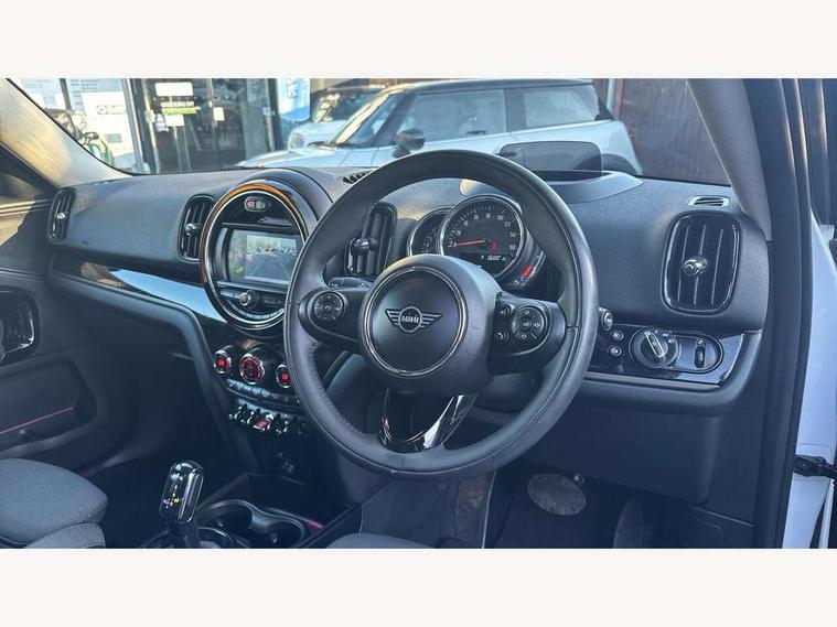 Active Guard incl speed limiting and lane departure functions with auto steering, and front collision warning with brake intervention, Automatic start/stop function with brake energy recuperation, Electro-mechanical speed dependant steering assistance, Instrument cluster, Mini E-call, MINI TeleServices, On board computer, Rear parking distance control, Double Vanos system, Fully variable valve control, High precision injection, Steptronic transmission with double clutch, FM tuner and DAB digital radio, Body colour fuel filler cap, Day time driving lights, Door sill strips, Dynamic brake lights, Electric windows, Heated rear window, Heated windscreen washer jets, Left exhaust tailpipe with chrome finisher, Model logo, Model logo on Tailgate, Radiator grille, Rain sensor with auto headlights, Rear fog lights, Rear window wiper, Side scuttle panel with integrated indicator, Split rear doors, Sun/heat protection glass, White indicator lenses, 12V Accessory socket in centre console, 360L luggage compartment capacity, 4 lashing eyes in luggage compartment, 40:20:40 split folding rear seats, Chrome interior highlights, Colour line - Carbon black, Cupholders, English handbook, Front headrests, Glove compartment, Headliner with grab handles and clothes hooks, Height and length steering column adjustment, Isofix rear child seat preparation, Leather gearshift lever and handbrake gaiters, LED reading lights, vanity mirror lights, front foot well light and spotlight on front seats, Manual air conditioning, Mechanical seat adjustment, driver seat height adjust, forward/back and front seats backrest, Multifunction steering wheel, Passenger seat height adjuster, Rear headrests, Storage compartments in doors, Sunvisors with vanity mirrors, Excitement pack - Countryman, Navigation pack - Countryman, 2 tone horn, 3 point seatbelts on all seats, 6 Airbags - front, side, head and seat belt tensioners, Anti-lock braking system (ABS), DSC - Dynamic Stability Control, Electronic handbrake, Front and rear disc brakes, Hill start assist, Tyre pressure monitoring system, Alarm system with tilt sensor, monitoring doors, bonnet interior and tailgate, Auto drive away locking, Deadlocking function, Electronic vehicle immobiliser, Locking wheel bolts, Start/stop toggle with keyless go, Tool kit,