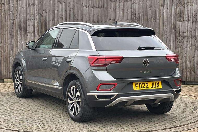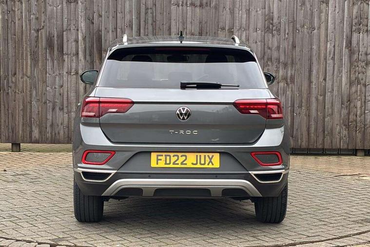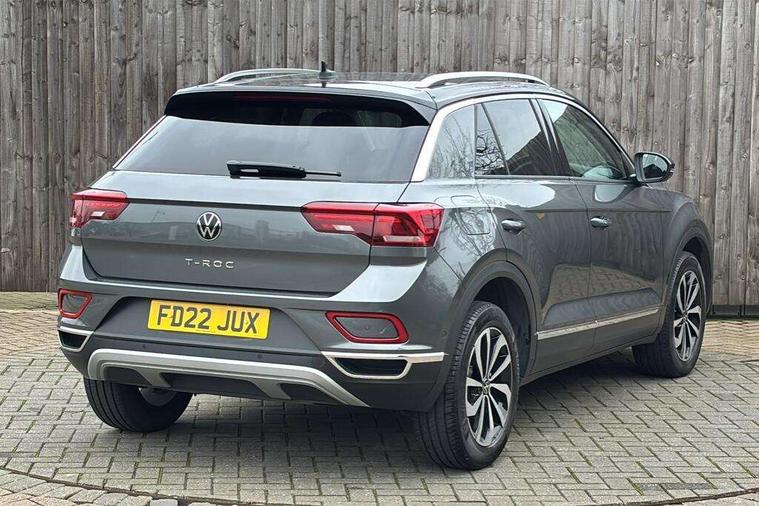 10.25" Digital cockpit pro, Bluetooth mobile phone interface, Driver alert system with fatigue detection, Driver tips and journey analysis, Emergency call service, Lane keeping system Lane Assist, Modified key software - reduce switch off time for key status change to Long no motion, Online services, Park assist including front and rear parking sensors, Service interval indicator, Tailgate/trunk lid release from outside, Think blue trainer driver tips and journey analysis, Warning sound and light for front seatbelts unfastened, Wireless app connect, Battery regeneration during braking, Start/stop function with battery regeneration, Diversity antenna for FM reception, Front and rear 6 speakers, Music playback - MP3, WMA and AAC files, Premium USB cable in choice of either Apple or Android smartphone compatibility, SD card slot, Simultaneous pairing of 2 compatible mobile devices, Title and cover art display, We Connect and We Connect Plus functionality, 3rd brake light, Auto dimming interior rear view mirror, Automatic hazard lights activation under emergency braking, Automatic headlight control with LED separate daytime running lights with coming/leaving home function, Body colour sports bumpers with silver metallic underbody fascia, Dynamic headlight range control with self adjusting whilst driving, Extended roof spoiler, Exterior mirrors aspherical on driver side, convex on front passenger side, External USB type C socket and charging sockets, Front windscreen wiper with intermittent wipe and 4 position delay, Heated rear window, LED Plus headlamps, LED rear combination lamps, LED rear number plate lights, LED tail lamp rear comination lamps, Light mode for poor weather, rain, fog or snow, Power windows with comfort operation and circuit breaker, Rain sensor, Rear exhaust tailpipe, Rear fog light on one side and reversing lights on both sides, Rear side wing doors, Rear wash/wipe with intermittent wipe setting, Remote electrically foldable door mirrors, puddle lights and reverse activated passenger's door mirror, 12V power socket in centre console, 3 rear head restraints, 3 seat bench in 2nd row, 4 load lashing points in luggage compartment, Air care climatronic air conditoning system with active combination filter and 2-zone temperature control, Chrome plated radiator grille inserts, air vent surrounds and light switch surrounds, Door and side trim panel with leatherette insert, Drawer under drivers seat, Front + rear carpet mats, Front centre armrest, Front comfort sports seats, Front cupholders x 2, Front footwell illumination, Instrument lighting, white adjustable panel illumination, Interior ambient lighting and surround lighting, Interior light delay, Isofix child seat preparation, Leather gearshift handle, LED interior light with switch off delay/dimmer and 2 front/rear LED reading lights, Load-through provision with cup holder when folded down ('Unsplit rear seat bench, split folding backrest, with centre armrest), Luggage compartment lighting, Non-folding front passenger seat backrest, Single front passenger seat, Storage compartment in left and right luggage area, Storage compartment in rear doors, Storage compartments in driver and front passenger doors, Sunvisors with illuminated vanity mirrors, Variable boot floor, height adjustable and removable, Driver assistance pack without proactive passenger protection - T-Roc, 3 point height adj front seatbelts + pretensioners, 3 point seatbelts in outer rear with ECE label, ABS, Child locks on rear doors, Driver and front passenger airbag with front passenger airbag deactivation, Driver and front passenger safety-optimised head restraints, Drivers seatbelt reminder, Electronic parking brake, Electronic Stability Control (ESC) inc EDL (Electronic Differential Lock) and ASR (Traction Control), Front and rear passengers curtain airbag system including front side airbags, Front assist with city emergency braking and pedestrian monitoring, Front seat side impact airbags, Predictive pedestrian protection, Rear disc brakes, Single tone horn, Tyre pressure loss indicator, Volkswagen roadside assistance, Alarm with interior protection, Anti-theft alarm system with interior monitoring, backup horn, and towing protection, Remote central locking with SAFELOCK, radio remote control with 2 remote control folding keys, Trims for alloy wheels,