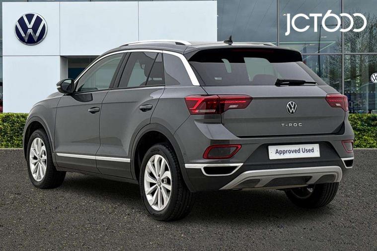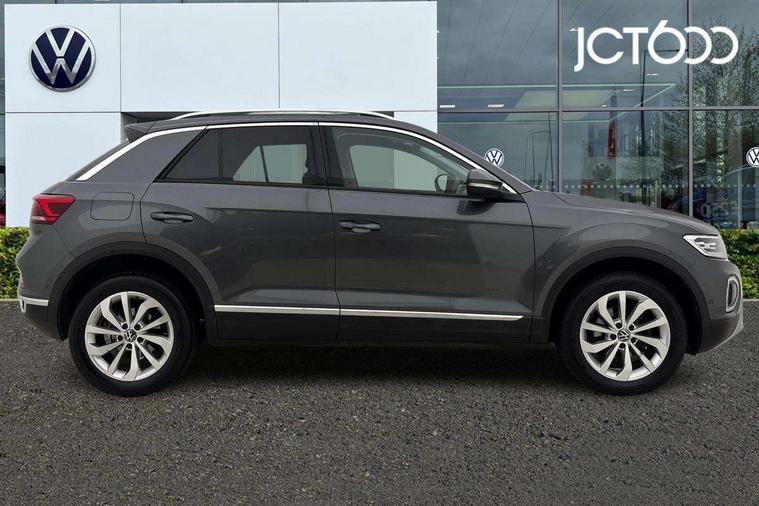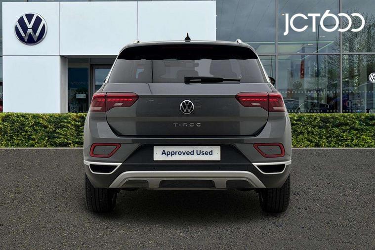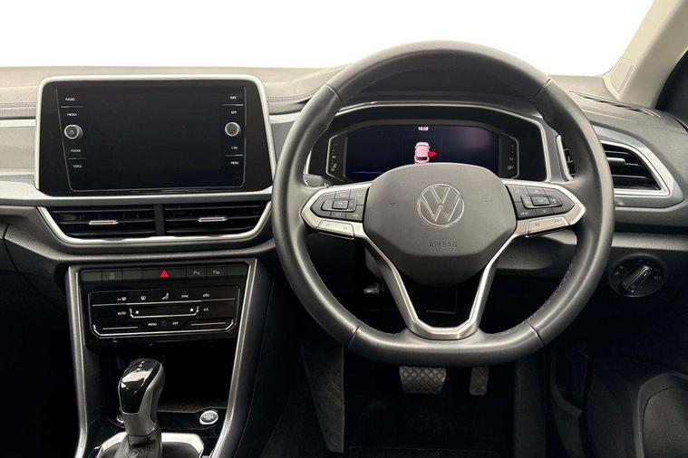10.25" Digital cockpit pro, Bluetooth mobile phone interface, Driver alert system with fatigue detection, Driver tips and journey analysis, Emergency call service, Lane keeping system Lane Assist, Modified key software - reduce switch off time for key status change to Long no motion, Online services, Park assist including front and rear parking sensors, Service interval indicator, Tailgate/trunk lid release from outside, Think blue trainer driver tips and journey analysis, Warning sound and light for front seatbelts unfastened, Wireless app connect, Battery regeneration during braking, Start/stop function with battery regeneration, Diversity antenna for FM reception, Music playback - MP3, WMA and AAC files, Premium USB cable in choice of either Apple or Android smartphone compatibility, SD card slot, Simultaneous pairing of 2 compatible mobile devices, Title and cover art display, We Connect and We Connect Plus functionality, 3rd brake light, Auto dimming interior rear view mirror, Automatic hazard lights activation under emergency braking, Automatic headlight control with LED separate daytime running lights with coming/leaving home function, Body colour sports bumpers with silver metallic underbody fascia, Dynamic headlight range control with self adjusting whilst driving, Extended roof spoiler, Exterior mirrors aspherical on driver side, convex on front passenger side, External USB type C socket and charging sockets, Front windscreen wiper with intermittent wipe and 4 position delay, Heated rear window, LED rear combination lamps, LED rear number plate lights, LED tail lamp rear comination lamps, Light mode for poor weather, rain, fog or snow, Power windows with comfort operation and circuit breaker, Rain sensor, Rear exhaust tailpipe, Rear fog light on one side and reversing lights on both sides, Rear side wing doors, Rear wash/wipe with intermittent wipe setting, Remote electrically foldable door mirrors, puddle lights and reverse activated passenger's door mirror, 12V power socket in centre console, 3 rear head restraints, 3 seat bench in 2nd row, 4 load lashing points in luggage compartment, Air care climatronic air conditoning system with active combination filter and 2-zone temperature control, Chrome plated radiator grille inserts, air vent surrounds and light switch surrounds, Door and side trim panel with leatherette insert, Drawer under drivers seat, Front + rear carpet mats, Front centre armrest, Front comfort sports seats, Front cupholders x 2, Front footwell illumination, Instrument lighting, white adjustable panel illumination, Interior ambient lighting and surround lighting, Interior light delay, Isofix child seat preparation, Leather gearshift handle, LED interior light with switch off delay/dimmer and 2 front/rear LED reading lights, Load-through provision with cup holder when folded down ('Unsplit rear seat bench, split folding backrest, with centre armrest), Luggage compartment lighting, Non-folding front passenger seat backrest, Single front passenger seat, Storage compartment in left and right luggage area, Storage compartment in rear doors, Storage compartments in driver and front passenger doors, Sunvisors with illuminated vanity mirrors, Variable boot floor, height adjustable and removable, Driver assistance pack without proactive passenger protection - T-Roc, 3 point height adj front seatbelts + pretensioners, 3 point seatbelts in outer rear with ECE label, ABS, Child locks on rear doors, Driver and front passenger airbag with front passenger airbag deactivation, Driver and front passenger safety-optimised head restraints, Drivers seatbelt reminder, Electronic parking brake, Electronic Stability Control (ESC) inc EDL (Electronic Differential Lock) and ASR (Traction Control), Front and rear passengers curtain airbag system including front side airbags, Front assist with city emergency braking and pedestrian monitoring, Front seat side impact airbags, Predictive pedestrian protection, Rear disc brakes, Single tone horn, Tyre pressure loss indicator, Volkswagen roadside assistance, Anti-theft alarm system with interior monitoring, backup horn, and towing protection, Remote central locking with SAFELOCK, radio remote control with 2 remote control folding keys, Trims for alloy wheels,