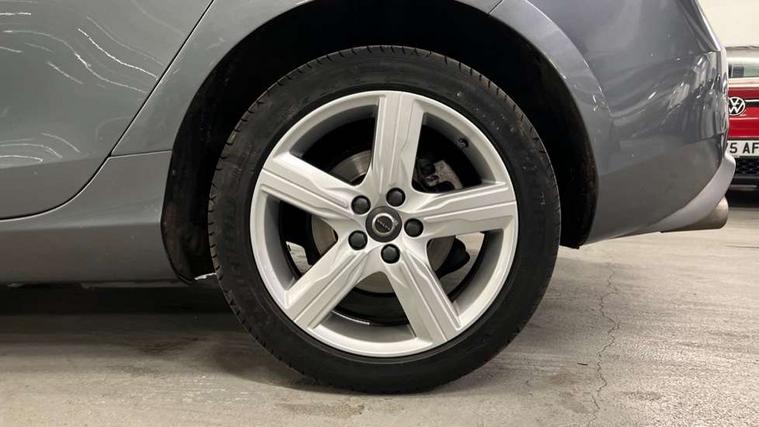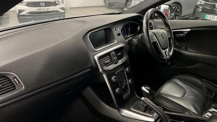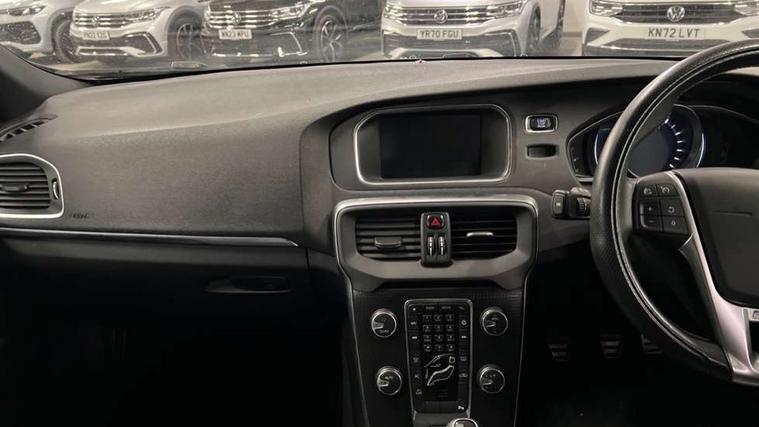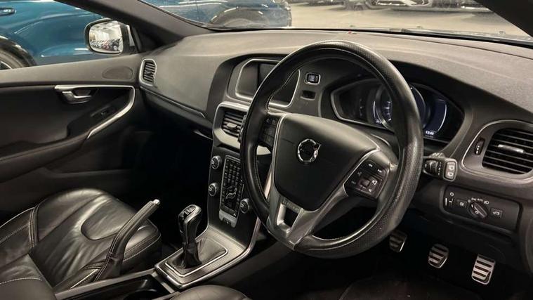 Active TFT crystal driver's instrument display, Front park assist, Information centre, Intelligent driver information system (IDIS), Rear park assist, Rear parking camera, Sensus navigation system, Service interval indicator, Speed limiter, Speed sensitive steering, Dynamic chassis, DAB Digital radio, Steering wheel audio controls, Active bending LED headlights, Adaptive brake lights, Auto dimming rear view mirror, Automatic folding door mirrors with ground lights, Automatic headlights, Body colour bumpers, Body colour door handles, Dark tinted rear side windows, Dual exhaust pipes, Electrically adjustable and heated door mirrors, Frameless rear view mirror, Front and rear electric windows, Headlamp levelling, Headlight cleaning system, High level LED brake light, Home safe and approach lighting, LED daytime running lights, LED Headlights, Matt silver finish door mirrors, R Design front grille, R Design lower front nose, Rain sensor windscreen wipers, Rear diffuser, Rear tailgate emblem, Rear wiper, Roof spoiler, Silk metal window trim surround, Visible VIN plate, 12V socket in front + rear tunnel console, 3 spoke leather steering wheel with chrome trim and R design logo, 5 headrests, 60/40 split folding rear seat, A-pillar parking ticket holder, Adjustable front centre armrest, Charcoal headlining, Door sill tread plates, Electronic climate control (ECC), Flexible load floor and grocery bag holder, Folding front passenger seat with height/lumbar adjust, Footwell lights, Front cupholders, Front door step lamp, Front reading lights, Front sports seats, Front storage box, Height adjustable drivers seat with lumbar support, Height/reach adjustable steering column, Illuminated driver/passenger vanity mirrors, Illuminated gear knob, Isofix attachments on outer rear seats, Load cover, Lockable glovebox, Pollen filter, R Design leather sports upholstery, Rear armrest with cupholder, Rear reading lights, Rear theatre lighting, Sports floor mats, Sports pedals, WHIPS - Whiplash Protection System, 5 x 3 point seatbelts, ABS+EBA, City safety braking system, Drivers knee airbag, DSTC-Dynamic Stability and Traction Control, Dual stage driver's airbag, Dual stage passenger airbag, Front/rear seatbelt pre-tensioners, Hill start assist, Inflatable curtain, Manual rear child locks, Passenger airbag cut-off device, Pedestrian airbag system, Side airbags, Side curtain airbags, Side impact protection, Tyre pressure monitor, Warning triangle, Anti-theft alarm including immobiliser/volume sensor + level sensor, Deadlocking system, Key integrated remote control central locking, Locking wheel nuts, Stealth aluminium trim,