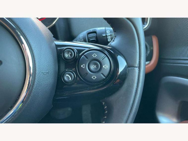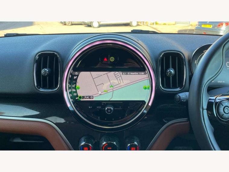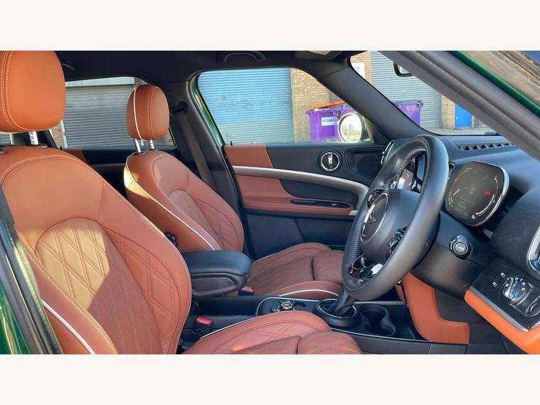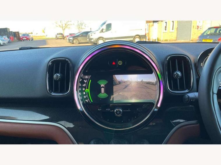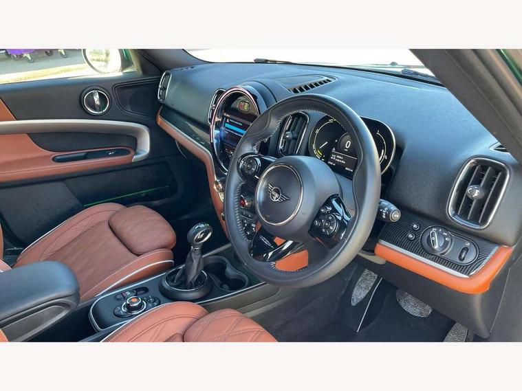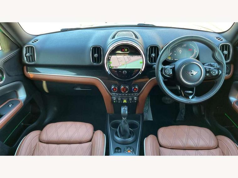 Active Guard incl speed limiting and lane departure functions with auto steering, and front collision warning with brake intervention, Automatic start/stop function with brake energy recuperation, eDrive button, Electro-mechanical speed dependant steering assistance, Instrument cluster, MINI Driving Modes - centre toggle switch to control driving setting (sport, mid and green), Mini E-call, MINI TeleServices, On board computer, Rear parking distance control, Automatic transmission, Charging flap on front left lower A-panel, Double Vanos system, Fully variable valve control, High precision injection, Home charging cable, Performance Control, Public charging cable, FM tuner and DAB digital radio, Bonnet scoop, Chrome border honeycomb structure radiator grille with S badge, Chrome fuel filler cap, Chrome line exterior, Day time driving lights, Dynamic brake lights, Electric windows, Heated rear window, Heated windscreen washer jets, LED fog lights, LED Headlights, Metal door sill strips with Cooper S imprint, Model logo, Model logo on Tailgate, Rain sensor with auto headlights, Rear fog lights, Rear window wiper, Side scuttle panel with integrated indicator, Split rear doors, Sun/heat protection glass, Twin exhaust tailpipe, White indicator lenses, 12V Accessory socket in centre console, 360L luggage compartment capacity, 4 lashing eyes in luggage compartment, 40:20:40 split folding rear seats, Chrome interior highlights, Colour line - Carbon black, Cupholders, English handbook, Front headrests, Glove compartment, Height and length steering column adjustment, Interior lighting with 12 basic colours selectable via toggle switch in roof, Isofix rear child seat preparation, Leather gearshift lever and handbrake gaiters, LED reading lights, vanity mirror lights, front foot well light and spotlight on front seats, Manual air conditioning, MINI Yours fine walk nappa leather steering wheel with contrast stitching in silver and MINI Yours badge, Multifunction steering wheel, Passenger seat height adjuster, Rear headrests, Storage compartments in doors, Sunvisors with vanity mirrors, Excitement pack - Countryman, Navigation pack - Countryman, 2 tone horn, 3 point seatbelts on all seats, 6 Airbags - front, side, head and seat belt tensioners, Acoustic pedestrian protection, Anti-lock braking system (ABS), DSC - Dynamic Stability Control, Electronic handbrake, Front and rear disc brakes, Hill start assist, Tyre pressure monitoring system, Alarm system with tilt sensor, monitoring doors, bonnet interior and tailgate, Auto drive away locking, Deadlocking function, Electronic vehicle immobiliser, Locking wheel bolts, Start/stop toggle with keyless go, Chrome line interior, Tool kit,