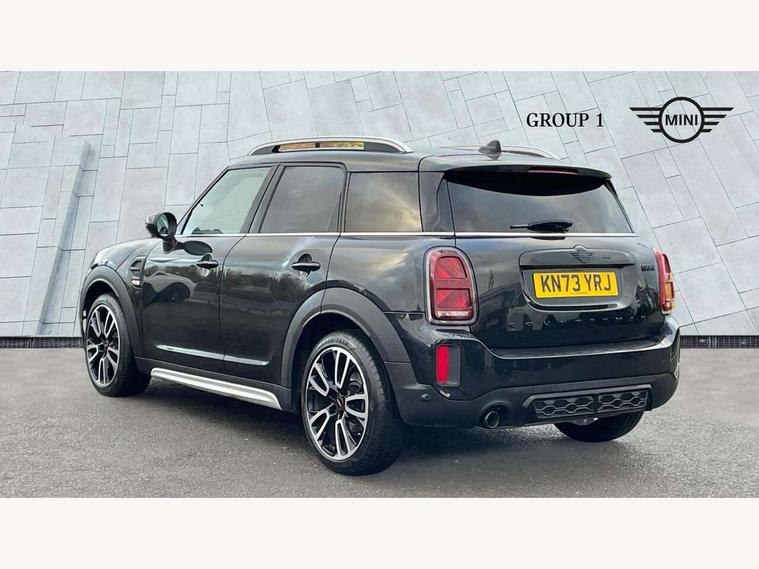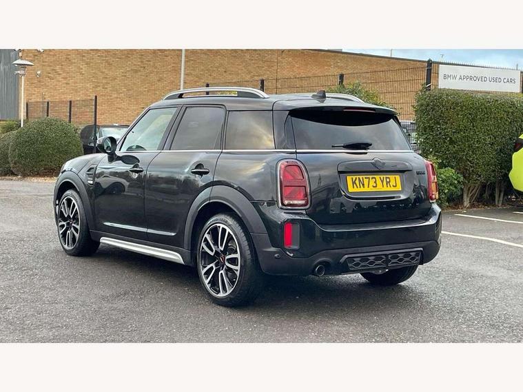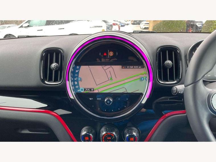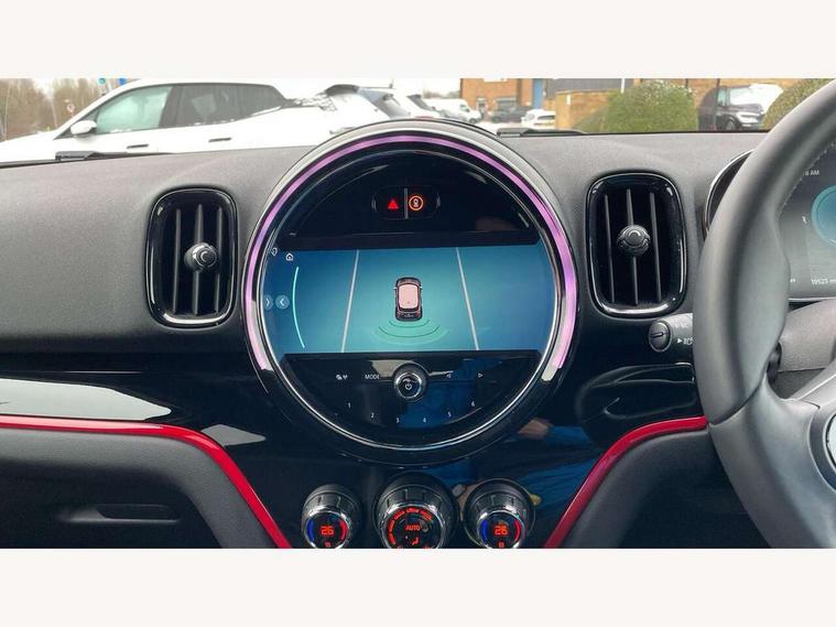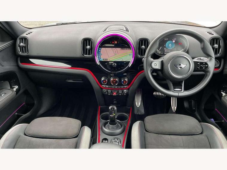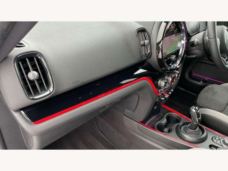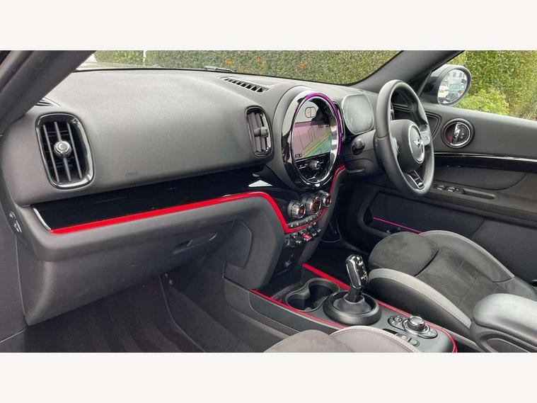 Active Guard incl speed limiting and lane departure functions with auto steering, and front collision warning with brake intervention, Automatic start/stop function with brake energy recuperation, Compatible mobile phone bluetooth with audio streaming, Cruise control with brake assist, Electro-mechanical speed dependant steering assistance, Instrument cluster, MINI Driving Modes - centre toggle switch to control driving setting (sport, mid and green), Mini E-call, On board computer, Double Vanos system, Fully variable valve control, High precision injection, Performance Control, Steptronic transmission with double clutch, FM tuner and DAB digital radio, 3rd brake light, Body colour fuel filler cap, Day time driving lights, Door sill strips, Dynamic brake lights, Electric windows, Heated rear window, Heated windscreen washer jets, John Cooper Works - aerodynamic kit (front and rear apron, spoiler), front and rear sport bumpers and part-painted side sills with door sill finishers, John Cooper Works Logo, LED fog lights, Model logo, Model logo on Tailgate, Rain sensor with auto headlights, Rear fog lights, Rear side wing doors, Rear window wiper, Side scuttle panel with integrated indicator, Split rear doors, Sun/heat protection glass, White indicator lenses, 12V socket in centre console, 3 seat bench in 2nd row, 360L luggage compartment capacity, 4 lashing eyes in luggage compartment, 40:20:40 split folding rear seats, Anthracite headlining with grab handles and clothes hooks, Chrome interior highlights, Colour line - Carbon black, Cupholders, English handbook, Front headrests, Glove compartment, Height and length steering column adjustment, Interior lighting with 12 basic colours selectable via toggle switch in roof, Isofix rear child seat preparation, LED reading lights, vanity mirror lights, front foot well light and spotlight on front seats, Mini John Cooper Works leather gearshift lever and handbrake gaiters, Multifunction steering wheel, Nappa leather steering wheel with MINI Yours logo, Rear headrests, Single front passenger seat, Stainless steel pedals and foot rest, Storage compartments in doors, Sunvisors with vanity mirrors, Excitement pack - Countryman, Navigation pack - Countryman, Piano black exterior pack - Countryman, 2 tone horn, 3 point seatbelts on all seats, 6 Airbags - front, side, head and seat belt tensioners, Anti-lock braking system (ABS), DSC - Dynamic Stability Control, Electronic handbrake, Front and rear disc brakes, Hill start assist, Manual rear child locks, Tyre pressure monitoring system, Alarm system with tilt sensor, monitoring doors, bonnet interior and tailgate, Auto drive away locking, Deadlocking function, Electronic vehicle immobiliser, Locking wheel bolts, Start/stop toggle with keyless go, Piano black JCW interior trim, Tool kit,