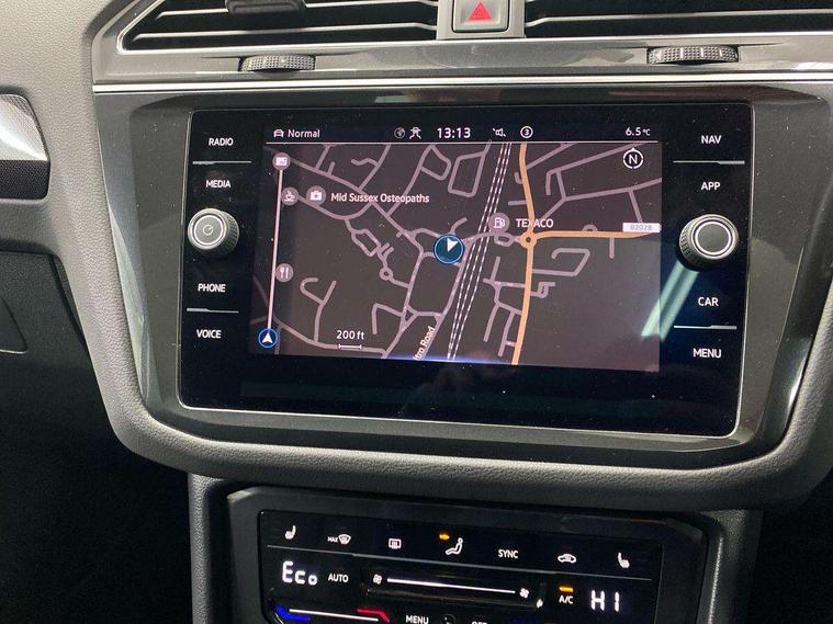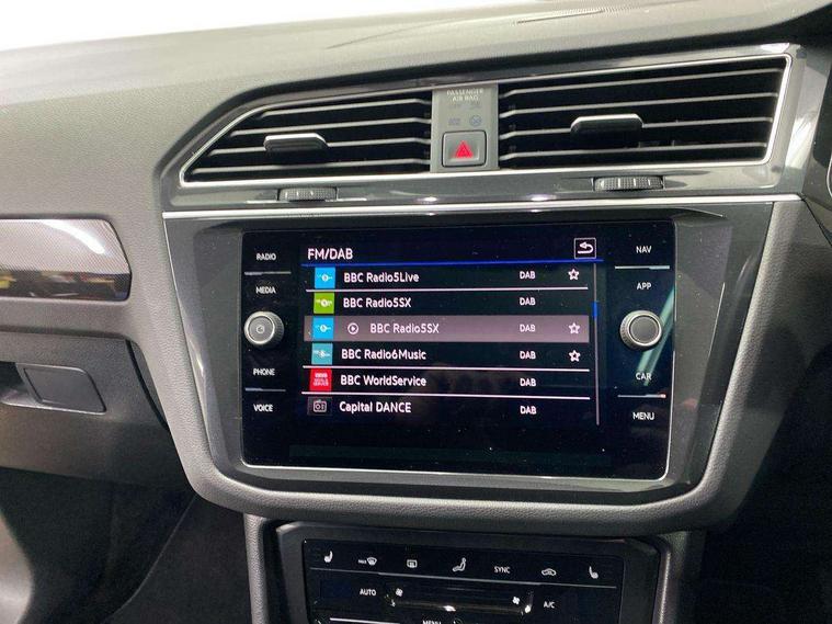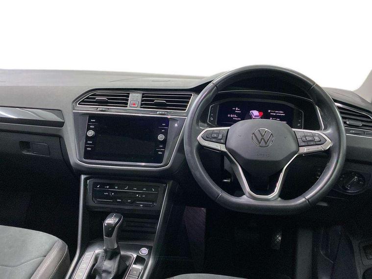Adaptive cruise control ACC stop and go including speed limiter, App-Connect incl. App-Connect Wireless for Apple CarPlay and Android Auto, Bluetooth phone integration system, Digital Cockpit Pro - Active info display, Distance control assist, Driver alert system, Driver profile selection, Dynamic road sign display, eCall emergency call system, Electromechanical speed sensitive power steering, Engine start/stop button, Lane keeping system Lane Assist, Lights on warning, Motorised electric tailgate operated via key fob, drivers door and foot movement under tailgate, Multifunction front facing camera, Outside temperature display, Premium multifunction display with multi colour display, Remote control boot opening, Rev counter, Revision / skills operating concept travel assistant, Service interval indicator, Speed limit display, Start/stop system with regenerative braking, Tailgate/trunk lid unlocking from outside, Trip computer, Warning sound and light for doors and tailgate open, Battery regeneration during braking, Charging cable Mode 3 Type 2 / 3 (16A), XDS electronic differential lock for improved traction and handling, 2 USB-C ports in the front, 1 USB-C charging socket on the center console in the rear, Diversity antenna for FM reception, Radio, SD card slot, Simultaneous pairing of 2 compatible mobile devices, SMS functionality - read, compose and send SMS messages using touch-screen display, Title and cover art display, Aluminium door sill protectors, Auto dimming interior rear view mirror, Automatic headlight control system, Body colour door handles, Body coloured bumpers, Body coloured door mirrors with integrated indicators, Coming/leaving home lighting function, Dynamic headlight range control, Front and rear electric windows, Heated rear window, High level 3rd brake light, IQ light-Adv high beam, Dynamic light assist for LED matrix headlamp+LED separate DRL+DCL, dark red rear LED tech, Poor weather light+ cornering light, Laminated safety glass windshield, heat and sound insulating, LED rear number plate lights, Privacy glass for rear side windows and rear window, Rain sensor windscreen wipers, Rear exhaust tailpipe, Rear fog lamp, Rear side wing doors, Rear windscreen washer and wiper with interval delay, Side and rear windows in heat insulating glass, Tilting and sliding panoramic sunroof with rear panoramic sunroof, Trailer Stability Programme, Windscreen wipers/ intermittent wipe + 4 position delay, 12V outlet in center console rear and in luggage compartment, 12V outlet in front and tray, 2 cup holders in front, 2 LED front reading lights, 2 LED rear reading lights, 3 bench rear seats in 2nd row, 3 rear headrests, 4 load lashing points, 40:20:40 split folding rear seats, Air Care Climatronic 3 zone automatic climate control with enhanced air filter and controls in the rear, Backrest release for left front seat, Climate control unit rear with touch function, Door and side trim panel in foam film and woven fabric, Front + rear carpet mats, Front centre armrest, Front footwell illumination, Front seats head restraints (x-adjustment), Height adjustable front seats, Height/reach adjust steering wheel, Instrument lighting white adjustable panel illumination, Interior light with delay, Isofix Preparation 2 Rear child seats, Leather gear knob, Lockable cooled glovebox, Luggage compartment lighting, Luggage net, Rear bench seat asymetrically split folding, longitudinally movable and folding with load-through hatch and center armrest, Remote unlocking for rear seat backrest, Removable luggage cover, Removable rear headrests, Safety optimised front head restraints, Single front passenger seat, Sliding/reclining rear seats, Standard rear seat release, Storage compartment in driver's door, Storage compartment in passenger's door, Storage compartment in rear doors, Storage compartments in luggage area left and right, Storage tray on dashboard, Sun visors with illuminated vanity mirrors, Top front comfort seats, Variable boot floor, height adjustable and removable, Ambience pack - Tiguan, Chrome pack - Tiguan, Easy open and close pack with safelock - Tiguan, 3 point seat belt for centre rear seats, 3 point seat belts with seat belt pretensioners for the outer rear seats, Active bonnet, Curtain airbags for front and rear passengers, Driver/Front Passenger airbags, Drivers knee airbag, Electronic parking brake with auto hold, Electronic Stability Control with driver steering recommendation, ABS, ASR, EDL, EDTC and trailer stabilization, Front assist with autonomous emergency braking (for Adaptive Cruise Control ACC up to 130 mph), Front disc brakes, Front passenger airbag deactivation, Front side airbags, Height adjustable front 3 point seatbelts + pretensioners, Hill hold control, Manual child proof rear door locks, Pedestrian monitoring system, Power assisted brakes, Proactive passenger protection system in combination with front assist, Rear disc brakes, Rigid safety cell with front and rear crumple zones, Two tone horn, Tyre pressure loss indicator, Warning sound and light for front seat belts if unfastened, Anti theft alarm system with interior monitoring, backup horn and towing protection, Anti theft wheel bolts, Central locking system with safelock radio remote control and 2 remote control folding keys, Electronic engine immobiliser, Tool kit, Tyre mobility kit Includes 12V compressor and tyre sealant,
