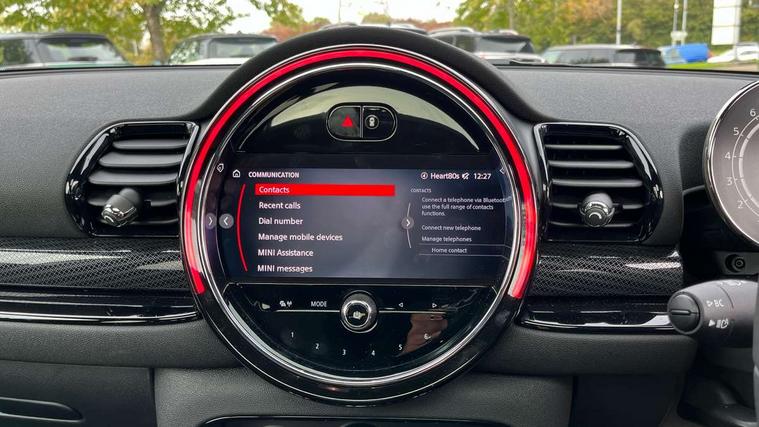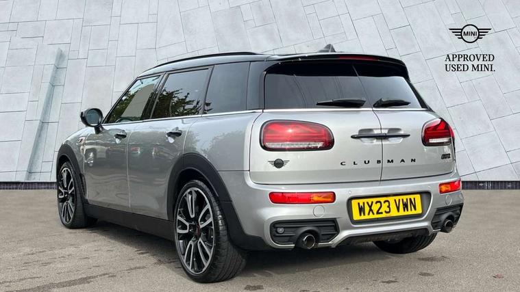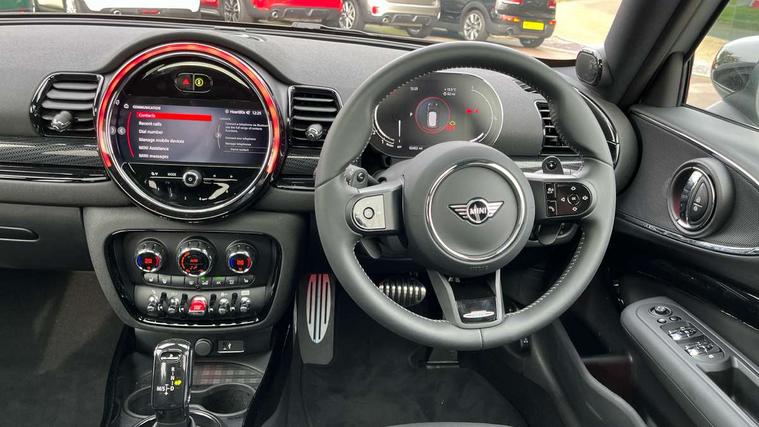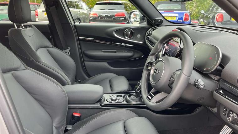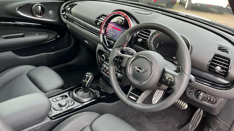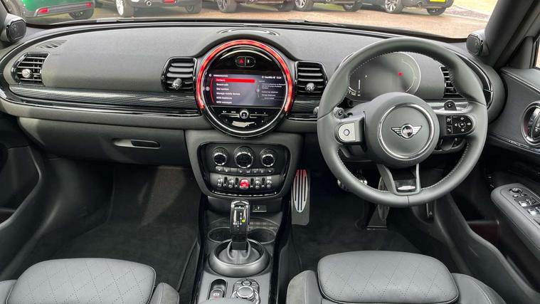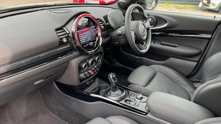 Active Guard incl speed limiting and lane departure functions with auto steering, and front collision warning with brake intervention, Automatic start/stop function with brake energy recuperation, Compatible mobile phone bluetooth with audio streaming, Digital cockpit, Electro-mechanical speed dependant steering assistance, Instrument cluster, Mini E-call, MINI TeleServices, On board computer, Rear parking distance control, Double Vanos system, Fully variable valve control, High precision injection, Performance Control, Steptronic sport transmission with double clutch and steering wheel paddles, FM tuner and DAB digital radio, Bonnet scoop, Chrome fuel filler cap, Dynamic brake lights, Electric windows, Heated rear window, Heated windscreen washer jets, John Cooper Works - aerodynamic kit (front and rear apron, spoiler), front and rear sport bumpers and part-painted side sills with door sill finishers, John Cooper Works rear spoiler, LED headlights with closed ring as daytime driving lights, LED rear light with union jack design, Metal door sill strips with Cooper S imprint, Model logo, Model logo on rear doors, Radiator grille, Rain sensor with auto headlights, Rear fog lights, Rear window wiper, Side scuttle panel with integrated indicator, Split rear doors, Sun/heat protection glass, Twin exhaust tailpipe, White indicator lenses, 12V Accessory socket in centre console, 360L luggage compartment capacity, 4 lashing eyes in luggage compartment, 60/40 split folding rear seat, Anthracite headlining with grab handles and clothes hooks, Chrome interior highlights, Cupholders, English handbook, Glove compartment, Height and length steering column adjustment, Interior lighting with 12 basic colours selectable via toggle switch in roof, Isofix rear child seat preparation, John Cooper Works perforated leather steering wheel with contrast stitching in chilli red and John Cooper Works logo, John Cooper Works sports seat with integrated headrest, adjustable thigh support and John Cooper Works logo, Leather gearshift lever and handbrake gaiters, LED reading lights, vanity mirror lights, front foot well light and spotlight on front seats, Manual air conditioning, Multifunction steering wheel, Storage compartments in doors, Sunvisors with vanity mirrors, Toolkit, Excitement pack - Clubman, Navigation pack - Clubman, 2 tone horn, 3 point seatbelts on all seats, 6 Airbags - front, side, head and seat belt tensioners, Anti-lock braking system (ABS), DSC - Dynamic Stability Control, Electronic handbrake, Front and rear disc brakes, Tyre pressure monitoring system, Alarm system with tilt sensor, monitoring doors, bonnet interior and tailgate, Auto drive away locking, Deadlocking function, Electronic vehicle immobiliser, Locking wheel bolts, Start/stop toggle with keyless go,
