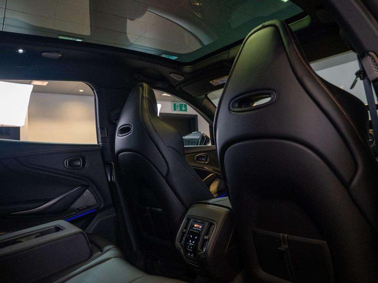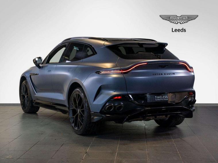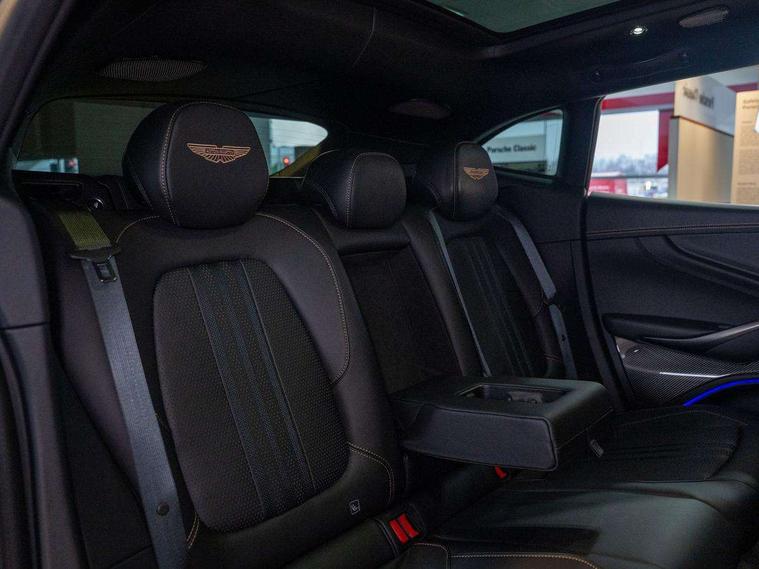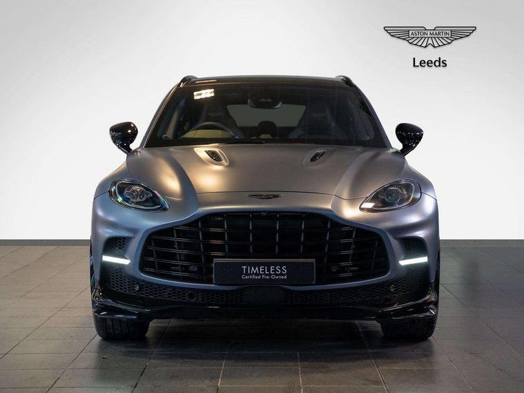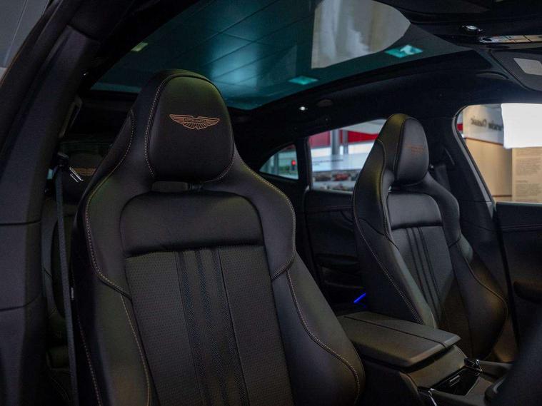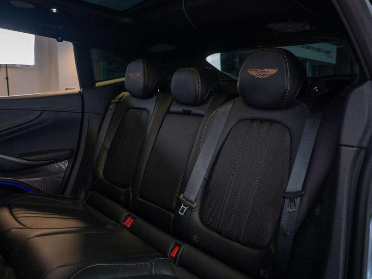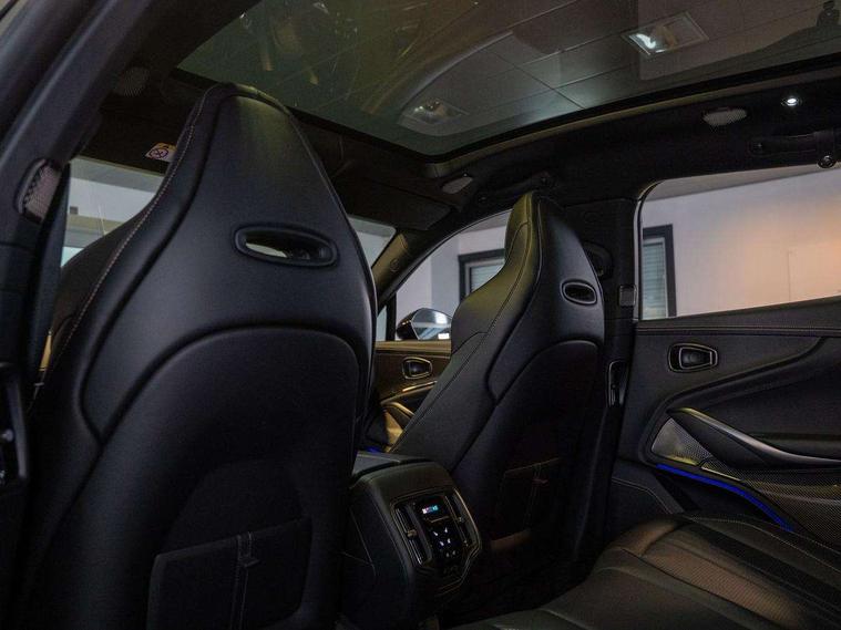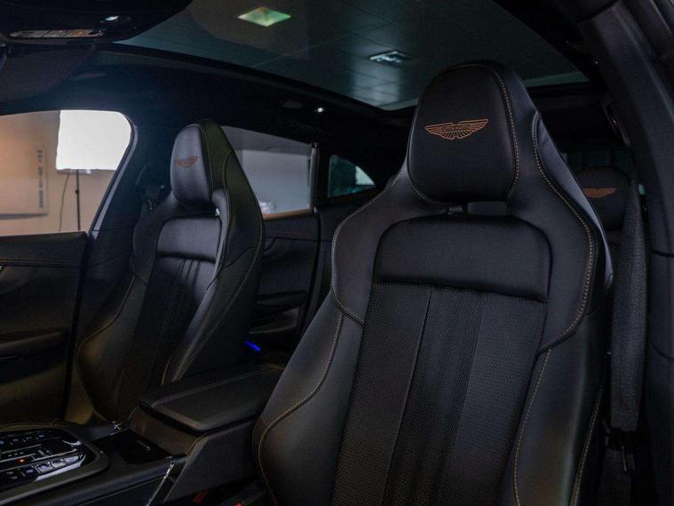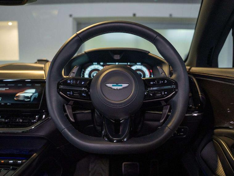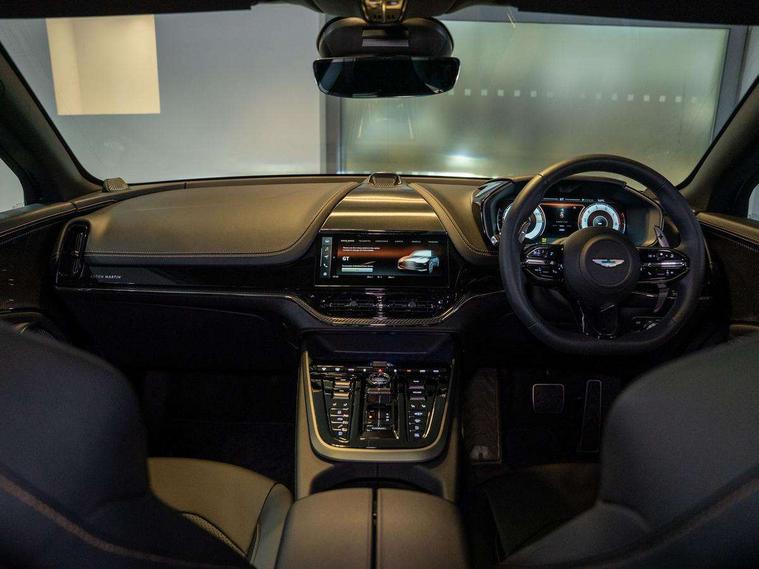10.25" TFT centre display, 12.3" TFT instrument display, Adaptive cruise control, Apple car play/Android Auto, Aston martin satin chrome designer key, Blind spot monitoring, Bluetooth telephone connectivity, Brake pad wear indicator, Drive modes Terrain, Individual, GT, Sport, Sport + including launch control, eCall emergency call system, Electric power assisted steering (EPAS), Forward collision warning, Front parking aid with visual indicator, Inductive phone charger, Infotainment touchpad and dial, Lane change warning, Lane departure warning system (LDW), Lane keep assist, Outside temperature display, Park assist system, Rear crossing traffic warning, Rear parking aid with visual indicator, Rotary dials, Rotary infotainment system interface, Satellite navigation system, SOS emergency call button, Speed limiter, Standard underbonnet, Stop/start system, Surround camera system with deploying rear camera, Traffic sign recognition, Voice control system, 9 speed automatic transmission, Active centre transfer case, Adaptive triple chamber air suspension, All Wheel Drive (AWD), Battery conditioning connector, Electric active roll control, Electric limited slip rear differential, Electronic adaptive damping system, AM/FM radio, Aston martin premium audio, Bluetooth audio streaming, DAB Digital radio, SD card slot, USB port, 3rd brake light, Acoustic laminated front windows, Active rear brake lights, Approach Illumination, Auto dimming interior rear view mirror, Automatic headlights, Automatic high beam - AHB, Bi LED headlights, Body colour side vent, Carbon fibre rear wing lip spoiler, Electric windows, Fixed panoramic glass sunroof, Heat insulating glass, Heated rear window, Horizontal DRL/turn indicator design with larger air intakes and brake cooling grilles, LED centre high mounted stop light, LED daytime running lights, LED rear fog light, Matte black mesh bonnet vents, Power foldback door mirrors, Rain sensing windscreen wipers, Rear bumper design with integrated quarter panel vents, Rear side wing doors, Rear wiper, Sport exhaust, Standard paint protection film, 12V power sockets, 16 way electric front seats with memory, 3 seat bench in 2nd row, 40:20:40 split folding rear seats, Ambient lighting, Anodised aluminium sill plaques with aston martin wings, Automatic climate control, Black loadspace carpet, Courtesy Light, Embossed - Aston martin wings, Front and rear door pockets, Front centre console storage cover, Front head restraints, Gloss black double layer side sills, Glovebox with electric locking, Heated seats, Isofix/I size rear outer, Load rails in load space, Load tie downs in load space, Lower front console storage, Map pocket on front seat storage, Rear head restraints, Single front passenger seat, Soft close doors, Sports plus seats, Stainless steel sill protector in load space, Twin cupholders in front and rear, Twin front centre armrest, Twin sunvisors with illuminated vanity mirrors, 3x3 point rear seatbelts, Airbags - Driver and front passenger and knee, Anti theft locking wheel bolts, Anti-lock braking system (ABS), Auto vehicle hold function, Autonomous emergency braking, Carbon ceramic disc brakes, Door exit warning, EBD - Electronic brakeforce distribution, Electric parking brake (EPB), Emergency brake assist, ESC (Electronic Stability Control), Front thorax airbags/Side curtain airbags, HDC - Hill descent control, High performance braking system, Hill start assist, Intelligent wet brake control, Rear child proof door locks, Rear thorax airbags, RSC - Roll stability control, Seatbelt pre-tensioners, Seatbelt status indicator, Torque vectoring brake, Traction control, Tyre pressure monitoring system, Warning triangle, Alarm/immobiliser, Keyless entry with start/stop button, Remote central locking, Seat perforaton elegant, Seat quilting elegant,