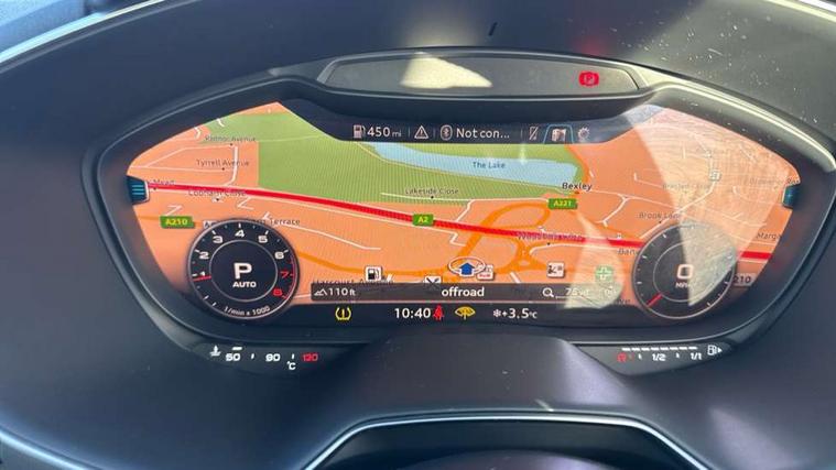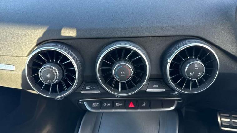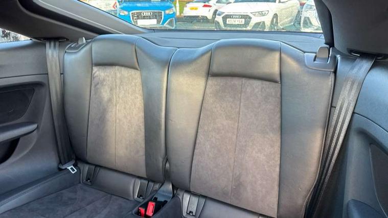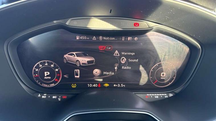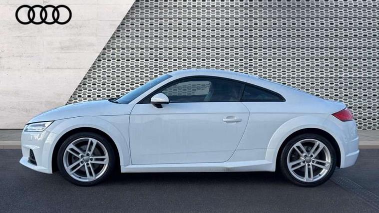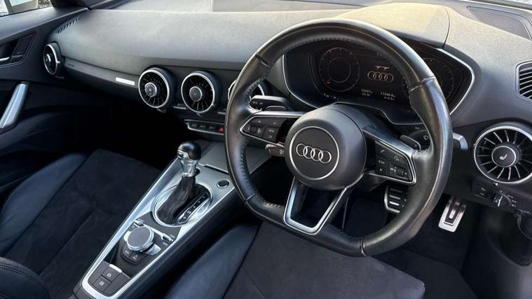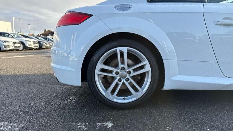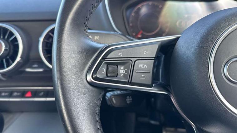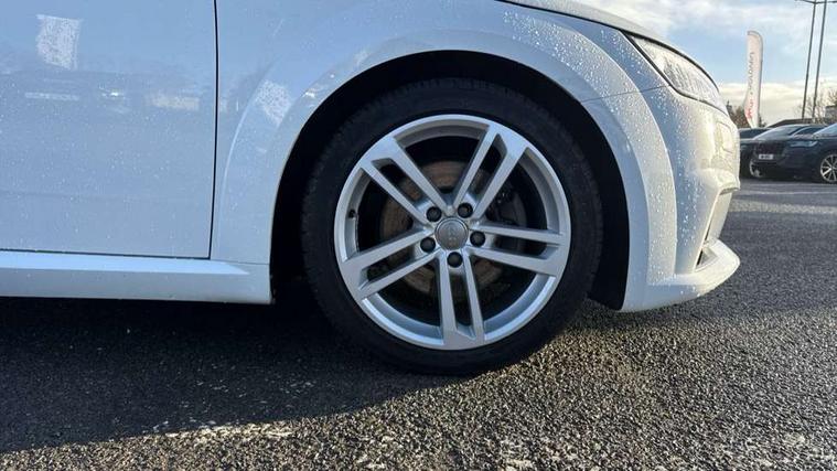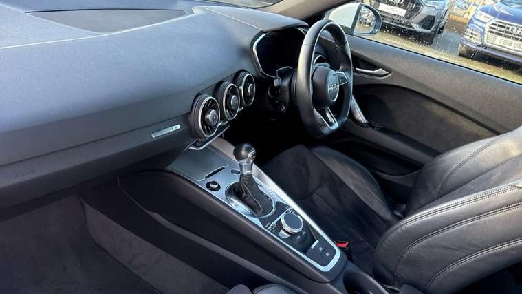 Audi drive select with 4 Pre configured modes, Audi virtual cockpit - 12.3" high-resolution LCD display with fully customisable instrument cluster, Cruise control + speed limiter, MMI touch panel, Mobile phone preparation with bluetooth interface, Progressive power assisted steering, Rear parking sensors, Service interval indicator, Start/Stop system with energy recuperation, TP memo, Sports suspension, 8 speakers, AM/FM radio, Audi music interface, Bluetooth audio streaming, DAB Digital radio, MMI Radio with CD player and SD/XC card slot, Auto dimming rear view mirror, Body colour bumpers, Electric front windows, Front fog lights, Green tinted heat insulating glass, Light and rain sensors, Retractable rear spoiler, Xenon headlights with LED daytime running lights with automatic headline range control + LED rear lights, brake lights and rear indicators, 12V socket, 3 spoke flat bottomed high multi-function leather sport steering wheel with gearshift paddles, Alcantara/Leather upholstery includes seat centre panels, door trim inserts in black Alcantara with side bolsters, head restraints in black leather, Aluminium door sill trims, Front centre armrest, Heated front seats, Height adjustable driver's seat, Height adjustable front head restraints, Height/reach adjust steering wheel, ISOFIX child seat mounting for front passenger seat with airbag deactivation, Reading lights, Rear top tether child seat ISOFIX attachment, Split folding rear seat, Tool kit, Top tether anchor plate for isofix child seat, Non smoking pack - TT/TT RS, 3 point front seat belts, ABS, ASR traction control, Brake energy regeneration, Curtain airbags, Driver and front passenger airbag with front passenger airbag deactivation, EDL traction control, Electromechanical parking brake, ESP, First aid kit, Front side airbags, Head airbags, Hill hold assist, Seatbelt warning, Tyre pressure warning, Warning triangle, Anti theft alarm, Anti theft wheel bolts, Immobiliser, Keyless Go, Remote central locking, Aluminium design inlays, Tyre repair kit,
