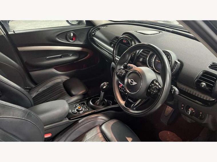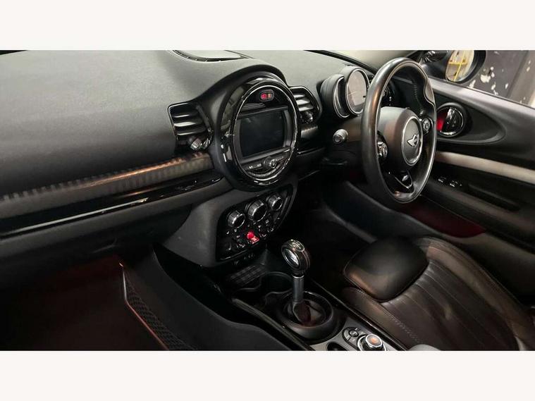 Brake pad wear indicator warning light, Central display with LED ring and 6.5" colour touch screen, DTC - Dynamic traction control, Exterior temperature gauge, Intelligent emergency call, MINI TeleServices, Navigation system, On board computer, Personal Profile, Service interval indicator, Servotronic speed sensitive power steering, Electronic differential lock, Performance Control, Auxiliary input socket, DAB digital radio module, MINI Connected, MP3 compatible radio/single CD player, Radio visual boost, Anti dazzle rear view mirror, Body colour scoop integrated into engine- compartment lid, Body coloured bumpers, Chrome door handles, Chrome headlight surround, Electric front windows + one touch + anti-pinch, Electrically adjustable door mirrors, Follow me home headlights, Front intermittent wipers, Heated door mirrors/heated windscreen washers, Heated rear window with timer, Honeycomb radiator grille, Metal look door sill finishers, Rain sensor including auto headlights activation, Rear wiper, Roof spoiler, Twin chromed exhaust pipes, White indicator lights, 12V power point front, 4 lashing points to secure luggage, 60/40 split folding rear seat, Centre console storage box, Chrome interior door handles, Driver/passenger sunvisors, Easy entry seats, Front and rear cupholders, Front and rear Isofix child seat preparation, Front and rear velour floor mats, Front centre armrest with storage compartment, Front headrests, Front interior light, Front passenger grab handle, Front seat backrest storage nets, Heater with recirculation function, Height/reach adjust steering wheel, Luggage compartment lighting, Multifunction steering wheel, Outer passenger rear headrests, Rear armrest with storage, Rear grab handles, Sport front seats, Storage compartments in doors, Toolkit in luggage compartment, Interior lights pack - Mini Clubman, 3 point automatic seatbelts, 3 point seatbelts on all rear seats, ABS, Automatic Stability Control (ASC), Cornering brake control (CBC), Crash Sensor - activates hazard/interior lighting + unlocks doors, Driver and passenger airbags, Driver and passenger side airbags, DSC - Dynamic Stability Control, Electronic brake force distribution, Electronic parking brake, Front curtain airbags, Front passenger airbag deactivation, Fuel cut off safety device, Hill start assist, Pyrotechnically pre-tensioned front seatbelts, Traction control, Twin horns, Tyre pressure warning, Drive away door locking, Keyless Start, Locking wheel bolts, RF remote control central locking, Second remote key, Thatcham category 1 alarm + immobiliser,