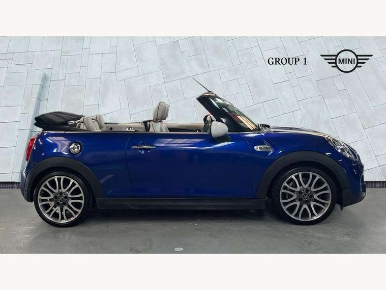 Acoustic seat-belt warning, Apple car play, Bluetooth wireless phone connectivity, Brake fluid level warning light, Brake pad wear indicator warning light, Connected driver, Cruise control with brake assist, DTC - Dynamic traction control, Exterior temperature gauge, Intelligent emergency call, MINI Driving Modes - centre toggle switch to control driving setting (sport, mid and green), MINI remote services, MINI TeleServices, Navigation system XL, Oil level indicator, On board computer, Real time traffic information, Rear park distance control, Service interval indicator, Servotronic PAS, Stop/start button, Electronic differential lock, Performance Control, Auxiliary input socket, DAB digital radio module, Harman Kardon Hi Fi system with amplifier and 12 speakers, MINI Connected XL, Radio visual boost with MINI Connected, Anti dazzle mirror, Anti trapping/one touch open close front windows, Body colour scoop integrated into engine- compartment lid, Body coloured bumpers, Bonnet Stripes - White, Chrome bezels around rear lights and headlights, Chrome door handles, Chrome line exterior, Chrome plated fuel cap, Chrome plated radiator grille, Electric front windows, Electrically adjustable door mirrors, Follow me home headlights, Heated door mirrors, Heated rear window with auto timer, Heated windscreen washer jets, High gloss black tailgate handle, Honeycomb radiator grille, LED fog lights, LED headlight and daytime running lights, LED rear lights, Metal look door sill finishers, Metallic paint, Mini Yours soft top - Black/Union Jack, Rain sensor including auto headlights activation, Twin chromed exhaust pipes, White indicator lights, White mirror caps, 2 rear head restraints, 4 boot load lashing points, 50/50 split folding rear seats, 6-way manually adjustable driver's seat, Active carbon filter, Auxiliary socket in centre console storage compartment, Black velour floor mats, Centre console storage, Colour line - Satellite grey, Driver/passenger sunvisors and vanity mirrors, Dual zone automatic air conditioning, Easy entry seats, Front and rear cupholders, Front head restraints, Front interior light, Front sports seats with front seat backrest storage nets, Gear/selector and handbrake in artificial leather, Glovebox, Internal chrome door handles, Isofix child seat preparation, Lounge Leather upholstery + lumbar support, Luggage compartment lighting, MINI Yours leather steering wheel, Multifunction steering wheel, Passenger seat height adjuster, Reach + rake adjustable steering column, Storage compartments in doors, Toolkit in luggage compartment, Convertible pack - Mini Convertible, Interior lights pack - Mini Convertible, MINI Excitement pack - Mini Convertible, Non-smoker package, Storage Compartment Pack - Mini Convertible, 3 point seatbelts, ABS/EBD, ASC+T, Cornering brake control (CBC), Crash Sensor - activates hazard/interior lighting + unlocks doors, Driver and passenger airbags, Driver/front passenger side airbags, DSC - Dynamic Stability Control, Fuel cut off safety device, Head airbags, Hill start assist, Manual passenger airbag deactivation function, Seatbelt pretensioners, Two tone horn, Tyre pressure warning, Drive away door locking, Keyless Start, Locking wheel bolts, Remote central locking/doors+fuel cap+tailgate, Second remote key, Thatcham category 1 alarm + immobiliser, Chrome line interior, MINI Yours fibre alloy interior trim, Satellite grey door and rear side trim panels, 18" Mini Yours vanity two tone spoke alloy wheels, Run flat tyres,