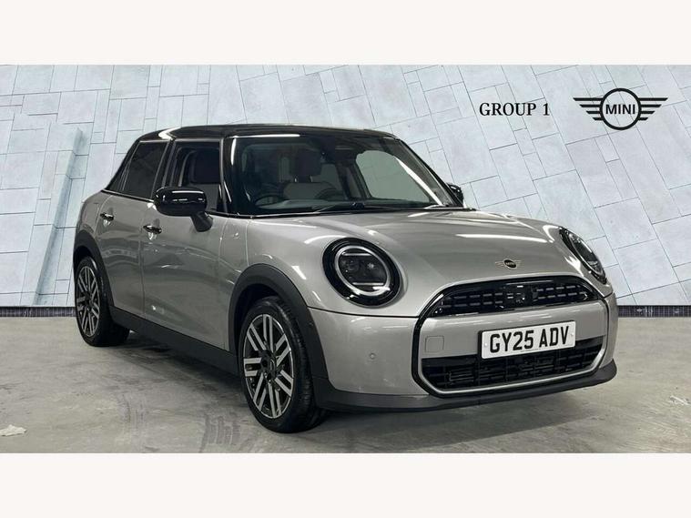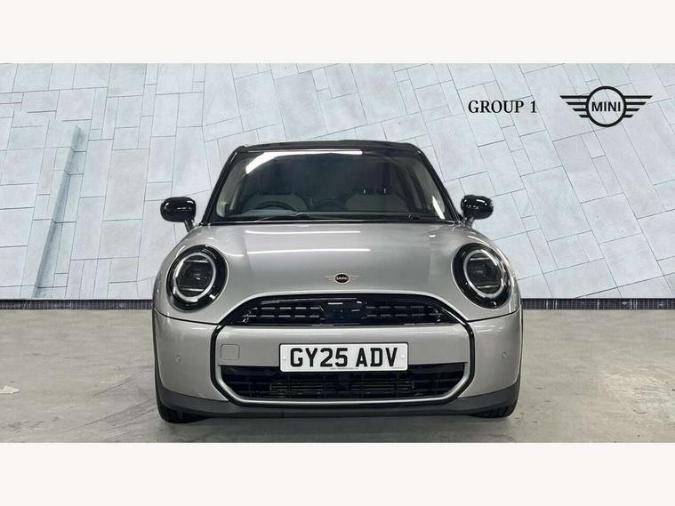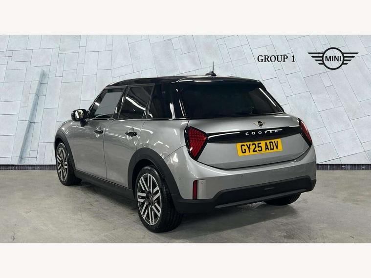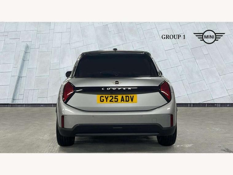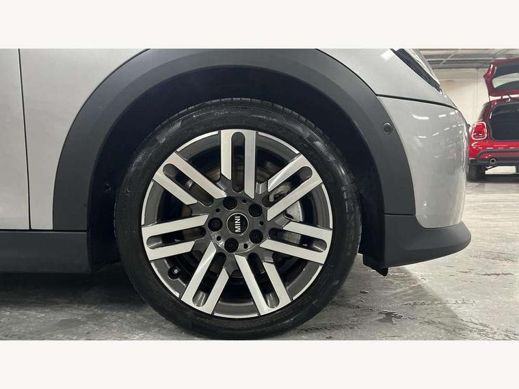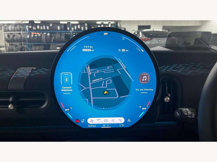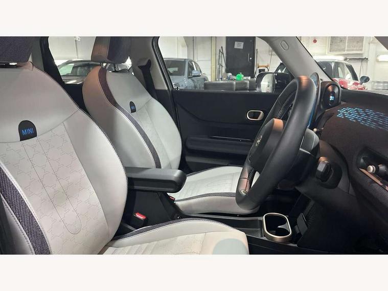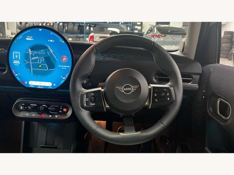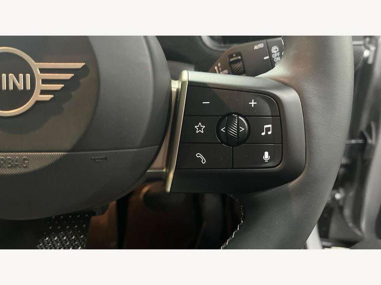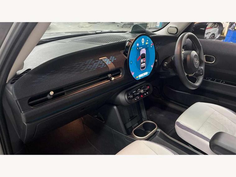 Central toggle bar, Circular OLED Screen, Compatible mobile phone bluetooth with audio streaming, Cruise control, Digital instrument cluster, Electro-mechanical speed dependant steering assistance, Emergency call service, MINI Experience Modes, Mini navigation system, On board computer, Service interval indicator, Tailgate, 7 speed steptronic transmission with double clutch, DAB Digital radio, Personal eSim, Auto headlights, Electric adjustable heated door mirrors, Electric front+rear windows, Heated rear window, Heated windscreen washer jets, LED 3rd brake light, LED daytime running lights, LED Headlights, LED indicator lights, LED rear lights, Rain sensor window wipers, Rear fog lights, Rear side wing doors, Rear window wiper, 2 zone automatic air conditioning, 3 seat bench in 2nd row, 60/40 rear seat bench, Ambient lighting, Cupholders, Front and rear floor mats, Front and rear head restraints, Front compact armrest, Heated steering wheel, Height adjustable passenger seat, Light headliner, Luggage compartment lighting, Single front passenger seat, Sport Vescin Steering Wheel black with vibrant silver accents, Sunvisors with vanity mirrors, Vescin/Cloth upholstery includes dash knit in black with blue accents, Driving assistant pack - Cooper Hatchback, Park assistant pack - Cooper Hatchback, 3 point seatbelts on all five seats, 6 Airbags - front, side, head and seat belt tensioners, Anti-lock braking system (ABS), Child locks on rear doors, DSC - Dynamic Stability Control, Electronic parking brake, Front and rear disc brakes, Front ISOFIX (iSize), Front passenger airbag deactivation, Traction control, Tyre pressure monitoring system, Alarm, Immobiliser, Remote central locking, Tyre repair kit,