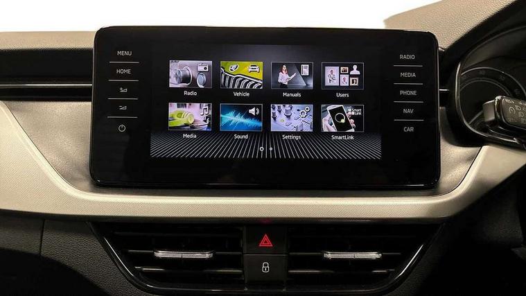 Amundsen satellite navigation with 9.2" glass colour touchscreen display, web radio, voice control and traffic sign recognition, Bluetooth system, E-call, Front assist system, Gesture control, PAS, Service indicator, Speed limiter, Wireless SmartLink for apple car play, android auto and mirrorlink, 8 Speakers, Auxiliary input socket, DAB Digital radio, Body colour bumpers, Body colour door mirrors and handles, Chrome grille surround, Dimming rear view mirror with black surround, Electrically adjustable and heated door mirrors, Front and rear electric windows, Headlight range control, Heated rear window, LED rear lights - low functionality, LED third brake light, Light sensors, Privacy glass, Rear fog lights, Rear side wing doors, Rear wiper, 12V Accessory socket in centre console, 3 seat bench in 2nd row, Chrome inner door handles, Cloth upholstery, Front head restraints, Glove compartment with illumination, Height adjustable driver and front passenger seats - manual, Ice scraper, Isofix child seat fittings on outer rear seats, ISOFIX on front passenger seat, Manual lumbar support for front seats, Rake/reach adjustable steering wheel, Reading lights, Single front passenger seat, Sun visors with illumination on front passenger, Textile floor mats, Third rear headrest, Top tether for front passenger seat, Umbrella in driver's door, 3x3 point rear seatbelts, Airbags - driver and front passenger, ESP, Front passenger airbag deactivation switch, Front side airbags with curtain airbags, Hill hold control, Manual parking brake, Manual rear child locks, One tone horn, Rear disc brakes, Seatbelt reminder for driver an co-driver, Traction control, Tyre pressure monitor, Anti-theft alarm system with interior monitoring, backup horn, towing protection and remote central locking with SAFE system, Anti-theft wheel bolts, Electronic engine immobilizer, Silver haptic decorative insert on the dashboard with hot stamping in glossy black,
