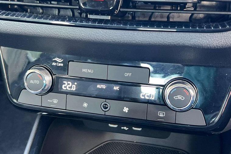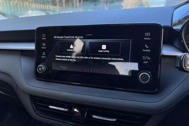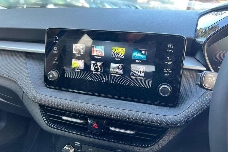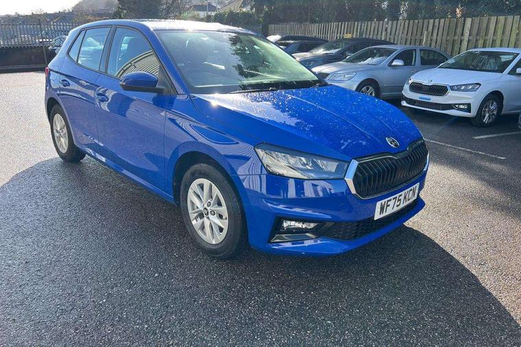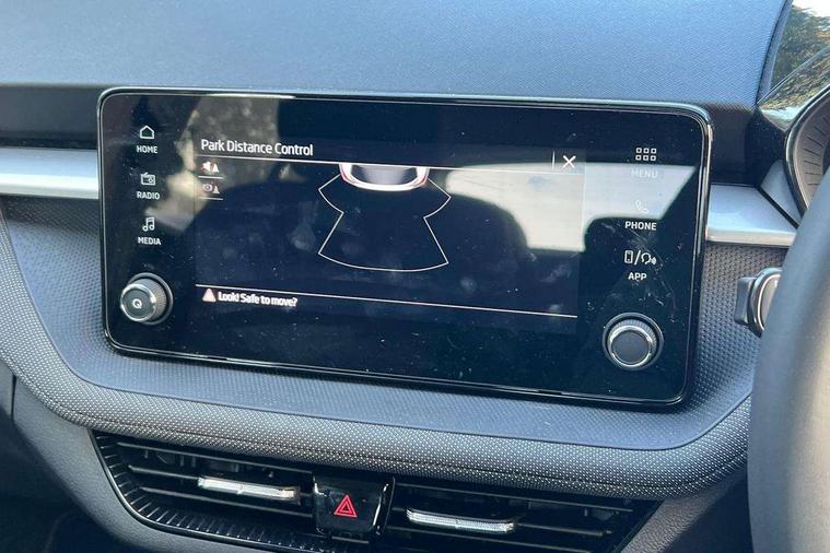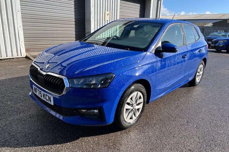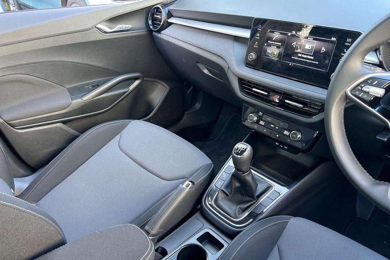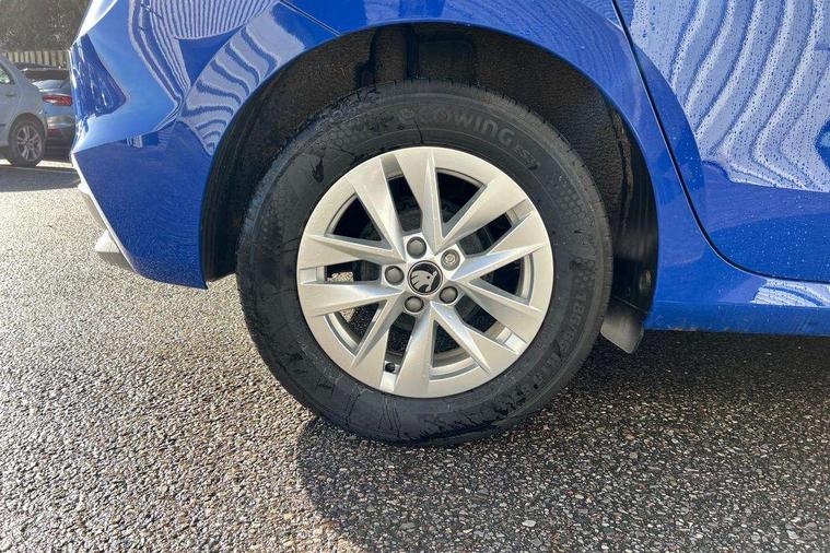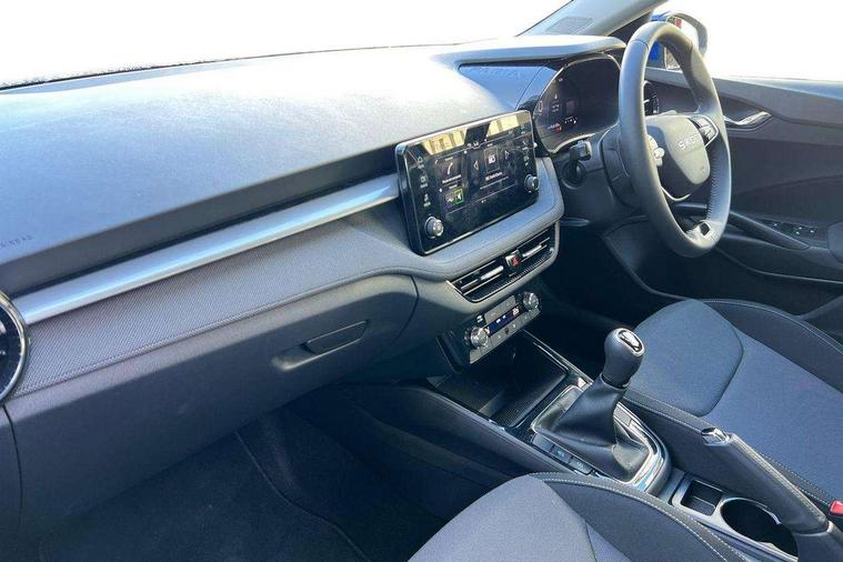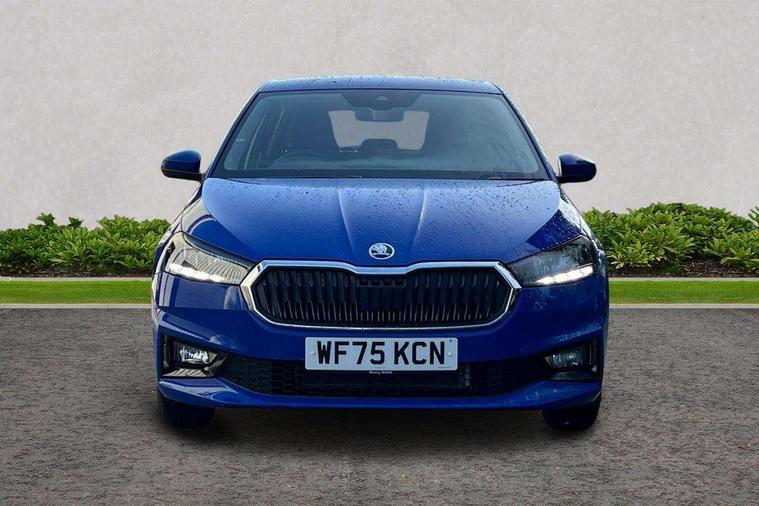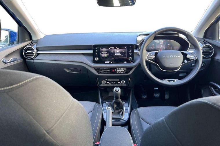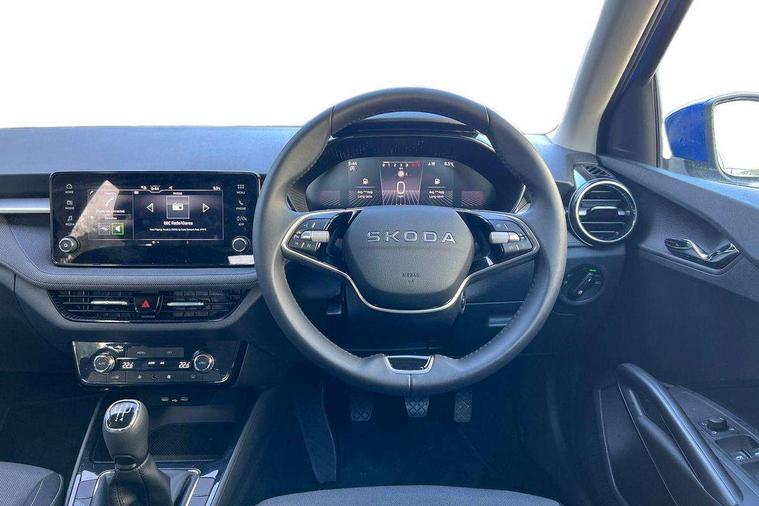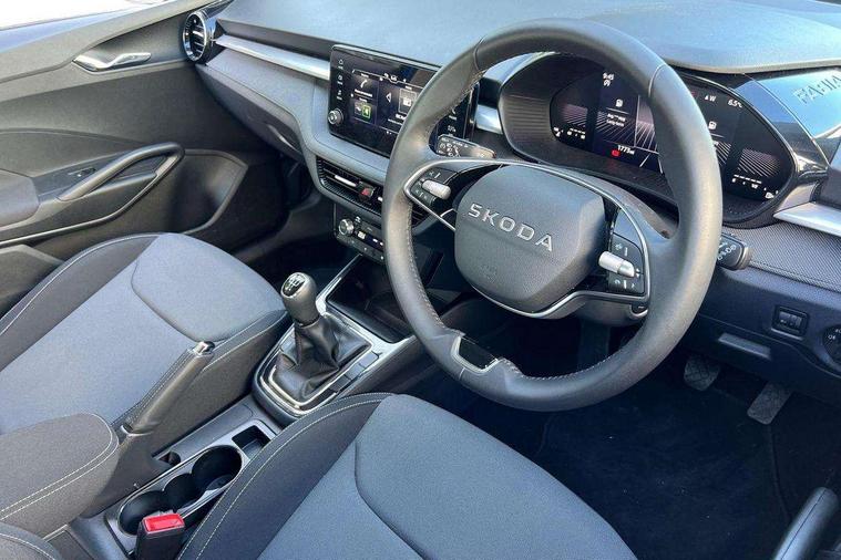 8" Digital instrument display, Advanced driver attention and drowsiness monitor, Bluetooth connection, Cruise control with speed limiter, Driver alert system, Electromechanical power steering, Exterior temperature gauge, Lane assist including road edge detection, Rear parking sensors, Service interval indicator, Traffic sign recognition, Wireless SmartLink for Apple CarPlay and Android Auto, 6 Speakers (4 in front and 2 in rear), 8.25" Skoda infotainment touchscreen display, Auxiliary socket for external MP3 player, DAB digital radio reception, Auto dimming rear view mirror, Body colour door mirrors, Body coloured bumpers, Door mirror integrated indicators, Front and rear electric windows, Front window wiper intermittent control, Headlight range control - Automatic, Ice scraper in fuel cap, LED 3rd brake light, LED daytime running lights with coming and leaving home feature, LED rear lights, Rear LED fog light, Rear side wing doors, Rear window wiper with washing nozzles, Roof mounted spoiler, SKODA tailgate lettering in chrome, Unique dark chrome design logo on alloy wheels, 2 reading lights in front and 2 reading lights in rear, 3 rear headrests, Backrest split and folding, Central console with removable cup holder and storage box, Chrome handbrake release button, Dual zone air conditioning with climatronic electronic control, Fabric upholstery, Front centre armrest, Gearshift knob/handle in leather, Grain satin black interior door handles, Hand brake lever handle in leather, Height adjustable front headrests, Height adjustable front seats, Height adjustable steering wheel, ISOFIX and TopTether anchorage points to the outer rear seats, ISOFIX and TopTether on the front passenger seat, Luggage compartment lighting, Manually adjustable lumbar support in front seats, Pollen filter, Rear seat bench unsplit, Single front passenger seat, Skoda lettering on steering wheel, Storm grey headlining, Sun visors with mirror and airbag label on passenger side, Textile floor mats, Ticket holder, Umbrella in drivers door, Ambient lighting pack - Fabia Hatchback, 3-point height adjustable front seats belts with pretensioner and force limiter, Automatic warning lights in case of crash, Driver and passengers airbag with switch off function, e-Call+, ESC including ABS, MSR, ASR, EDS, HBA and XDS, Front and rear seat belt warning, FRONT ASSIST (AEB City and AEB Inter Urban), Front side airbags, Head airbags, One tone horn, Pedestrian protection, Three rear 3-points safety seat belts with pretensioner and force limiter including stop function for outer rear seat belts, Tyre pressure monitoring system, Anti-theft alarm system including immobiliser, interior monitoring, backup horn, and towing protection, Central locking with radio remote control, interior controls, SAFE function and 2 foldable keys, KESSY - Keyless engine start/stop, Black painted air vents, Grain satin black central console cover, Metallic grey upper decorative trim, Satin black door and side trim panel in front, Textile Kota grey lower decorative inserts, Anti-theft wheel bolts protection, Super-low rolling resistance tyres,