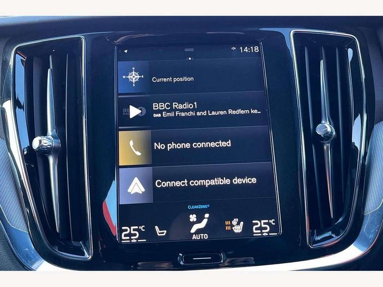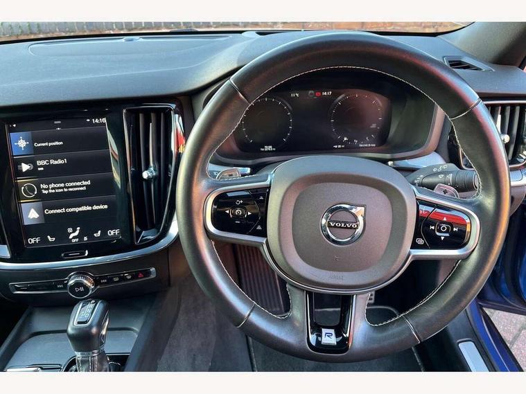 12.3" Active TFT crystal driver's instrument display, 9" centre console touch screen, Adjustable steering wheel force, Bluetooth hands free telephone kit, Drive mode settings, Driver alert control with lane keeping aid, Information centre, Oncoming Lane Mitigation, Sensus navigation with European mapping and traffic information, Service interval indicator, Speed limiter, Speed sensitive steering, Trip computer, Voice activated control for key functions, Volvo on call, 8 speed automatic transmission with start/stop + manual change functions, DAB Digital radio, Active bending headlights with adaptive shadow technology, Adaptive brake lights with high level LED brake lights, Automatic headlight levelling system, Automatic LED Headlights + Active high beam incorporating daytime running lights, Body colour bumpers, Colour coordinated auto folding and heated power door mirrors, Dark tinted windows for rear side windows and cargo area, Dual integrated exhaust pipes with high gloss black surround, High gloss black door mirrors and window surround, High gloss black mesh front grille with silk metal surround, Home safe and approach lighting, Integrated roof rails in high gloss black, LED front fog lights with static cornering light function, Power front and rear windows, R Design tread plates, Rain sensor with automatic windscreen wiper activation, Rear wiper, Roof antenna, Roof spoiler, Visible VIN plate, 12V socket in front + rear tunnel console, A-pillar parking ticket holder, B Pillar ventilation, Black headlining, Bright metal luggage compartment threshold, Cargo load hooks, Centre console cupholders and storage, Contour sports seats with nappa leather/textile upholstery, Extended front seat cushions, Front footwell illumination, Front head restraints, Front reading lights + Theatre lighting and centre armrest storage illumination, Front/rear door pockets and front cupholder illumination, Glovebox compartment with illumination, Heated steering wheel, Height/reach adjustable steering column, High gloss black steering wheel remote infotainment controls, Illuminated vanity mirrors + ticket holder, Isofix attachments on outer rear seats, Leather sports steering wheel with gearshift paddles, Load cover, Lockable load floor, Luggage compartment illumination, Multi directional lumbar support, Multicolour theatre lighting and puddle lights, Nappa Leather Key Integrated Remote, Power driver seat with memory + exterior mirrors memory, Rear armrest with storage + cupholders, Rear footwell and side step illumination, Sport leather gear knob, Sports floor mats, Sports pedals, Tailgate illumination and ambient door lighting, Underfloor cargo storage, WHIPS - Whiplash Protection System, 5 x 3 point seatbelts, City safety with steering support with Pedestrian + cyclist + large animal detection + front collision warning with full auto brake, Dual stage driver/passenger airbags, First aid kit, Hill start assist, IC (Inflatable Curtains) - Full Length, Passenger airbag cut-off switch, Power parking brake with auto hold function, Road sign information display, Run off Road Mitigation, Run off Road Protection, Seatbelt reminder and pretensioners for all seats, SIPS (Side Impact Protection System), SIPS airbags, Stability and Traction Control with Spin control, Engine Drag Control and Corner Traction Control, Tyre pressure monitoring system, Vehicle deceleration control with Anti-lock Brake System, Electronic Brake Distribution and Emergency Brake Assist, Warning triangle, Anti-theft alarm including immobiliser/volume sensor + level sensor, Key integrated remote control central locking + fuel flap with deadlocking system and auto open/close power windows, Keyless drive (incudes keyless entry and start) with remote tag and handsfree tailgate open/close, Locking wheel nuts, Private locking for tailgate, Metal mesh inlays,