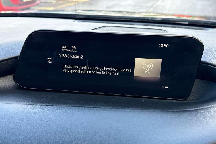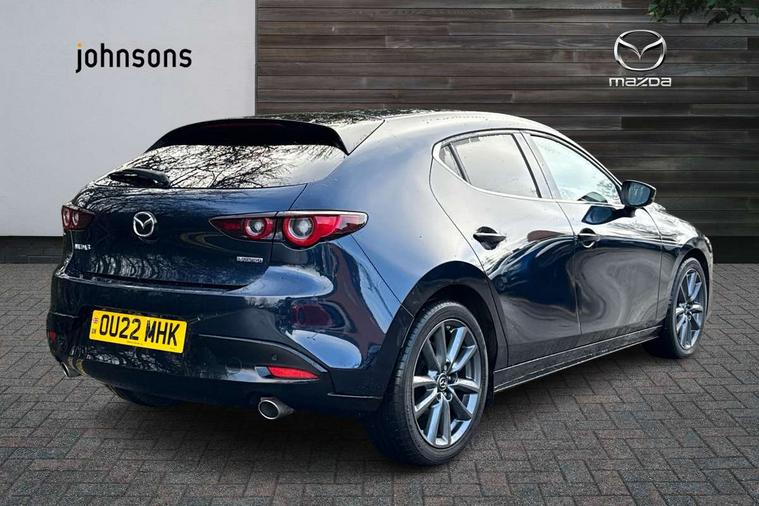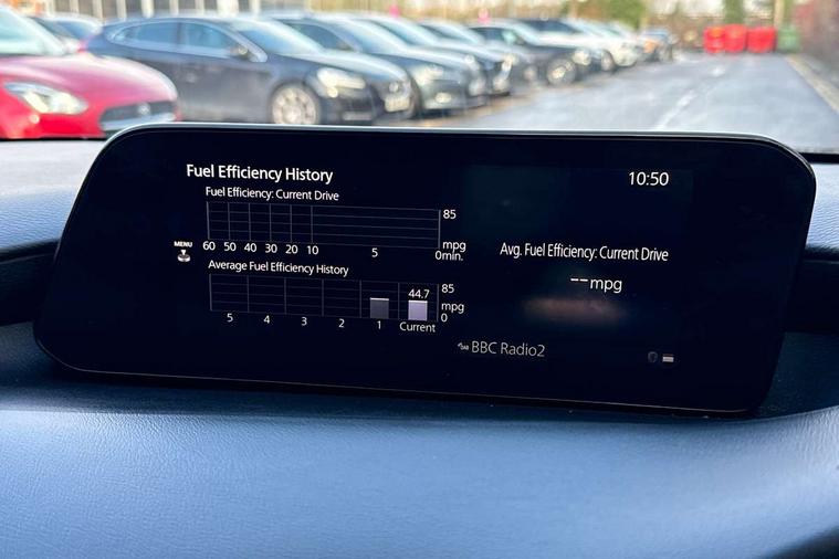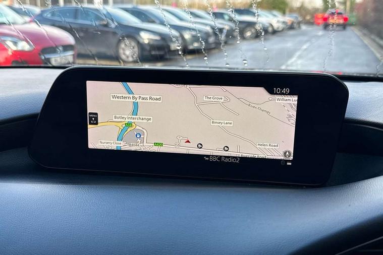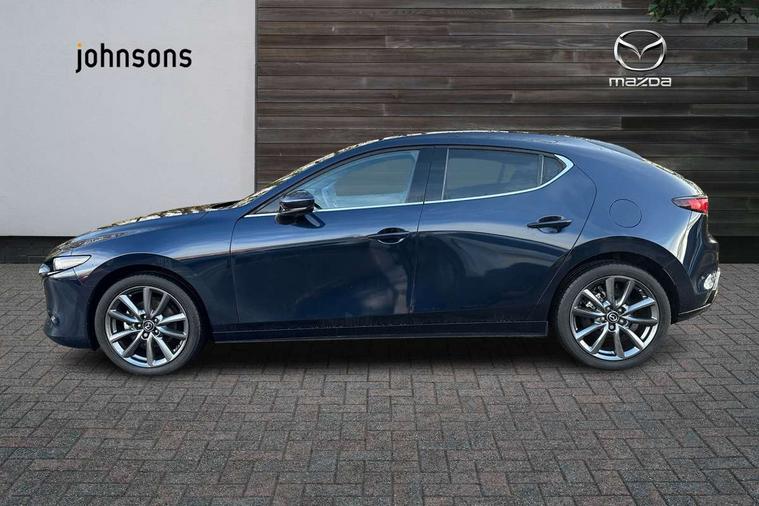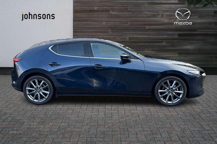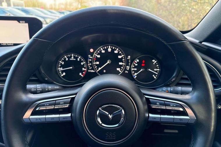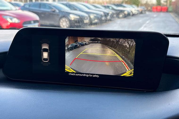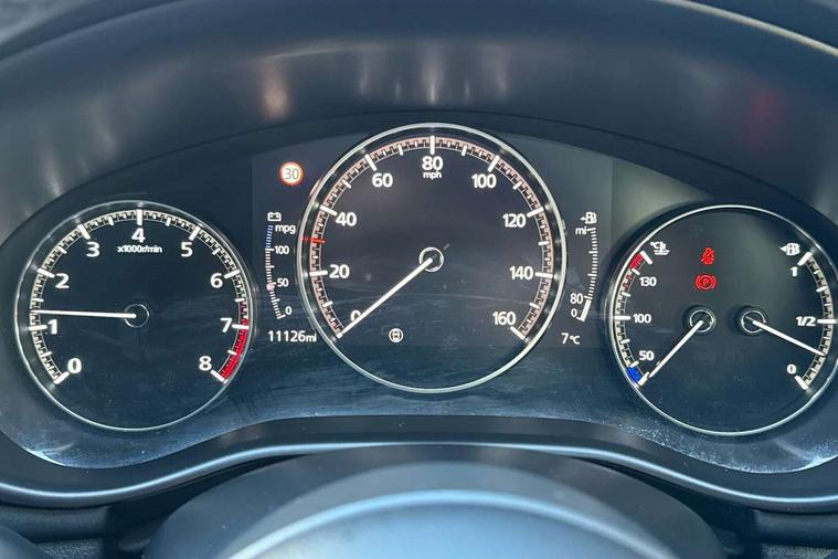 7" colour TFT display, 8.8" Colour centre touch screen display with Mazda Connect infotainment, Apple car play/Android Auto, Audio transfer from bluetooth devices, Blind spot monitoring with rear cross traffic alert, Colour active driving display inc Windscreen projected, Traffic Sign Recognition, turn-by- turn navigation and Mazda Radar Cruise Control information, Digital instrument cluster, Driver attention alert system, E-call with GPS, Emergency stop signalling system, Engine start/stop button, Front and rear parking sensor with audible and visual warning, Head up Display, Integrated bluetooth with steering wheel mounted controls, Intelligent speed assist, Lane keep assist system (LAS) with Lane departure warning system (LDWS), Mazda connected services, Mazda Navigation System with european mapping, Mazda Radar Cruise Control, Mobile App interface, Multimedia Commander, PAS, Reversing camera, Service indicator, Traffic sign recognition (TSR), Trip computer, Cylinder Deactivation, i-stop, Mazda Multimedia System with AM / FM / DAB radio with 8 speakers, Adaptive LED Headlights, Auto dimming driver's door mirrors, B-pillar garnish in piano black, Body coloured, electrically adjustable, heated auto power folding door mirrors with integrated indicators, Coming/leaving home lighting function, Dark metallic finish signature wing, Dual chrome tailpipes tip, Dusk sensing headlights, Electric front/rear windows with one touch/auto up/down, Frameless auto dimming interior rear view mirror, Front body coloured bumper with black lower bezel, Front kodo turn signal, Gloss black finish front grille, Gloss black rear roof spoiler, LED indicator lights, LED third brake light, Privacy glass with dark tinting on rear side windows and rear window, Rain sensing front wipers with adjustable sensitivity and speed, Rear colour coded bumper with gloss black lower moulding, Rear fog lights, Rear side wing doors, Signature LED daytime running lights, Signature LED rear combination lights, Speed adjustable rear wash wiper with intermittent wipe, 12v electrical power outlet, 3 seat bench in 2nd row, 60/40 split fold down rear seats, Black cloth door panel inserts, Cloth upholstery, Dark roof headlining, ceiling and pillars, Driver, front passenger and two rear door pockets, Driver, Front passenger and two rear grab handles with coathooks, Driver/passenger sunvisors + vanity mirrors (drivers side with ticket holder), Drivers seat manual slide recline and height adjustment, Dual zone climate control air conditioning, Folding rear centre armrest with two cup holders, Front and rear courtesy lamps, Front armrest, Front centre storage with two cupholders, Front head restraints, Front passenger seatback pocket, Front passengers seat manual slide, recline and height adjustment, Gear shift indicator, Heated front seats with 3 stage setting, Illuminated glovebox, Interior colouration dashboard and doorcards in black with dark stitching, ISOFIX child seat anchorage points attached on outer rear seats, Leather wrapped gear shift knob, Leather wrapped steering wheel, LED interior light, Luggage compartment light, Power outlet in luggage compartment, Roof mounted sunglasses holder, Single front passenger seat, Three height adjustable rear head restraints, Tilt/height adjustable steering wheel, USB input, 3 point ELR front seatbelts with pretensioners, 3 rear 3 point seatbelts with ELR, Anti-lock braking system (ABS), Drivers knee airbag, DSC - Dynamic Stability Control, Dual stage driver and single stage passenger airbags, EBD - Electronic brakeforce distribution, Electronic parking brake with auto disengage function and auto hold function, Front and rear curtain airbags, Front passenger airbag cut-off switch, Front side airbags, Front smart city brake support, G-Vectoring control plus, Hill launch assist, Intelligent Traction Control system, Manual child lock in rear doors, Mild Hybrid system with regenerative braking, Seatbelt reminder for driver/front passenger and rear seats, Tyre pressure monitoring system (TPMS), Auto door lock when driving, Remote central locking + deadlocks, Smart keyless entry, Thatcham accredited alarm and immobiliser, 18" Grey alloy wheels, Emergency tyre repair kit,