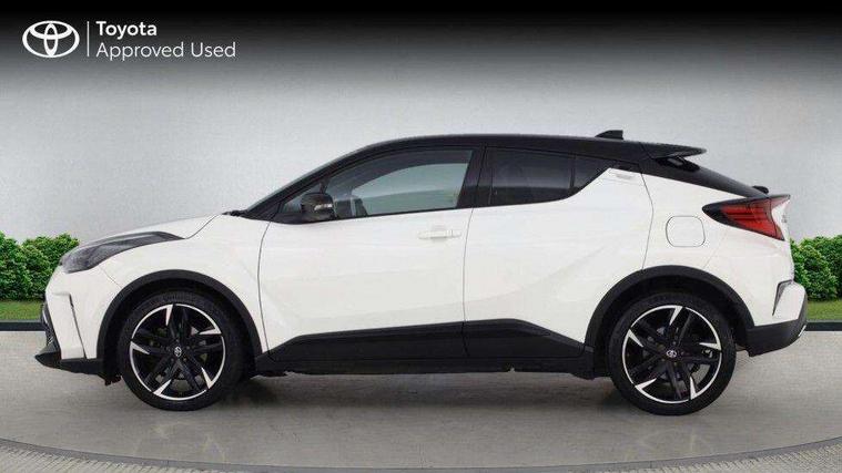 4.2" coloured TFT screen for multi-information display, Adaptive cruise control, Bluetooth connectivity, E-call, Electric power steering, Hybrid system indicator, Lane departure alert with steering control, Lane trace assist, Push button tailgate release, Remote boot door release in cabin, Remote boot door release in key, Reversing camera, Road sign assist - RSA, Simple Intelligent parking assist, Smart voice assist, Touch 2 Go navigation system, Trip computer, Voice recognition, Wireless smartphone integration, Vehicle Stability Control (VSC), 6 speakers, AM/FM radio, DAB Radio (Digital Audio Broadcasting), Toyota touch 2 multimedia system with 8" display, USB connector, Wi-fi connectivity, Adaptive front light system, Adaptive LED Headlights, Anti-jam protection on power windows, Auto high beam, Auto up and down function on all power windows, Automatic headlight levelling, Automatic headlights, Automatic headlights cut-off, Black and body coloured rear bumper, Black upper front grille, Body colour door handles, Body colour door mirrors, Body coloured front bumper, Boot door release with push button, Chrome front lower bumper, Electric heated door mirrors, Follow me home headlights, Front and rear power windows, Front spoiler lip in black, Headlight cut off reminder, Honeycomb lower front grille, LED daytime running lights, LED fog lights, LED front light guide, LED High mounted stop light, LED rear brake lights, LED rear combination lights, Noise reduction layer on front windows and windscreen, Power adjustable door mirrors, Privacy glass, Rain sensor, Rear sequential indicators, Rear side wing doors, Rear spoiler, Rear tailgate, Rear window defogger, Rear window wiper, Shark fin antenna, UV-filter on driver and passenger windows, UV-filter on rear windows, 12v power outlet - front, 3 rear headrests, 3 seat bench in 2nd row, 3 spoke perforated leather steering wheel, 60/40 split folding rear seat, Adjustable rear headrests, Adjustable speed limiter switch on steering wheel, Assist grips front and centre pillar, Audio and telephone switches on steering wheel, Black front door assist grips, Blue ambient lighting on front cup holders, Blue ambient lighting on front doors, Boot light, Chrome interior door handles, Cloth upholstery, Driver and front passenger personal light, Driver and front passenger Whiplash Injury Lessening seats, Driver and passenger seatback pockets, Dual zone automatic air conditioning, Floor mats, Front cupholders, Front head restraints, Front sports seats, Glovebox with internal light, Hard tonneau cover, Heated driver and front passenger seats, Hooks for luggage holding net, Humidifying Nanoe air purifier, Illuminated entry system, Isofix attachments on outer rear seats, Leather gearshift, Light on driver sun visor, Light on passenger sun visor, Manual telescopic steering wheel, Manual tilt steering wheel, Manually height adjustable driver seat, Manually height adjustable front passenger seat, Manually reclining driver seat, Manually reclining front passenger seat, Manually sliding driver seat, Manually sliding front passenger seat, Microphone on front personal light, Mirror on driver sun visor, Mirror on passenger sun visor, Multimedia switches on steering wheel, Pollen filter, Power adjustable lumbar support on driver seat, Shopping bag hooks, Single front passenger seat, Slow opening on lower glovebox, Voice recognition switch on steering wheel, Tech with parking sensor pack - C-HR, 16 Disk front wheel brake, 3x3 point rear seatbelts, ABS+EBD+Brake assist, Electronic parking brake, Front and rear seatbelt reminder, Front passenger airbag on/off switch, Hill start assist control (HAC), Pre collision system with pedestrian detection, Pre-tensioners and force limiters, Rear door child safety locks, SRS Airbags - Driver + Front passenger, front side, front and rear curtain and driver's knee airbags, Toyota safety sense, Tyre pressure monitoring system, Tyre pressure warning system, Acoustic vehicle alert system (AVAS), Glass-breaking alarm sensors, Immobiliser, Intrusion alarm, Intrusion sensor, Motion sensor alarm, Power door locks, Power passenger window lock, Remote central locking, Black lower dashboard, Black upper dashboard, Piano black console, Silver deco line on upper dashboard, 19" Black machined alloy wheels, Tyre repair kit,