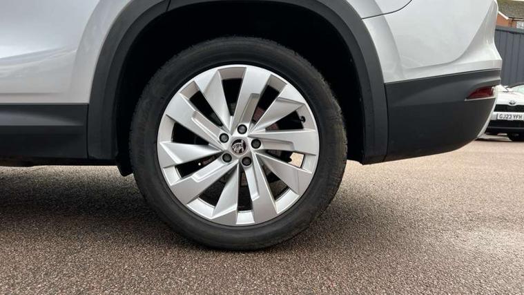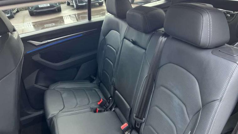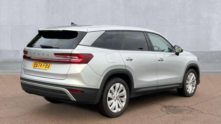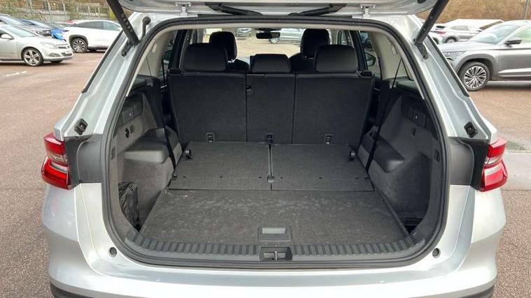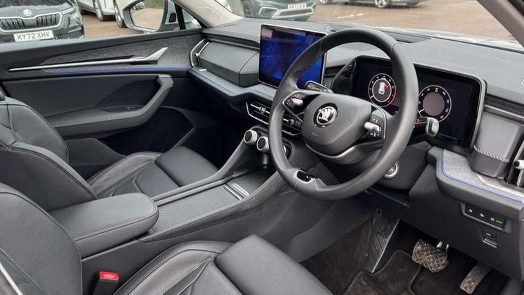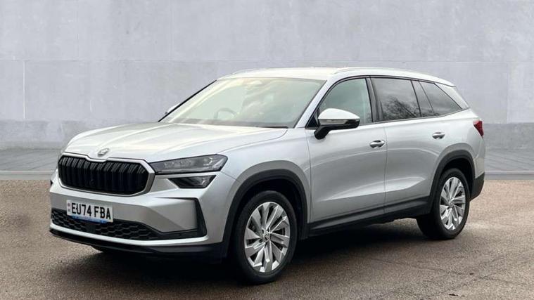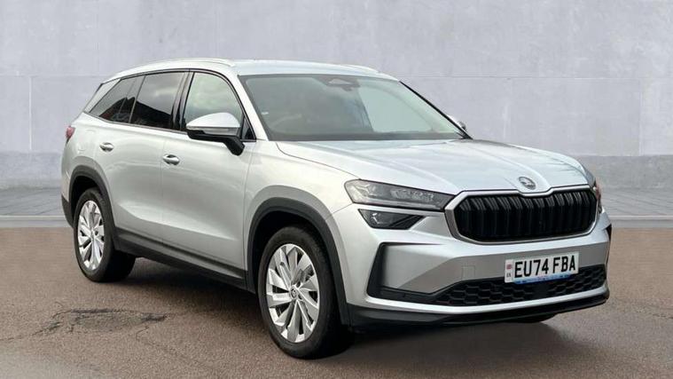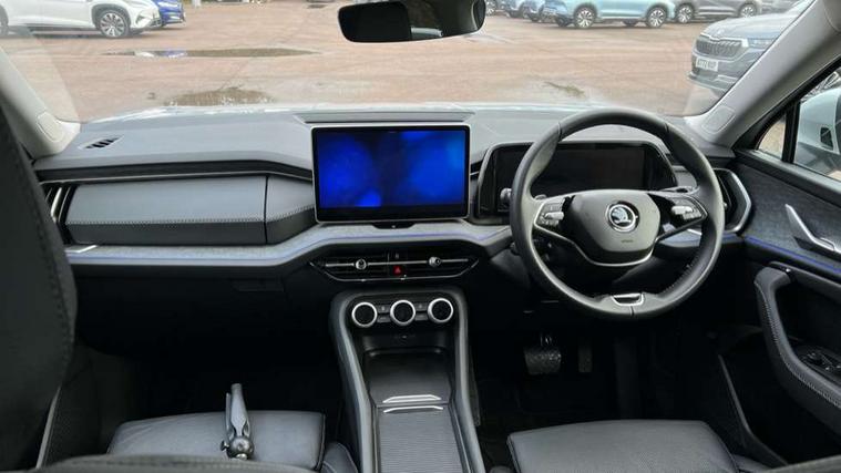 13" satellite navigation touchscreen display, Blind spot detection with door exit warning, Bluetooth system, ChatGPT functionality, Drive mode selector, Driver alert with fatigue sensor, Driver drowsiness alert system, Dry display cleaner, e call+, Front cross traffic assist, Lane assist, PAS, Rear traffic assist, Tailgate unlocking from outside, Traffic sign recognition, USB C Port x 2 in front centre console, Virtual Cockpit - 10.25" digital display, Voice control system, Wireless charging for two smartphones (15W) with cooling function, Wireless SmartLink for Apple CarPlay and Android Auto, Stop/start function, 2x USB-C in the rear, DAB Digital radio, Aero front windscreen wipers with intermittent function, Auto dimming rear view mirror, AWL (all weather lighting) and all weather light with cornering function, Black wheel arch surrounds, Body colour bumpers, Body colour door mirrors and handles, Cornering light and poor weather light, Electric folding /adjustable/separted heated/folding door mirrors, auto dimming with boarding sports and memory function, Electric front and rear windows, Exterior black decorative trims, Heat insulating glass in windshield, Heated rear window, Ice scraper in fuel tank cap, Invisible tailpipe, LED daytime running lights, LED third brake light in rear spoiler, Light assistant with automatic headlight control and coming home feature, Logo projection in door mirrors, Privacy glass, Rear side wing doors, Rear spoiler, Rear window wiper, Red decorative strip between rear LED lights, Safety reflectors on front and rear doors, Unique dark chrome design logo on alloy wheels, Window control switches with black trim, Windscreen wipers with rain sensor, Without engine designation, 1.5l bottle holder points in all door, 12V socket in boot, 1x centre rear reading light, 2 seat bench in 3rd row, 3 configurable smart dials with 32mm coloured display, 3 seat bench in 2nd row, 4 foldable roof handles with rear coat hooks, Ambient interior lighting - Dashboard, front-door stowage compartments, front and rear door panels and footwell lighting, Automatic gear selector on steering wheel, Chrome interior door handles, Driver/front passenger reading lights, Fabric headlining, Fixed bench 40:60:40 split folding backrests, Front and rear floor mats, Front centre armrest with jumbo box storage compartment, cup holder and 12V socket, Front courtesy lights, Height adjustable front headrests, Isofix child seat fittings in outer middle row rear seats and front passenger with top tether, Manually adjustable steering column, Pollen filter, Rear centre armrest with cupholders, Rear seat boot backrest release, Retractable luggage compartment cover, Single front passenger seat, Skoda lettering on steering wheel, Sliding trunk cover, Small Bags on the inner sides of the front backrests, Storage pocket including mobile phone pockets on the backs of the front seats, Sunvisors with illuminated vanity mirrors, Three rear height adjustable headrests, Ticket holder on A Pillar, Tri zone climate control, Umbrella in door panel x1 made from sustainable materials, Upper and lower glovebox with card holder and coin compartment, USB C port by rear view mirror for charging only (15W), Exterior styling pack - Kodiaq, Auto door release and activation of warning lights in the event of an accident, Driver and front passenger airbag with knee airbag and front passenger airbag deactivation, Electric child locks, Electronic parking brake, ESC (incl. ABS+EMD+MSR+ASR+EDL+HBA+DSR+RBS+ESBS+MCB+TSA+XDS), Front assist with braking reaction to vehicles, pedestrians and cyclists, Front disc brakes, Fuel cut off safety device, Height adjustable front 3 point seatbelts + pretensioners, Hill hold control, Junction assist with automatic emergency braking, Rear disc brakes, Safety vest holder in door, Seat belt reminder for all seats, Three point rear seat belts, Two tone horn, Tyre pressure monitor, Anti-theft wheel bolts, Immobiliser, Remote central locking with 2 keys, Breakdown kit,