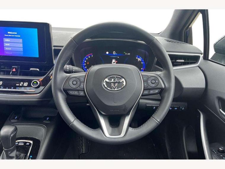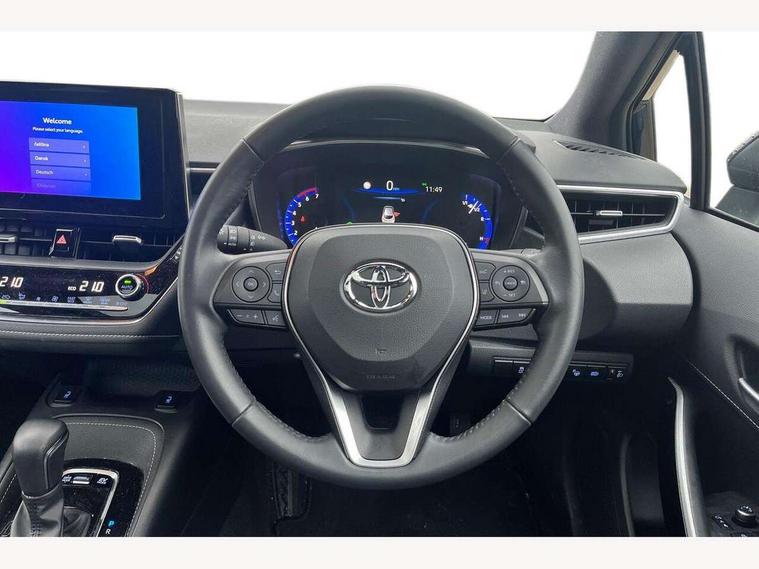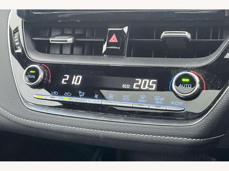 7" Multi information display screen, Bluetooth telephone connectivity, Connected car functionality upgrade, tracker, remote status and e-care, Door trim and centre console material, Dynamic radar cruise control (with RSA) including switch on steering wheel, E-call, Electrically assisted power steering, EV drive indicator, Intelligent park assist, Lane Departure Alert (LDA) switch on steering wheel, Memory on adjustable speed limiter, Push button start, Reversing camera, Smartphone integration with Apple CarPlay and Android auto, Gasoline particulate filter, Vehicle Stability Control (VSC), 6 speakers, 8" Touchscreen with MM19 Multimedia system and voice recognition, AM/FM radio, DAB Digital radio, Toyota touch 2 with go navigation system, USB and Aux in connectors + 12V front outlet, Anti-jam protection on power windows, Auto dimming inside rear view mirror, Auto up and down function on all power windows, Automatic folding mirrors, Automatic headlights with high beam assist, Black metallic surround on lower front grille, Black toyota logo in front, Black window frames, Body colour rear spoiler, Body coloured bumpers, Body coloured door mirrors, Body coloured outside door handles, Follow me home headlights, LED daytime running lights, LED front fog lights, LED Headlights, LED High mounted stop light, LED rear combi lights with LED lightguide, Power adjustable heated door mirrors, Power front windows, Power rear windows, Privacy glass, Rain sensing wipers, Rear side wing doors, Rear window defogger, Rear window wiper, Reverse tilting door mirrors, Shark fin antenna, Time adjustment on intermittent wiper, Turning signal integrated indicators in door mirrors, Unique lower skirt, Unique side rocker with black insert, UV-filter on driver and passenger windows, 3 rear headrests, 3 seat bench in 2nd row, 3 spoke leather steering wheel + gear knob, 60/40 split folding rear seat, Adjustable speed limiter switch on steering wheel, Audio, multimedia and telephone switches on steering wheel, Blue ambient interior illumination to centre tray, front cup holders and front door trim, Boot light, Centre room light, Clean air filter, Driver and front passenger personal light, Driver and passenger assist grip, Driver and passenger sun visor with mirror and light, Dual zone automatic air conditioning with ECO mode switch, Fabric/synthetic leather upholstery, Front and rear cup and bottle holders, Front door pockets, Front head restraints, Front passenger seat, Heated driver and front passenger seats, Illuminated entry system in room lamp, ISOFIX seat fixing (2 fixings on rear outer seats), Leather gear shift with satin chrome on gear shift console, Leather style armrests, Manual height adjustable for driver and front passenger seat, Parcel shelf, Passenger seat back pocket, Pollen filter, Power adjustable lumbar support on driver seat, Power window switches with satin chrome inserts, Rear armrest with 2 cupholders, Rear passenger coat hooks (2), Satin chrome inside door handles, Shopping bag hooks in luggage compartment, Sliding armrest on centre console box, Slow opening glovebox with lights, Tilt/telescopic steering column, Voice recognition switch on steering wheel, Whiplash Injury Lessening (WIL) feature (active headrest) for seats, Parking pack - Corolla, Toyota safety sense 2 pack - Corolla, 3x3 point rear seatbelts, Adjustable driver and front passenger seat belt extender to top anchor point, Anti lock braking system + Electronic brake force distribution, Brake assist function, Child locks on rear doors, Downhill Assist Control (DAC), Electronic parking brake, Emergency brake light signal (EBS), Front passenger airbag on/off switch, Front seatbelt reminder, HAC - Hill start assist control, Rear seat belt reminder, Seatbelt pretensioners and force limiters, Supplemental restraint system (SRS) 7 airbags - dual driver, dual side curtain, side impact and driver knee airbags, Traction control, Tyre pressure warning system, Acoustic vehicle alert system (AVAS), Alarm with motion sensor and immobilizer, Remote central locking + deadlocks, Smart entry, Satin chrome dash trim, Soft touch texture on upper dashboard, Unique wheel finish with red wheel cap,
