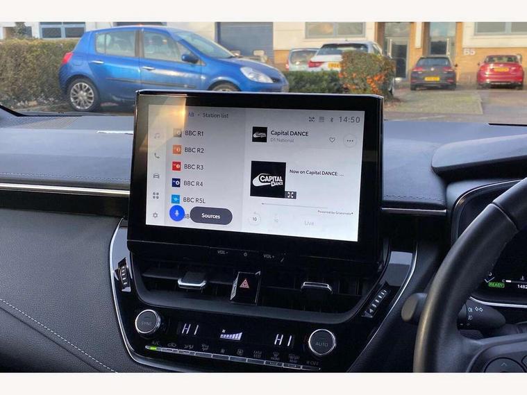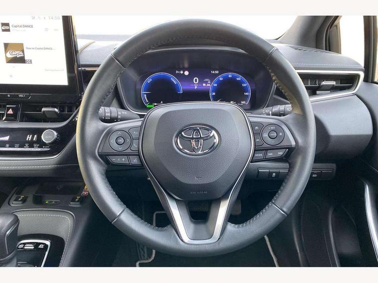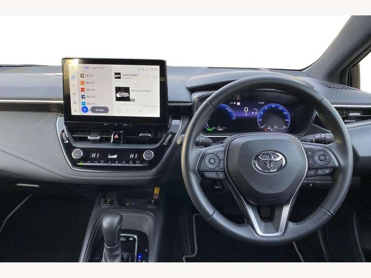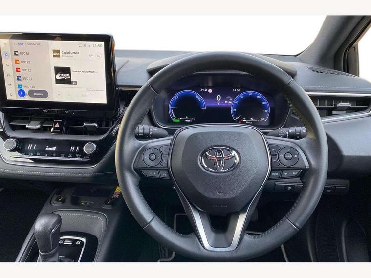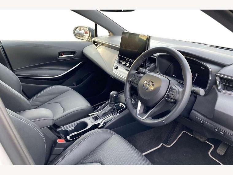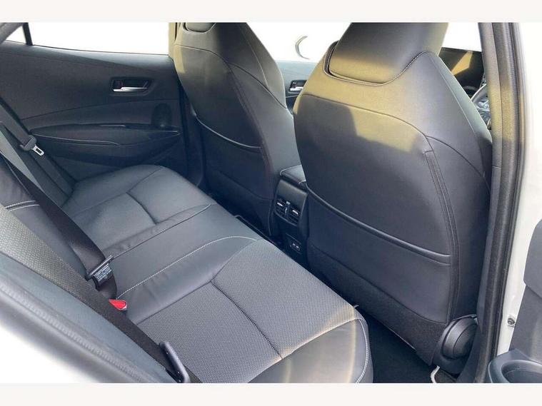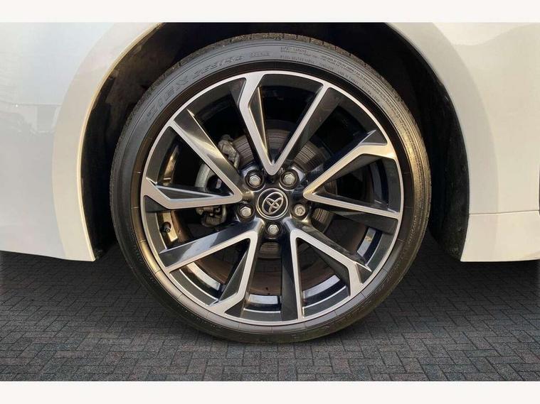 10.5" Multimedia display screen, Attention assist, Blind spot monitor and safe exit assist, Bluetooth telephone connectivity, Connected car functionality upgrade, tracker, remote status and e-care, Drive mode select (Eco, Normal), E-call, Electrically assisted power steering, EV drive indicator, Front and rear parking sensors with auto brake, Full Digital 12.3" TFT Digital Combimeter, Head up Display, Key reminder warning, Lane Departure Alert (LDA) switch on steering wheel, Memory on adjustable speed limiter, MyT connected services, Proactive driving assist (PDA), Rear cross traffic alert, Reversing camera, Smart entry and push button start, Smartphone integration with Apple CarPlay and wired android auto, Tailgate, Toyota remote services, Toyota smart connect navigation, Wireless charger, Gasoline particulate filter, Vehicle Stability Control (VSC), 6 speakers, AM/FM radio, DAB Digital radio, Front USB-C in centre console, Front USB-C in dashboard, Rear USB-C device charger, Smart voice assist/ Voice recognition, USB and Aux in connectors + 12V front outlet, Adaptive high beam system (AHS), Anti-jam protection on power windows, Auto headlight levelling system, Auto up and down function on all power windows, Automatic folding mirrors, Automatic headlights with high beam assist, Black centre and side air vents, Black metallic meshed front grille, Black toyota logo in front, Body coloured bumpers, Body coloured door mirrors, Body coloured front spoiler, Body coloured outside door handles, COROLLA alloy door scuff plates, Electrochromatic mirror, Follow me home headlights, LED daytime running lights, LED front fog lights, LED High mounted stop light, LED multi beam headlights, LED rear combi lights with LED lightguide, Noise reduction layer on windscreen, Piano black diffuser, Power adjustable heated door mirrors, Power front windows, Power rear windows, Privacy glass with UV filter, Rain sensing wipers, Rear bumper decoration with chrome plated inserts, Rear side wing doors, Rear under guard with chrome ornament, Rear window defogger, Rear window wiper, Reverse tilting door mirrors, Roof spoiler, Satin chrome insert on front air vents, Satin chrome insert on front door assist grips, Satin chrome inserts on rear passenger air vents, Shark fin antenna, Tailgate release with push button, Time adjustment on intermittent wiper, Turning signal integrated indicators in door mirrors, Unique grille pattern, Unique lower skirt, Unique side rocker with black insert, UV-filter on driver and passenger windows, 2 Shopping bag hooks in luggage compartment, 3 rear headrests, 3 seat bench in 2nd row, 3 spoke leather steering wheel with satin insert + gear knob, 4 tie down hooks in luggage compartment, 60/40 split folding rear seat, Adaptive cruise control (ACC) switch on steering wheel, Adjustable speed limiter switch on steering wheel, Audio, multimedia and telephone switches on steering wheel, Black armrest on centre console box, Black gear shift console, Boot light, Centre room light, Driver and front passenger personal light, Driver and passenger assist grip, Driver and passenger seatback pockets, Driver and passenger sun visor with mirror and light, Dual zone automatic air conditioning with ECO mode switch, Front and rear cup and bottle holders, Front door pockets, Front head restraints, Front passenger seat, Front sliding synthetic leather armrest, Heated seats, Illuminated entry system in room lamp, ISOFIX seat fixing (2 fixings on rear outer seats), Leather gear shift with satin chrome on gear shift console, Manual height adjustable for driver and front passenger seat, Manually tilt with sliding driver and front passenger seat, Parcel shelf, Perforated leather upholstery, Pollen filter, Power window switches with satin chrome inserts, Rear air conditioning, Rear armrest with 2 cupholders, Rear passenger coat hooks (2), Remote air conditioning, Satin chrome inside door handles, Satin chrome surround on heater control panel, Satin chrome surround on speedometer, Sliding armrest on centre console box, Slow opening glovebox with lights, Sports seats, Textile floor mats, Tilt/telescopic steering column, Voice recognition switch on steering wheel, Whiplash Injury Lessening (WIL) feature (active headrest) for seats, White ambient lighting on open tray and front cup holder, Toyota safety sense 3 pack - Corolla, 3x3 point rear seatbelts, Adjustable driver and front passenger seat belt extender to top anchor point, Anti lock braking system + Electronic brake force distribution, Brake assist function, Child locks on rear doors, Downhill Assist Control (DAC), Electronic parking brake, Emergency brake light signal (EBS), Front passenger airbag on/off switch, Front seatbelt reminder, HAC - Hill start assist control, Rear seat belt reminder, Seatbelt pretensioners and force limiters, Supplemental restraint system (SRS) 7 airbags - dual driver, dual side curtain, side impact and driver knee airbags, Traction control, Tyre pressure warning system, Acoustic vehicle alert system (AVAS), Alarm with motion sensor and immobilizer, Power passenger window lock, Remote central locking + deadlocks, Satin chrome dash trim, Soft touch texture on upper dashboard, Stitching on lower dashboard, Stitching on upper dashboard, 18" Dark grey machined face 5 double spoke alloy wheels, Tyre repair kit, Unique wheel finish with red wheel cap,