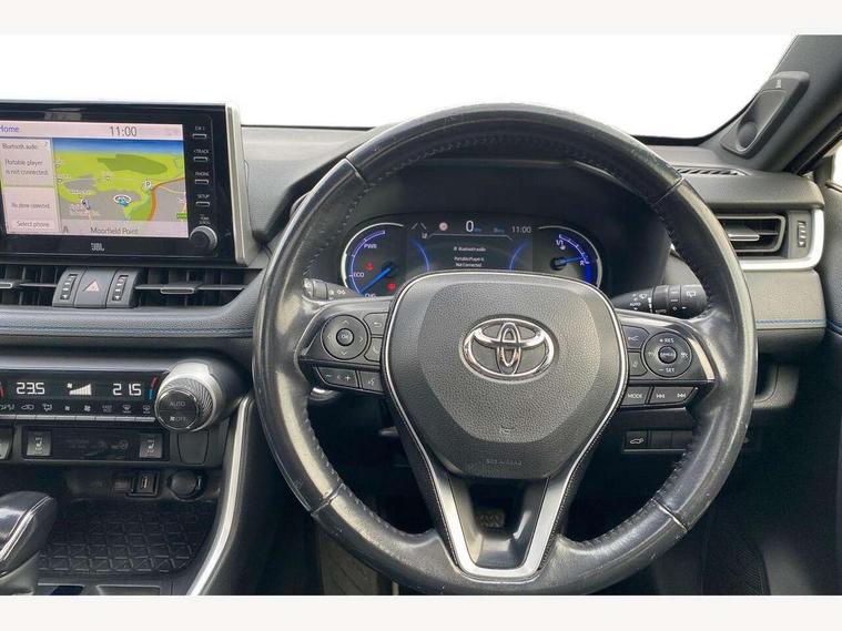 7" TFT multi information display, Analog tachometer, Apple car play and Android auto, Blind spot monitoring with rear cross traffic alert, Bluetooth system, Cyclist Detection, Drive mode selector, eCall emergency call system, ECO-driving indicator, Electric power steering, EV audible alert, Front parking sensors, Full range intelligent adaptive cruise control, Hybrid system indicator, Lane departure warning system, Lane trace assist, Lights on warning, Memory on adjustable speed limiter, My T Connected services, Night Time Pedestrian Detection, Power boot opening and closing, Push button start, Rear parking camera, Rear parking sensors, Remote boot door release in cabin, Remote boot door release in key, Road sign assist - RSA, Touch 2 Go navigation system including 3D maps and voice control, Traffic sign recognition, Trip computer, Voice control system, Vehicle Stability Control (VSC), 6 speakers, 8" Multimedia display touch screen, Auxiliary socket for external MP3 player, DAB audio, Toyota touch media system, USB connection, Adaptive automatic high beam, Automatic headlamp levelling, Automatic headlights, Automatic wipers, Automatically retractable door mirrors, Black rear spoiler, Black roof rails, Black Shark-fin antenna, Body colour door handles, Door mirror puddle lights, Dual exhaust pipes, Electric adjustable door mirrors, Electrochromatic rear view mirror, Emergency brake-light signal (EBS), Follow me home headlights, Front fog lights, Glass black protection moulding on side doors, Gloss black door mirrors, Gloss black front and rear bumper, Heated door mirrors, LED daytime running lights, LED High mounted stop lamp, LED rear combination lights, Meshed upper front grille, Power front windows, Power rear windows, Privacy glass, Projector LED headlights, Rear screen wiper - intermittent, Rear windscreen defogger, Silver front under-run, Silver rear under-run, Trailer sway control, Turning signal integrated indicators in door mirrors, 3 rear headrests, 60/40 split fold rear seat back, Black roof lining, Boot light, Clean air filter, Driver and front passenger personal light, Driver and front passenger Whiplash Injury Lessening seats, Driver and passenger sunvisors with illuminated vanity mirrors, Dual sided deck board in boot, Dual zone automatic air conditioning, Dynamic sports seats, Floor mats, Folding rear centre armrest, Front and rear bottle holders, Front centre armrest, Front footwell lights, Front headrests, Front seat and rear pockets, Front/rear roof mounted assist grips, Heated driver and front passenger seats, Illuminated entry system, Isofix child seat preparation, Leather gear shift with chrome surround, Light blue ambient lighting on front cupholders and open tray, Manual telescopic and tilt 3-spoke leather steering wheel with Chrome insert, Manually reclining and sliding front passenger seat, Multimedia switches on steering wheel, Pollen filter, Power height-adjustable sliding reclining and lumbar support for driver seat, Rear coat hooks, Rear door armrests, Rear passenger air vents, Rear view display in display audio screen with dynamic guide lines, Reclining rear seats, Satin chrome interior door handles, Sunglasses holder, Synthetic leather upholstery, Telephone and voice recognition switches on steering wheel, 3x3 point rear seatbelts, ABS/EBD, Acoustic vehicle alerting system, Adjustable front driver and passenger seat belt extender, Brake assist function, Brake hold function, Child proof door locks, Collision mitigation braking system, Driver/Front Passenger airbags, Driver/front passenger side airbags, Drivers knee airbag, Electronic parking brake, Electronic Stability Programme (ESP), Front and rear curtain airbags, Front and rear seatbelt reminder, Front passenger airbag detector, Hill start assist, Passenger airbag cut-off device, Pedestrian detection, Pre collision system, Seatbelt pretensioners with load limiters, Toyota safety sense, Traction control, Tyre pressure warning, Glass-breaking alarm sensors, Immobiliser, Intrusion alarm, Light - on and Key in reminder, Motion sensor alarm, Remote central locking, Smart entry + Smart start, Speed sensitive auto door locking, Tilt detection sensors, Piano black centre console with silver insert, Soft-touch black lower dashboard, Soft-touch black upper dashboard with silver insert, 19" 5 Spoke black alloy wheels, Full size spare wheel,