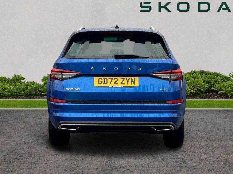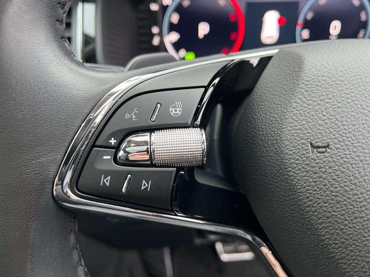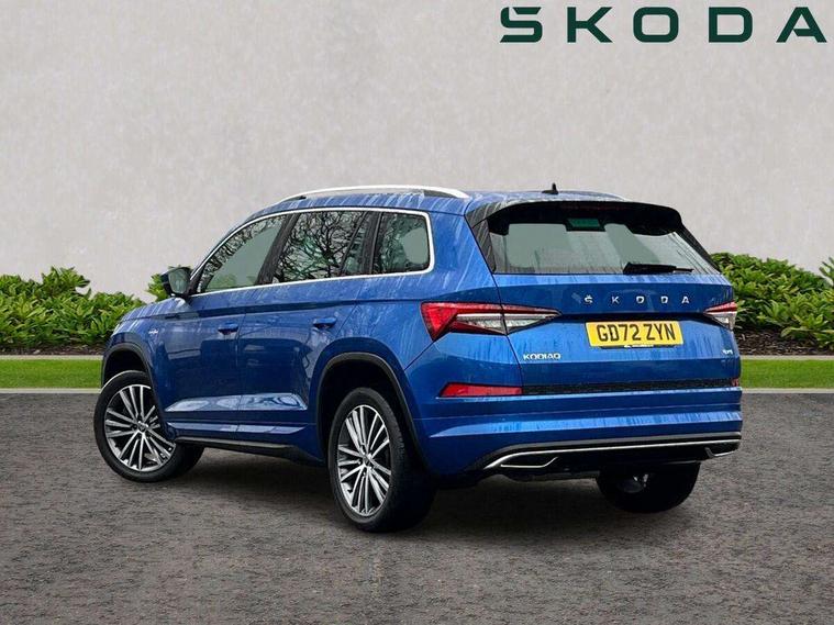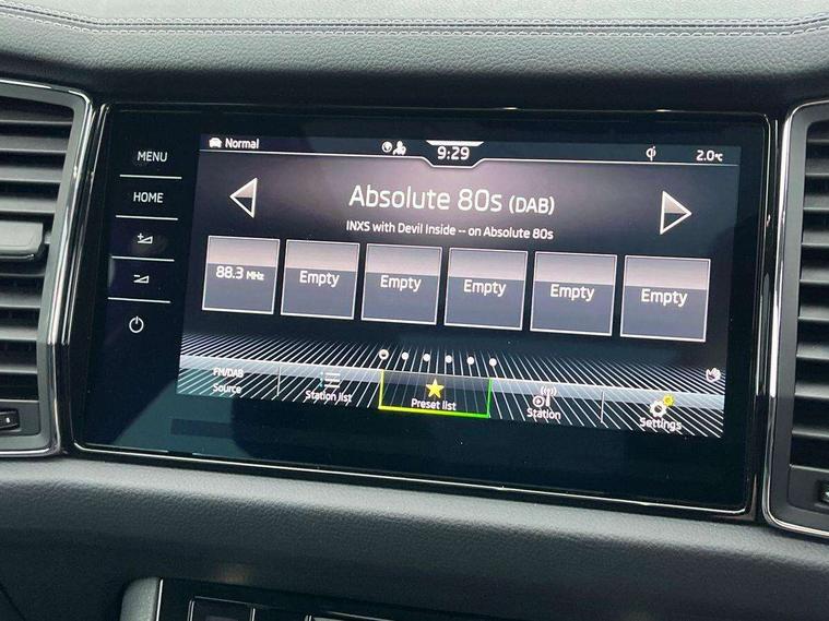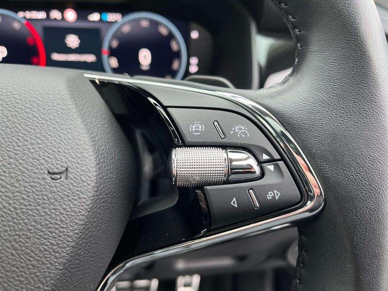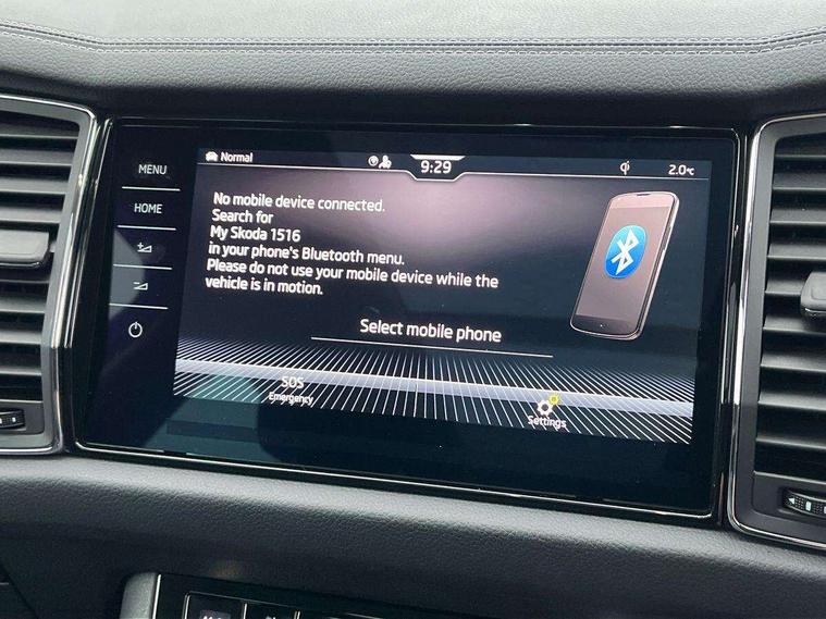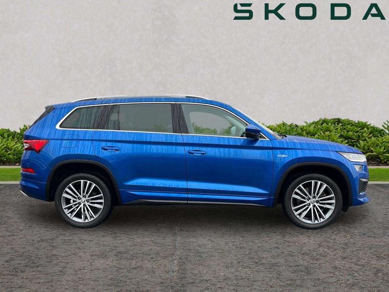 Area view, Blind spot detection system, Bluetooth system, Columbus satellite navigation with 9.2" touchscreen, integrated Wi-Fi, web radio, Digital voice enhancement, E-call, ECO Stop/start function, Exterior temperature indicator, Progressive steering, Smartlink wireless for apple carplay and wired for android auto, Speed limiter, Tailgate unlocking from outside, USB C Port x 2 in front centre console, Virtual Cockpit - 10.25" digital display, Wireless charging, Canton sound system, DAB Digital radio, Aero front windscreen wipers with intermittent function, Aero rear window wiper, Auto dimming rear view mirror, Black wheel arch surrounds, Body colour bumpers, Body colour door mirrors and handles, Body colour door panels, Chrome front grille, Chrome roof rails with chrome window surround, Electric adjustable/heated/folding door mirrors, driver side auto dimming with boarding sports and memory function, Electric front and rear windows, Extended rear spoiler with finlets in gloss black, Front fog lights, Full LED matrix headlights with AFS (adaptive front light system), cornering function and AWL (all weather lighting system), Headlight washers, Heated rear window, Invisible tailpipe, L&K front and rear bumpers including lower rear chrome strip, LED daytime running lights, LED rear fog light, LED third brake light in rear spoiler, Light assistant (coming/leaving home/tunnel light), Off-road style lower front bumper element, Panoramic sunroof, Privacy glass, Rain and light sensors, Rear LED lights (high functionality) with welcome effect and dynamic indicators, Rear side wing doors, Safety reflectors on front and rear doors, Window control switches with black trim, Without engine designation, 12V socket in boot, 2 rails with 2 hooks, 2 seat bench in 3rd row, 3 seat bench in 2nd row, 4 foldable roof handles with rear coat hooks, 60:40 foldable rear seat with sliding adjustment and backrest angle adjustment, Aluminium pedals, Bottle holders in door panel in the 1.5 litre front and 1 litre rear, Cargo storage compartments, Chrome headlight control button, Chrome interior door handles, Coat hooks on B pillar, Covered storage compartment on driver side, Front centre armrest with storage compartment, cup holder and 12V socket, Front courtesy lights, Gear shift lever with chrome frame and black gloss insert, Grey stitching in front and rear armrests and door armrests + door inserts, Height adjustable front headrests, Illuminated and cooled glovebox, Illuminated luggage compartment, Isofix child seat fittings in outer rear seats with top tether, Manually adjustable steering column, Net programme in boot (1x horizontal Net, 2x vertical Nets), Overhead glasses storage compartment, Pollen filter, Rear centre armrest with cupholders, Single front passenger seat, Sliding trunk cover, Small Bags on the inner sides of the front backrests, Sunvisors with illuminated vanity mirrors, Three rear height adjustable headrests, Ticket holder on A Pillar, Umbrella in door panel, Variable boot floor, LED Interior light pack - Kodiaq, Auto door release and activation of warning lights in the event of an accident, Child locks on rear doors, Driver and front passenger airbag with knee airbag and front passenger airbag deactivation, Electronic parking brake with hill start assist, Emergency rear braking signal, ESC (incl. ABS+MSR+ASR+EDS+HBA+DSR+RBS+MKB), Front assist with autonomous emergency braking, Front side airbags with curtain airbags, Fuel cut off safety device, Height adjustable front 3 point seatbelts + pretensioners, Hill hold control, Rear disc brakes, Safety vest holder in door, Seat belt reminder for all seats, Three point rear seat belts, Two tone horn, Tyre pressure monitor, Alarm with interior monitoring and tilt sensor with safe function, Anti-theft wheel bolts, Immobiliser, Keyless entry and start system (KESSY), Remote central locking with 2 keys, Grey stitching in dashboard, Piano black decorative inserts, Plaquette L&K front fenders, Temporary spare wheel (space saver),