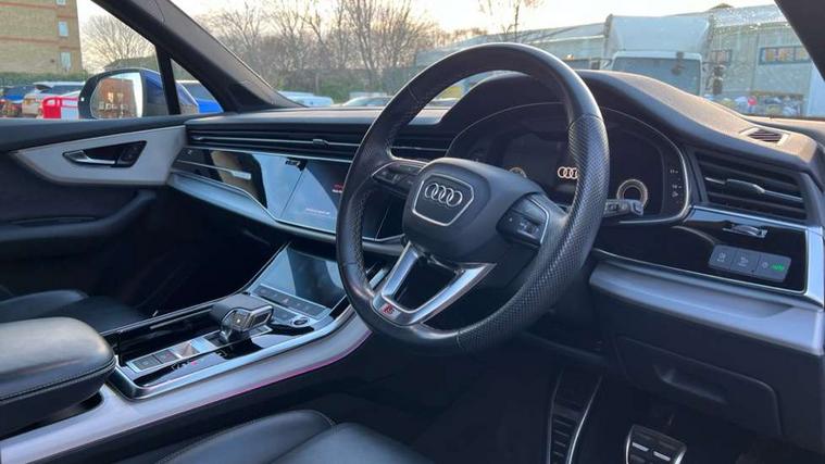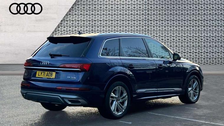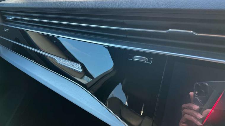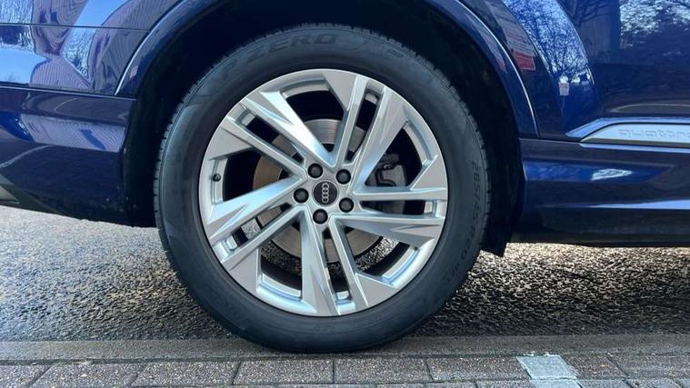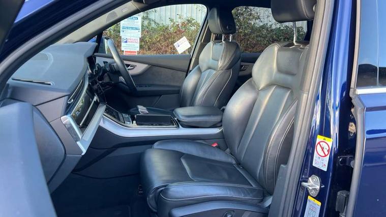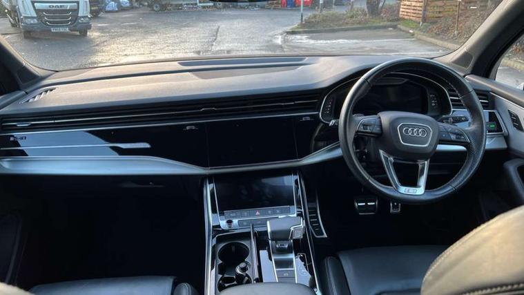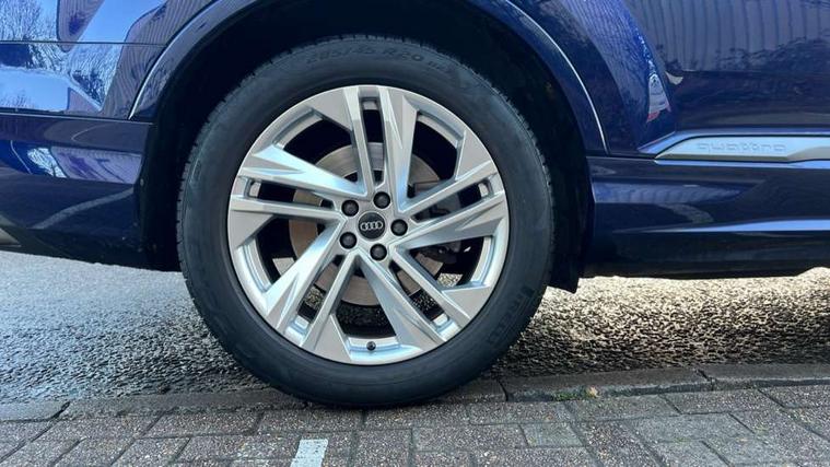 Audi connect safety and service (e-call), Audi connect with Amazon Alexa Integration, Audi drive select (Auto, Comfort, Dynamic, Efficiency, Individual, Off-road and All road), Bluetooth interface, Camera based traffic sign recognition, Electromechanical steering, MMI navigation plus with MMI touch screens includes 10.1" and 8.6" screens with haptic feedback, Natural voice recognition, Parking system plus with 360 degree display (front, rear and side sensors) - acoustic and visual park assist system, Power operated tailgate, Rear view camera, Smartphone interface includes wireless Apple carplay/Android Auto, Start/stop system, 48V Mild hybrid technology, 85 litre fuel tank, Adaptive air suspension, Quattro all wheel drive with self locking centre differential, Audi music interface - front 2 USB-C ports with charger and data functions, Audi sound system with 6 channel amplifier, 180 watt amplifying capacity and 10 loudspeakers including subwoofer, DAB digital radio module, 3rd brake light, Aluminium roof rails, Aluminium window trim, Audi matrix LED headlights with dynamic front and rear indicators, Auto dimming frameless rear view mirror, Body coloured door mirrors, Electrically adj heated/folding + automatically dimming exterior mirrors with memory + automatic kerb side function for passenger side exterior mirror, Heat insulating glass in windshield, Integrated LED indications in door mirrors, LED daytime running lights, LED rear tail lights, Privacy glass - dark tinted rear and rear side windows from B-pillar backwards, Rear side wing doors, Rear wiper, S Line badge on wings, S line bumpers in full body colour paint finish, S line roof spoiler, S line styling side ventilation grilles and side skirts, 2 seat bench in 3rd row, 2 zone automatic climate control, 3 seat bench in 2nd row, 7 seat layout with ISOFIX points for the front passenger seat and rear passenger seat, Black cloth headlining, Comfort front centre armrest, Electric adjustable front seat with 4 way lumbar support, driver memory functionality, Folding rear seats, Front head restraints, Front/rear floor mats, Heated front seats, Illuminated door sill trims with S logo, LED interior ambient lighting, Luggage compartment cover, Luggage compartment sill protection in stainless steel, Rear head restraints, Single front passenger seat, Stainless steel pedals, Sunvisors with illuminated vanity mirrors, 3 point seatbelts on all rear seats, Audi pre sense front, Child locks on rear doors, Driver and front passenger, front side and curtain airbags, Electromechanical parking brake, Electronic Stabilisation Control (ESC) including ABS, ASR and EDL, Extended pedestrian protection measures, Hill hold assist, Seatbelt monitoring, Tyre pressure loss indicator, Warning triangle and first aid kit, Anti theft alarm, Anti-theft wheel bolts and wheel loosening detection, Keyless Go, Remote central locking, Darkened matt brushed aluminium inlays, Tool kit, Tyre repair kit,