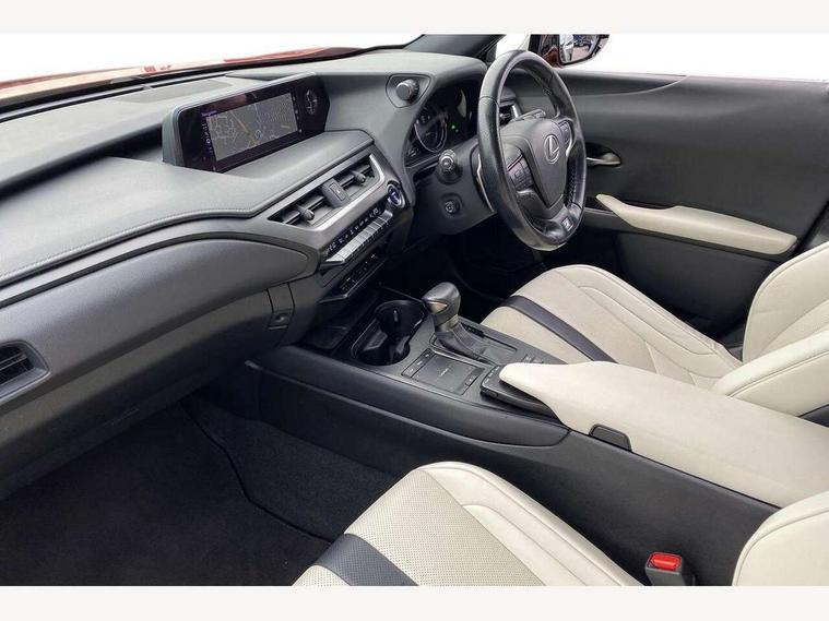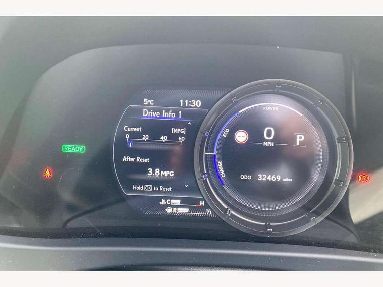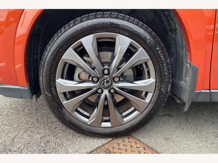 4 driving modes EV/Eco/Normal/Sport, 7" Lexus media display, 8" LFA inspired TFT meters with movable meter ring, Analogue clock with GPS function, Apple car play/Android Auto, Compatible mobile phone bluetooth with audio streaming, E-call, Electric power steering (EPS) with speed sensitive features, Front and rear parking sensor with intelligent clearance sonar, Lane change flasher function, Lexus link connected services, Lexus navigation system, Lexus safety systems + includes dynamic radar cruise control, pre collision system day and night, lane tracing assist, road sign assist, Push button start, Remote touch interface, Reversing camera with back guide lines, Trip computer, F Sport suspension tuning and rear performance dampers, Vehicle Dynamics Integrated Management (VDIM), Vehicle Stability Control (VSC), 2 front USB and 2 rear USB charging points, 6 speakers, AM/FM and DAB radio, AUX socket with VTR compatibility, CD player, Acoustic windscreen, Aero stabilising arch mouldings, Aero stabilising rear lights, Aero ventilated wheels, Aluminium roof rails, Auto dimming interior rear view mirror, Bi-LED (low and high beam) headlights with Auto High Beam (AHB), Black roof drip mouldings, Body adhesive, laser screw welding and laser brazed roof structure, Body coloured bumpers, Colour coded wheel arches, Electric adjustable/heated door mirrors, F SPORT exterior styling consists of black Mesh front grille, enhanced side rockers, metallic coated front bumper and F SPORT badging, Front and rear one touch power windows, with anti-jam protection, Headlight cleaners, LED cornering headlights, LED daytime running lights, LED front and rear fog lights, LED tail lights, LED third brake light, Privacy glass, rear doors and tailgate, Rain sensor windscreen wipers, Rear side wing doors, Rear wiper, Shark fin roof aerial, Single hidden exhaust pipe, Towing preparation, Variable front intermittent wipers, 12V accessory port centre console and luggage compartment, 2 cup holders in the front and rear centre console, 2 way electrical lumbar adjustment for driver, 2 x folding shopping bag hooks in boot, 2 x sun visors with vanity mirror and lamp, 3 seat bench in 2nd row, 4 x tie down hooks in the boot, 5 headrests, 60/40 split folding rear seat, 8 way driver/passenger electrically adjustable front seats, Active sound control, Card holder installed in driver and passengers sun visors, Centre armrest with storage, Driver and passenger door pocket, Dual zone electronic climate control + Nano-E humidity sensor, F Sport aluminium sports pedals, F SPORT dimpled leather gear lever, F SPORT front seat headrest adjustable forwards and backwards, F Sport interior styling, F Sport leather steering wheel with paddle shifts, Fabric/Tahara leather upholstery, Glovebox, Heated steering wheel, Illuminated entry system, LED interior illumination, Map pockets in the rear of passenger's front seat, Rear air vents with 2 USB chargers, Rear armrest with 2 cupholders, Single front passenger seat, Storage tray under audio panel, Textile carpet mats, Tilt/reach adjustable steering column, Under deck storage, Under desk side storage, 2 x Isofix child rear seat restraints, 3x3 point rear seatbelts, Anti-lock braking system (ABS), BAS (Brake Assist System), Driver and front passenger 2 stage airbag, Driver and front passenger knee airbag, Driver/front passenger side airbags, EBD - Electronic brakeforce distribution, ECB (Electronically Controlled Brake System), Electric child locks, Electric parking brake, Front adjustable seatbelt anchor points, Front and rear curtain shield airbags, Front outer seatbelt+pre-tensioners, force limiter+tension reduction: 3-point with active safety link to PCS, Hill start assist control (HAC), Passenger airbag cut-off device, Rear outer seatbelt+pre-tensioners, force limiter+tension reduction: 3-point with active safety link to PCS, Centre belt w/o pre tensioner+force limiter, Secondary Collision Brake (SCB), TRC (Traction Control), Tyre pressure warning, 2 x remote key fobs, Anti theft system : Alarm instruction sensor, glass breakage sensor and engine immobiliser, Locking wheel nuts, Remote central door locking, Speed sensitive auto door locking, Two motion door lock with double lock, VIN Window etching, 18" F Sport alloy wheels with run flat tyres,