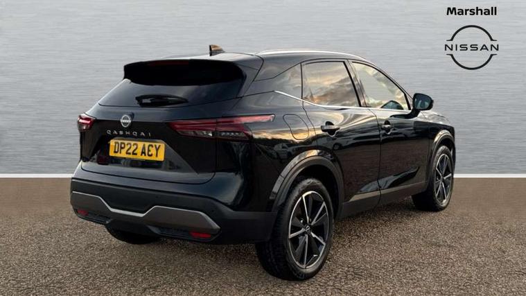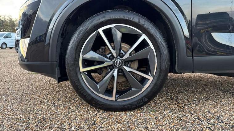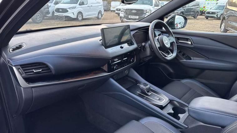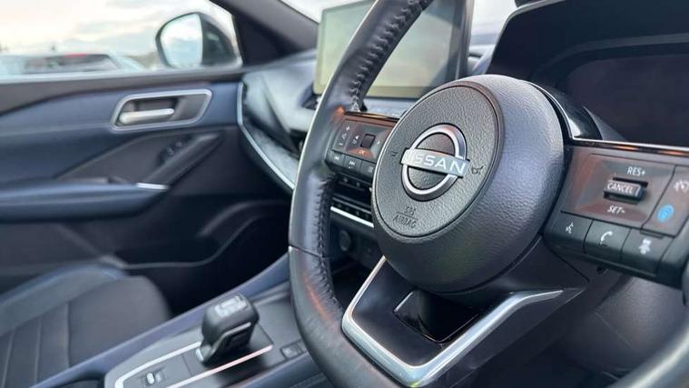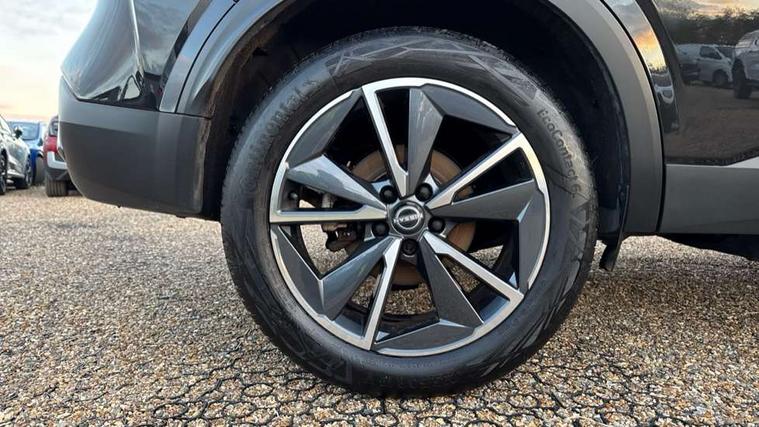 Advanced windscreen head up display, Android auto/Apple CarPlay (Wired), Blind spot warning, Drive modes (sport, normal, eco), Electric speed sensitive power steering, Emergency and breakdown call, Front and rear parking sensors, Full Digital 12.3" TFT Digital Combimeter, Google maps services - search, weather, 3D maps and Google street view, Hands free power tailgate, Idle stop/start system, Intelligent around view monitor, Intelligent Cruise control (ICC), Intelligent driver alert system, Intelligent forward collision warning, Intelligent lane intervention, Lane departure prevention, Lane departure warning system, Lane keep assist, Moving object detection, Nissan connect 12.3 inch touchscreen infotainment system, Nissan connect navigation, ProPilot, Push button starter, Rear cross traffic alert, Rear view camera, Remote control services - door locks, lights, horn and car locator, Telematics - notifications and connectivity services, TomTom live traffic services, Traffic jam pilot, Traffic sign recognition with legal speed adjustment, Trip computer, Virtual personal assistant and firmware over the air capability, Wireless apple carplay, Wireless charging pad, 6 speakers, AM/FM audio system with DAB, Bluetooth audio streaming, Front USB connections (Type-A and Type-C), Rear USB charging only ports (Type-A and Type-C), Auto dimming rear view mirror, Auto rear wiper when reversing, Automatic hazard signal with emergency stop signal, Body colour mirror caps, Body coloured door handles, Bodyside mouldings, Chrome side window finisher, Door handle with button, Electric auto folding door mirrors, Electrically adjustable and heated door mirrors with LED turn indicator, Follow me home headlights, Front and rear LED turning signals, Headlights auto levelling system, Intelligent auto headlights, LED daytime running lights, LED headlights with adaptive driving beam, LED rear lights, One touch front and rear electric windows with remote opening and closing, Partially body coloured bumpers, Privacy glass, Rear bumper with graphite insert, Rear reversing light (bulb lighting), Rear roof spoiler, Rear side wing doors, Rear styling plate, Shark fin antenna, Splash free rain sensing wipers, Super UV and infrared cut glass, Thermaclear heated windscreen, Three blink turn signal, 12v power socket in dashboard and luggage, 2x Rear coat hooks, 3 bench rear seats in 2nd row, 3 rear headrests, 4 folding assist grip, 6 Luggage hooks - 4 on floor, 2 on side, 60/40 split folding rear seat bench, Ambient lighting around centre console, Ambient lighting in front doors, Centre console storage tray, Chrome interior door handles, Cloth/syntech leather monoform upholstery, Dark black/blueish PVC wrapping, Dark headlining, Driver and front passenger sunvisors with illuminated vanity mirrors, Driver seat back pocket, Dual zone automatic climate control with pollen filter, Electrically adjustable driver seat, Electrically adjustable lumbar support for driver, Front and rear door storage, Front centre console and armrest, Front cupholders x 2, Front door with bottle holders, Glovebox with light, Hard trunk cover, Heated front seats, Heated steering wheel, Height adjustable driver's seat, Height adjustable front headrests, Height adjustable passenger seat, Leather steering wheel, Luggage board system, Luggage space lighting, Manual lumbar support on passenger seat, Manually adjustable passenger (slide recline + lifter), Multifunction steering wheel, Passenger seat back pocket, Rear armrest with 2 cupholders, Rear door bottle holders, Single front passenger seat, Soft PVC kneepad, Steering wheel gearshift paddles, Steering wheel switches, Tilt/telescopic adjustable steering wheel, Two rear isofix child seat anchorage points with top tether, Welcome light and doors with console tray ambient lighting, Glass roof pack with roof rails - Qashqai, 3x3 point rear seatbelt pretensioners + load limiters, ABS with EBD and brake assist, Active brake limited slip, Auto hold function, Child locks on rear doors, Curtain and front side, far side airbags, Driver and passenger airbags, Driver, passenger and 2nd row rear seat belt reminder, Electronic parking brake, Front seatbelt pretensioners + load limiters, Height adjustable front seatbelts, Hill start assist, Intelligent blind spot intervention, Intelligent front emergency braking with pedestrian, cyclist recognition and junction assist, Intelligent rear automatic braking, Tyre pressure monitoring system, Vehicle dynamic control, Capless fuel filler, Engine immobiliser, Intelligent Key, Remote central door locking with deadlocking, Thatcham Cat.1 alarm, Interior instrumental panel C finisher, 19" Alloy wheels, Tyre puncture repair kit,