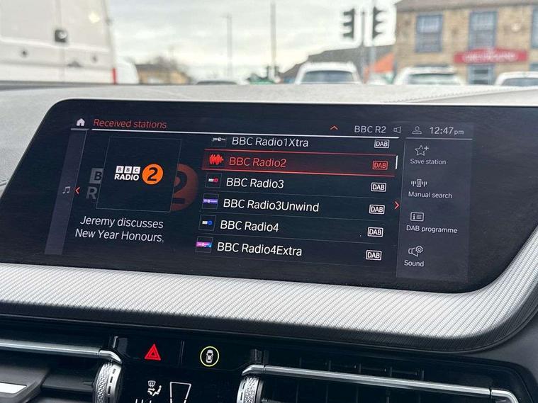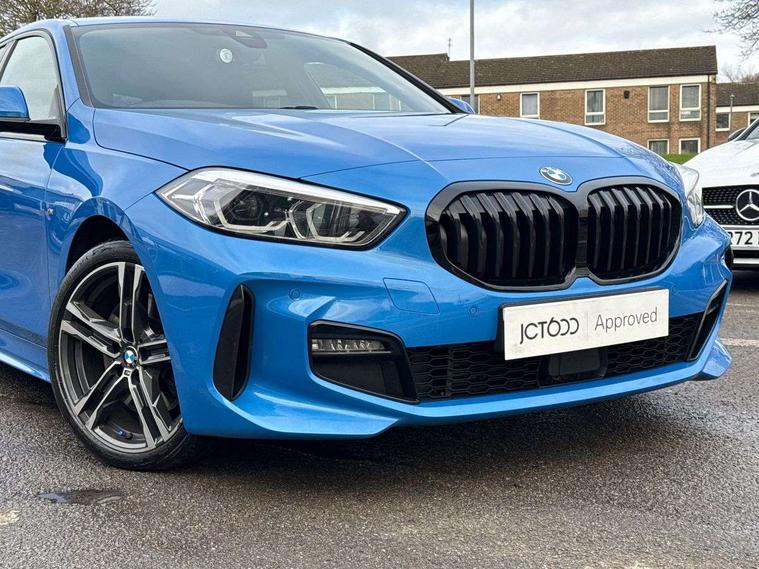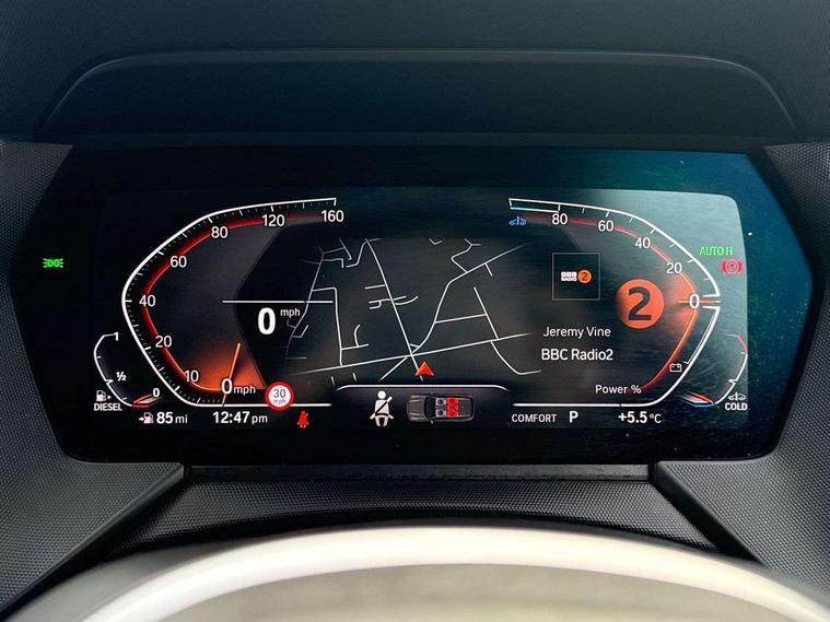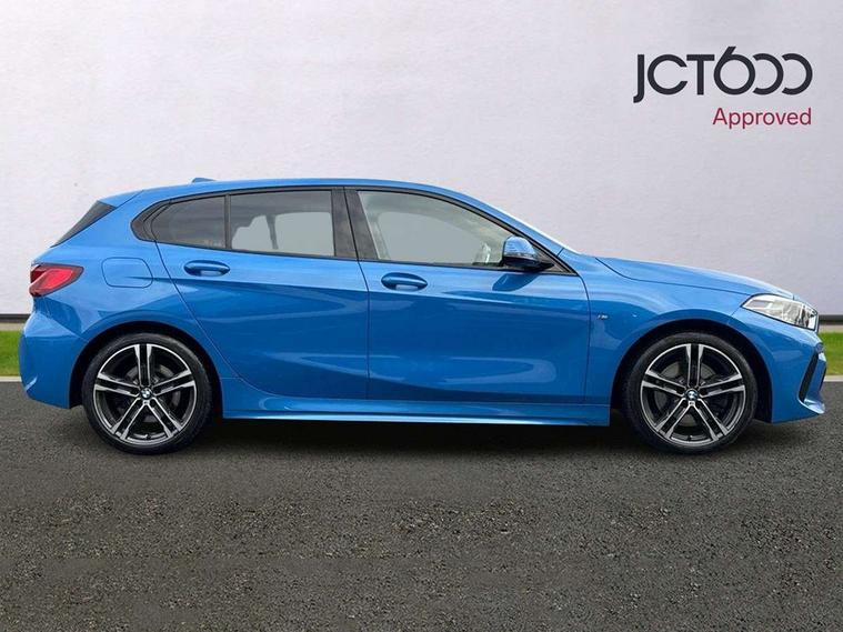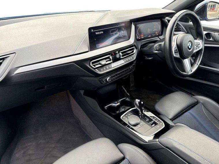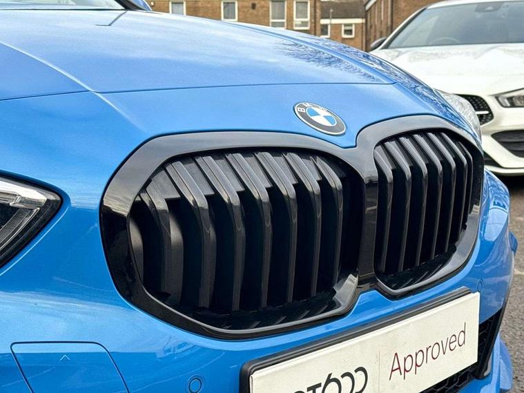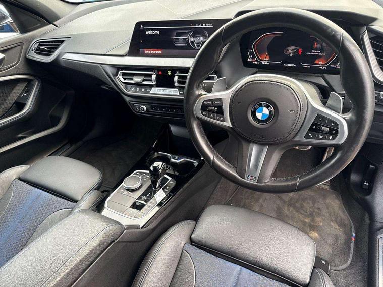 Active guard plus, Attentiveness assist, BMW Online services, BMW Teleservices, Check Control warning system for monitoring of lights and door/luggage compartment open warning, Connected eDrive Services, Eco pro mode, Integrated owners handbook, Oil sensor for level and grade, On board computer, Optimum shift indicator, Personal Profile, Pull away assistant, Speed limiter, Aluminium lightweight construction, Anti roll bar front and rear, Balancer shaft, Diesel particulate filter, Drive Performance Control, Electronic differential lock, Larger fuel tank capacity (50 litres), Bluetooth audio streaming, DAB Digital radio, Auto dimming rear view mirror, Automatic headlight beam throw control, Automatic windscreen wipers and automatic headlight, Body colour door handles, Body colour mirror caps, Chrome 'M' logo side designation, Chrome exhaust twin tailpipes round 90mm in left and right split, Chrome kidney grille frame with Satin Aluminium struts, Direction indicator side lights in exterior mirrors, Electric folding and anti dazzle exterior mirrors, Fading support, Follow me home headlights, Front and rear bumper system with replaceable deformation elements, Front and rear electric windows with open and close fingertip control, anti trap facility and comfort closing, Front door sill finishers in black plastic with M designation in metallic look, Green tinted heat protection glazing, Heated, electrically adjustable exterior mirror aspheric on driver side, convex on passenger side, High gloss shadowline window frame, Recess cover mirror frames and B/C pillar embelisher trim, High level third brake light, LED daytime running lights, LED eyebrow turn indicators, LED front fog lights, Lightweight engineering, Matt black air guide grilles, Model designation on right side of tailgate, Nearside reverse light in rear light cluster, Preparation for high beam assistant, Rain sensor including auto headlights activation, Rear fog lights, Rear window wiper, Shark fin antenna, Visible VIN plate, Welcome lighting, 12V power socket in centre console, 3 rear seat head restraints, 3 spoke M sports design leather steering wheel finished in nappa leather with specific M badge, Anthracite headlining, Anthracite Velour floor mats, Child seat ISOFIX attachment for two outer rear seats and front passenger seat with anchorage points, Conditioned based service, Dakota leather upholstery with perforation and contrast stitching, Driver and front passenger seat heating, Folding rear clothes hook, Four grab handles integrated in roof lining, Front and rear door pockets, Front and rear door pockets with bottle holders, Front and rear side armrest integrated into door trim, Front armrest foldable with integrated storage compartment, Front sports seats with electric side bolster adjustment, Glove compartment, Height adjustable front head restraints, Manual adjust steering wheel, Multi-function controls for steering wheel, Storage compartment in centre console, Sun visors with vanity mirrors and insert tab, Two zone automatic air conditioning, Additional interior lighting pack - 1 Series, Connected pack professional - 1 Series, Extended storage pack - 1 Series, Interior lights pack - 1 Series, Luggage compartment pack - 1 Series, M Sport exterior styling aerodynamics pack - 1 Series, 2 tone horn, 3 point seatbelts on all seats, front pyrotechnic belt tensioners, stopper and belt force limiters, rear coded belt buckles, Airbags - front driver/passenger, front & rear curtain, front side, Anti lock braking system (ABS) with brake assist, BMW emergency call, Brake drying, Braking readiness, Crash sensor activating central locking release, hazard warning lights, fuel cut off, interior lighting + activation of safety battery terminal clamp, Driver and front passenger seat belt security check, Dynamic stability control + (DSC+), Dynamic Traction Control - DTC, Electrically operated hand brake, Front and rear disc brakes, Front passenger manual airbag deactivation, Seatbelt warning, Side impact protection, Tyre pressure monitoring system, Warning triangle and first aid kit, Automatic drive away locking facility, Central locking switch for all doors, fuel filler cap and luggage compartment, Deadlocking function system to all doors, Incorrect fuel protection system, Locking wheel bolts, Remote control with integrated key with High-gloss Black inlay and M designation and 1 button for open/ close lock, window, open luggage compartment, Start/stop button with comfort go keyless engine start and auto start stop deactivation button, Thatcham Cat.1 alarm and immobiliser, Contrast stitching on instrument panel, Reduced rolling resistance tyres,