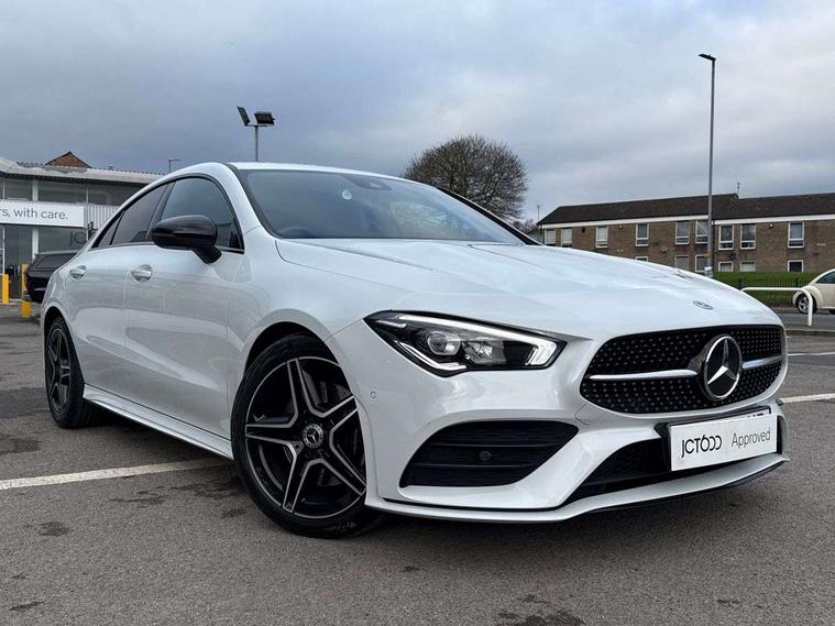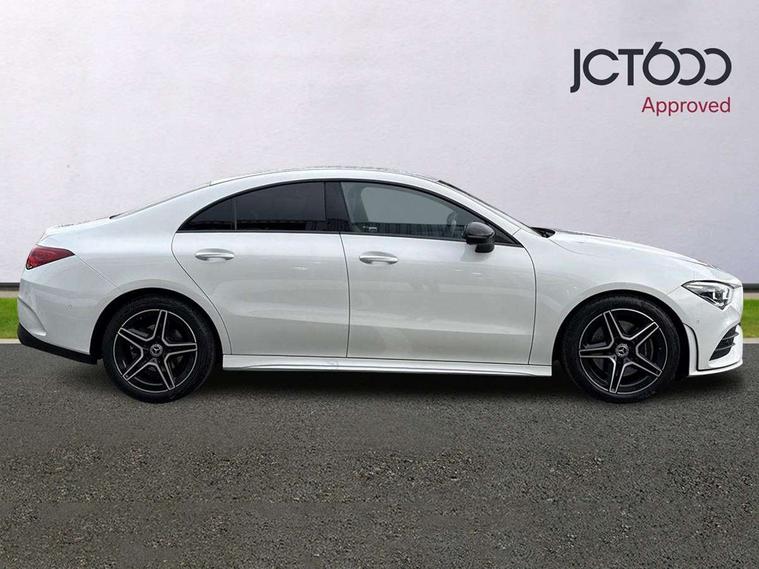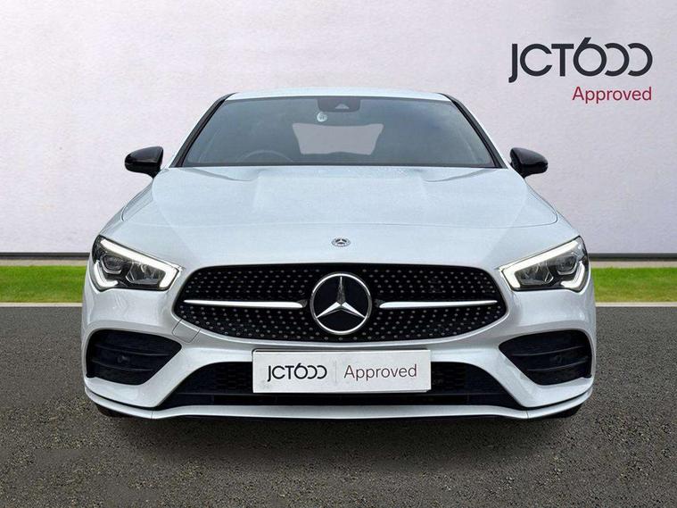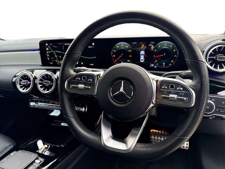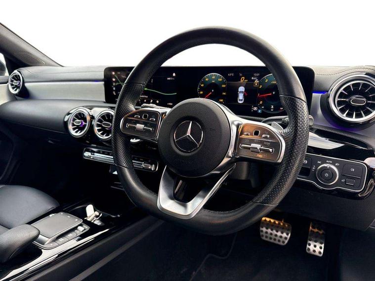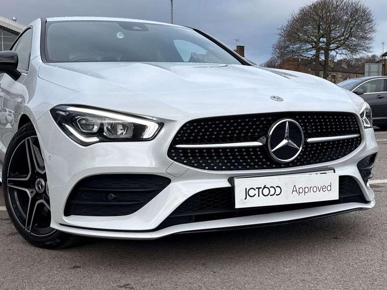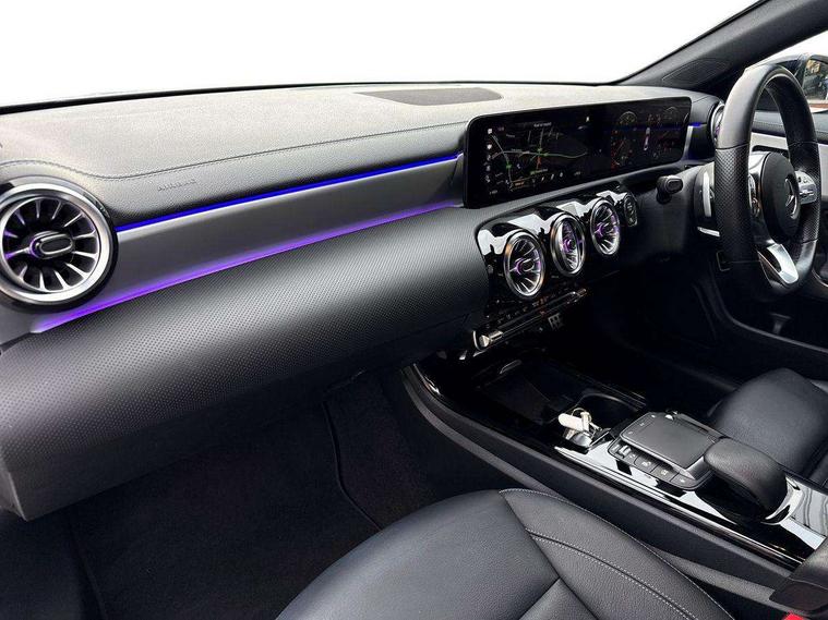 10.25 inch Instrument display with digital cockpit, 10.25 inch touchscreen central media display, Active lane keeping assist, Attention assist - Monitors steering behaviour and long journey fatigue, Bluetooth connection, Car wash mode, Cruise control with limiter, Direct steer system with speed sensitive power steering, DYNAMIC SELECT with a choice of driving modes (ECO, Comfort, Sport and Individual), ECO start/stop function, Fluid level warning indicator for fuel, oil, coolant and washer fluid, Hard-disk navigation, Hey Mercedes Voice activation, Lamp failure indicator, Mercedes me connect including emergency call system, accident recovery, breakdown and maintenance management, Mercedes me remote services, Outside temperature gauge, Owners manual and service booklet in English, Pre-installation of private car share, Preinstallation for Mercedes Benz link, Radio aerial integrated into front and rear windshields, Service indicator (ASSYST), Smartphone integration with Apple CarPlay and Android auto, Speed limit assist, Trip computer in multifunction display with current consumption indicator, Lowered comfort suspension, Rear axle multi-link, DAB digital radio tuner, MBUX multimedia system, Mid-range sound system, USB (type C) ports (2) in stowage compartment and 1 in front of centre console, Adaptive brake lights, AMG body styling with AMG front apron and rear apron and visible exhaust tailpipe in chrome trim elements, AMG bodystyling side skirts, Body colour bumpers, Body colour door handles, Chrome beltline strips, Diamond radiator grille pins in chrome, Electric windows, Electrically adjustable and heated door mirrors with integrated LED indicators, Exhaust system with 2 Visible tailpipe trim elements and rear apron with trim in chrome, Headlamp assist automatic headlamp activation, Heated glass rear windscreen + timer control, High level LED third brake light, Interior mirror with black reading lamps and frameless, LED high performance headlamps with integrated LED daytime running lights, LED tail lamp, Privacy glass with dark tinting on rear side windows and rear window, Rain sensing windscreen wipers with two sensitivity settings, Rear boot, Rear fog lamp, Rear side wing doors, Variable front intermittent wipers, Window line trim strip in chrome, 3 seat bench in 2nd row, 3 spoke flattened bottom nappa leather multifunction steering wheel with perforated leather in grip area, 40:20:40 split folding rear seat backrests, Air conditioning - Two zone thermotronic luxury automatic climate control with display, Air vents with surround in silver chrome, Artico man-made leather upholstery, Automatic child seat recognition sensor, Black roof lining, Brushed stainless steel sports pedals with rubber studs, Floor mats with stitched AMG lettering, Front centre armrest with stowage, Galvanished gear shift paddles on steering wheel, Heated front seats, Illuminated front door sills with changeable cover, Illuminated glove compartment stowage, Interior lighting - 64 colour Ambient lighting, Luggage net on driver/front passenger seat backrest, Manually adjustable front seats, Manually height and reach adjustable steering column, Rear armrest with two integral cup holders for drinks, Rear head restraints, Single front passenger seat, Sport seats with fixed head restraints, Stowage compartment in centre console with retractable cover, Sunvisors with illuminated vanity mirrors, Touchpad on center console, Twin front cupholders, Two outer rear seat isofix and top tether child seat fixing points, Keyless go comfort pack - CLA, Light and sight pack - CLA, Mirror pack - CLA, Night package - CLA, Parking package - CLA, Seat comfort pack - CLA, Active bonnet pedestrain safety measure which detects an impact and raises bonnet by 65mm, Active brake assist includes forward collision warning system with autonomous braking, Adaptive brake assist with hold function and hill start assist, Anti lock braking system (ABS) with brake assist, Black seat belts, Bonnet with power domes, Brake pad wear warning indicator, Childproof locks manually operated for rear doors and electrically operated for rear power windows, Crash responsive emergency lighting, Driver and front passenger head and sidebags, Driver and front passenger windowbags, Drivers knee airbag, Dual stage driver and front passenger airbags, Electric parking brake, Electronic stability programme with acceleration skid control, ESP curve dynamic assist, Front and rear seatbelt reminder, Front passenger seat occupancy sensor, Three point rear seat belts, Tyre pressure monitoring system, Warning triangle and first aid kit, Guard 360 degree guard vehicle protection system with immobiliser and interior protection, Remote central locking and crash sensor with emergency opening function, Light aluminium with longitudinal grain interior trim, 18" AMG 5 twin spoke light alloy wheels painted in black with high sheen finish, Summer tyres, Tirefit tyre sealant kit,