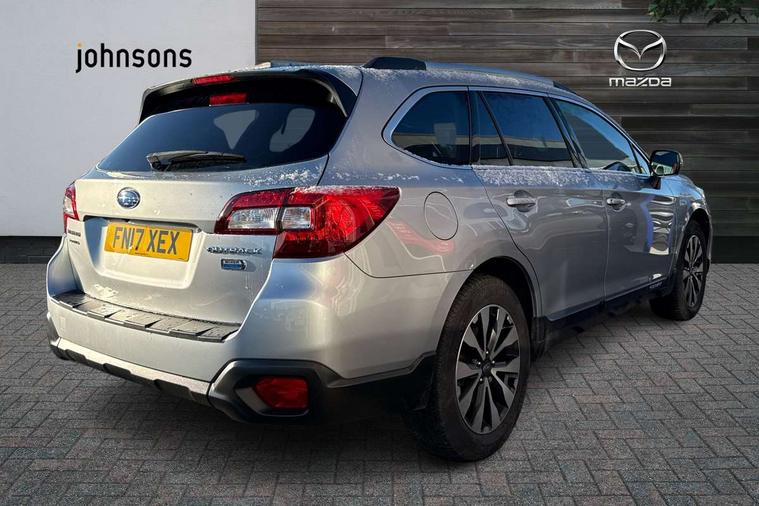 18" Aluminium wheels, Tyre repair kit, Deadlocks, Keyless entry and start, Locking wheel nuts, Remote central locking, Thatcham category 1 alarm + immobiliser, 6 speakers, Auxiliary audio input socket, Radio/single CD player, Steering wheel mounted audio controls, USB connection, 3x3 point rear seatbelts, ABS + EBD + EBA, Active front headrests, Driver and passenger seatbelts with warning light, Drivers knee airbag, Dual stage driver/passenger airbags, Electronic parking brake, Front and rear curtain airbags, Front seatbelt pretensioners + load limiters, Height adjustable front seatbelts, Hill descent control, Hill hold control, Passenger knee airbag, Rear child proof door locks, Side airbags, Torque vectoring brake, Traction control, Tyre pressure monitor, Automatic headlights, Body colour bumpers, Body colour door handles, Body colour electric heated/adjust/fold mirrors, Electric glass tilt and slide sunroof, Front and rear electric windows, Front fog lights, Heated rear window with timer, Intermittent rear wash/wipe, LED Headlights, Pop up headlamp washers, Rain sensor windscreen wipers, Rear privacy glass, Roof rails, Roof spoiler, UV reducing glass, 4 cargo hooks, 60/40 split one touch flat folding rear seats, 8 way electric driver seat with lumbar adjustment, 8 way electrically adjustable passenger seat with height, reach, till and backrest, Auto dual-zone climate control system, Centre console storage tray, Defroster vents for front and side windows, Door pockets with bottle holder, Driver seat memory function, Driver/passenger front seatback pockets, Dust/pollen filter, Front centre armrest, Front centre console with storage/12v power outlet, Front cupholders, Front interior welcome light, Front map lights, Heated front seats, Illuminated driver/passenger vanity mirror, Isofix child seat attachment, Leather steering wheel, Leather upholstery, Luggage area lamp, Luggage area under floor storage box, Paddle shift controls, Rear centre armrest with 2 cupholders, Rear head restraints, Rear heater duct, Rear interior welcome light, Reclining rear seats, Retractable luggage cover, Stainless steel sill covers, Tie down hooks in luggage area, Tilt/reach adjustable steering wheel, Ventilation ducts to rear compartment, Bluetooth connectivity with voice recognition, Eco gauge, EyeSight driver assist - Adaptive cruise control, lane keep assist/sway warning and pre-collision braking, Interior fuel flap release, Navigation system, Outside temperature gauge, Rear view camera, Service interval indicator, Speed sensitive power steering, Trip computer, SVDC - Subaru Vehicle Dynamics Control,