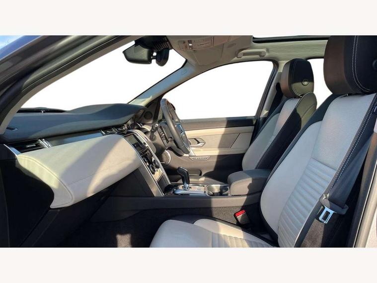 10" touch screen, Adaptive cruise control, Android Auto, Apple CarPlay, Blind spot assist, Clear exit monitor, Driver condition monitor, eCall emergency call system, Front and rear parking aid, InControl remote premium, Lane keep assist, Locking fuel flap, PAS, Pivi Pro connected navigation system with upgraded Infotainment, Powered tailgate/boot lid, Push button start, Rear collision monitor, Rear traffic monitor, Service interval indicator, Traffic sign recognition with adaptive speed limiter, Trip computer, Wade Sensing, 7 kW onboard charger, All terrain progress control, Coil suspension system, Dynamic stability control, Home charging cable, Public charging cable, Terrain Response 2, Bluetooth connectivity including audio streaming, Digital Audio Broadcast radio-DAB, Steering wheel mounted audio controls, 3rd brake light, Automatic headlight levelling, Automatic headlights, Electric front/rear windows, Electric heated/power fold door mirrors with approach lights and auto dimming driver side, Fixed panoramic sunroof with powered sunblind, Front and rear recovery eyes, Heated rear window, Heated windscreen including heated washer jets, Privacy glass, R Dynamic badge, Rain sensing windscreen wipers, Rear fog lights, Rear side wing doors, Rear wing door, Rear wiper, 5 seats, Bright metal pedals, Centre console with armrest, Footwell lights, Front and rear grab handles, Front passenger isofix child seat attachment, Loadspace cover, Loadspace light, Overhead lighting console, Overhead stowage for sunglasses, Rear headrests, Satin chrome gearshift paddles, Sunvisors with illuminated vanity mirrors, Tilt/reach adjustable steering wheel, Black exterior pack - Discovery sport R-Dynamic SE/HSE, Online pack with data plan - Discovery, 3 point seatbelts on all seats, ABS, Brake hold function, Child locks on rear doors, Collision mitigation braking system, Cornering brake control (CBC), Driver/Front Passenger airbags, Drivers knee airbag, Electronic brake force distribution, Electronic parking brake, Emergency brake assist, ESP + traction control, Hill descent control, Hill launch assist, Pedestrian airbag system, Rear seat ISOFIX, Roll stability control, Side and curtain airbags for front and 2nd row seats, Trailer stability control, Tyre pressure monitoring system, Battery Back Up System (BBUS) with tilt sensor, Global lock and unlock switch on driver door, Intrusion sensor, Keyless entry, Locking wheel nuts, Centre stack rails in noble chrome,