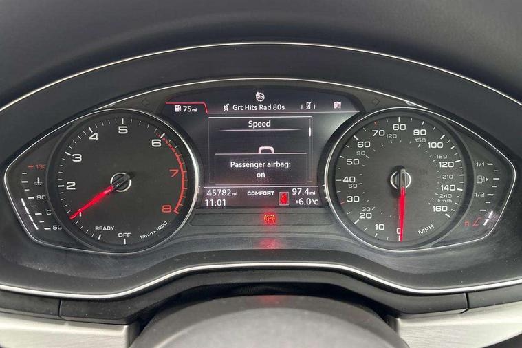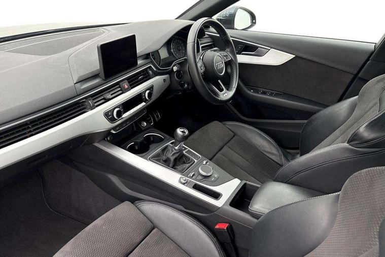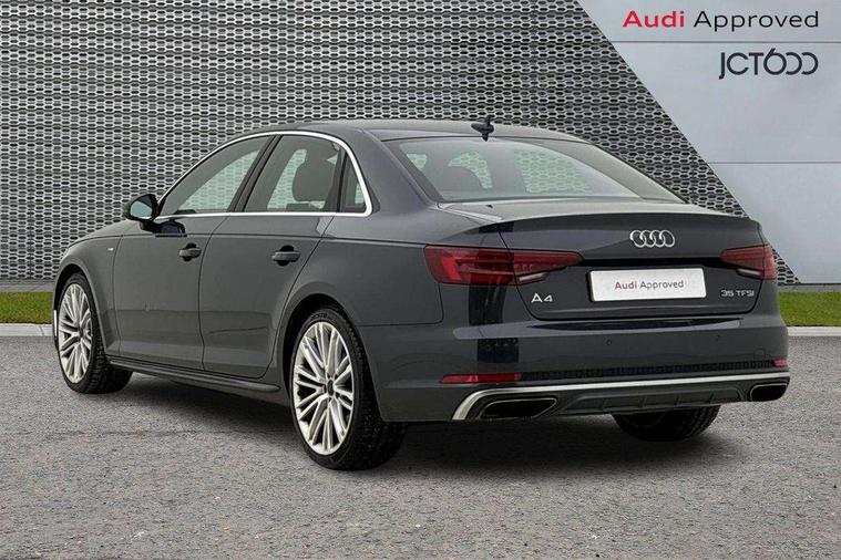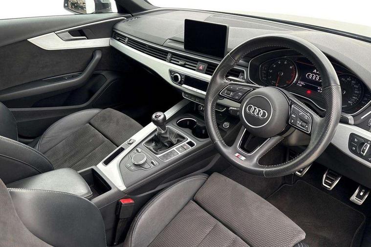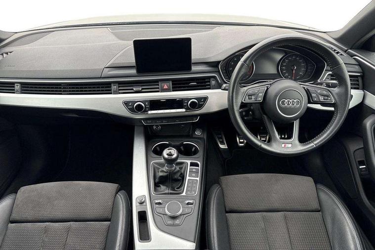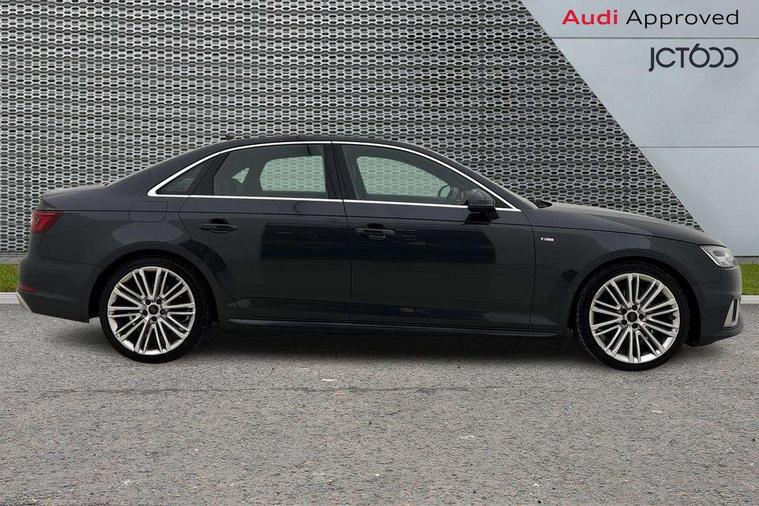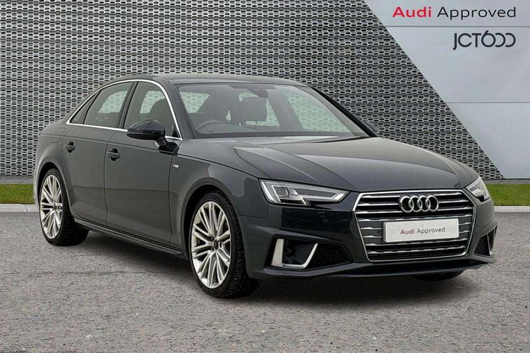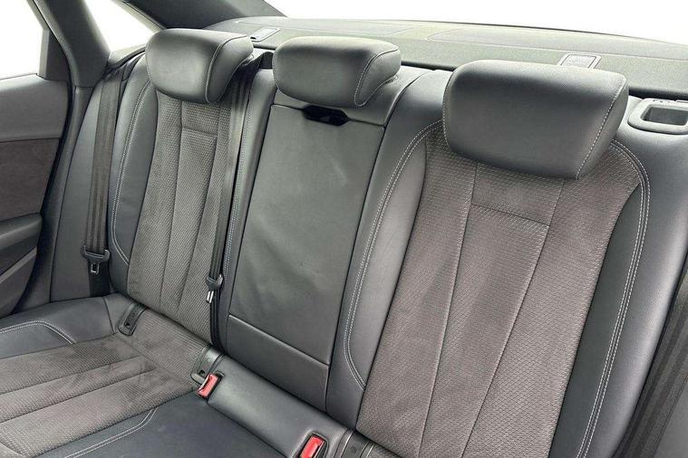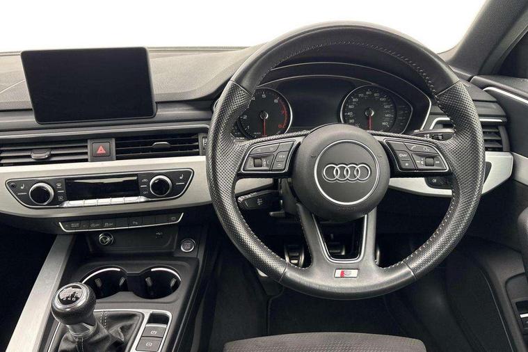 7" Colour driver information system, Audi connect safety and service (e-call), Audi drive select, Audi parking system plus with front and rear sensors, Audi Pre sense collision avoidance, Bluetooth interface, Electric boot release, Electromechanical power steering, MMI SD card Navigation, Service interval indicator, Stop/start button, Voice control system, 54 litre fuel tank, 2 USB interfaces and Aux-In jack, DAB digital radio module, Acoustic windscreen, Air inlets in titan black with two horizontal inlays in chrome, Aluminium window trim, Auto dimming rear view mirror, Automatic headlights + automatic windscreen wipers, Black grained rear grille, Body colour bumpers, Body colour door handles, Body colour door mirrors, Chrome rolled exhaust, Chrome tailpipe finisher, Electric front windows, Electric rear windows, Headlight range control, High beam assistant, High gloss black triangular aperture at rear door, LED daytime running lights, LED indicators in door mirrors, Rain and light sensors, Rear diffuser in Twilight grey matt, S Line badges on the front wings, S line front and rear bumpers with side skirts, Twilight grey matt radiator grille with chrome inlay, 3 zone climate control, 4 way electric lumbar support for driver and front passenger, 40/20/40 split folding rear seats with rear centre armrest, Black cloth headlining, Contrast stitching on seats, steering wheel and gear lever gaiter, Front centre armrest, Front headrests, Front/rear floor mats, Height and reach adjustable steering wheel with full size airbag, Illuminated door sill finishers, Isofix child seat preparation for front passenger/outer rear seats inc passenger airbag deactivation, Jack and tool kit, Luggage compartment carpet, Perforated leather gearknob, Rear headrests, Stainless steel foot rest, Stainless steel pedals, Sunvisors with vanity mirrors, Top tether anchor plate for isofix child seat, Non Smokers pack, S line exterior styling pack - A4 Saloon, 3 point seatbelts on all rear seats, Adaptive driver and front passenger airbags, Electromechanical parking brake, Electronic stabilisation control including ABS, ASR and EDL, Front head airbags, Front seatbelt pretensioners + load limiters, Front side airbags, Multi-Collision braking, Pop-up bonnet for pedestrian protection, Seatbelt warning, Traction control, Tyre pressure warning, Variable restraint system, Warning triangle and first aid kit, Anti theft alarm, Keyless Start, Locking wheel bolts, Remote central locking, Thatcham category 1 alarm + immobiliser, MMI radio plus with smartphone interface, Tyre repair kit,