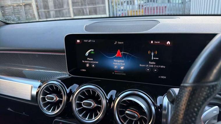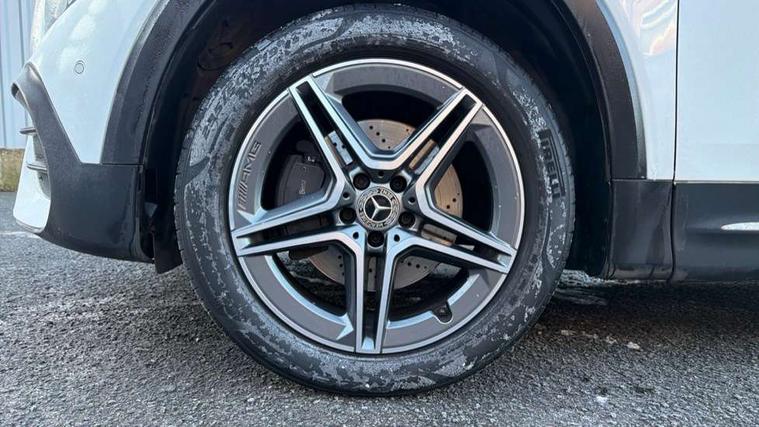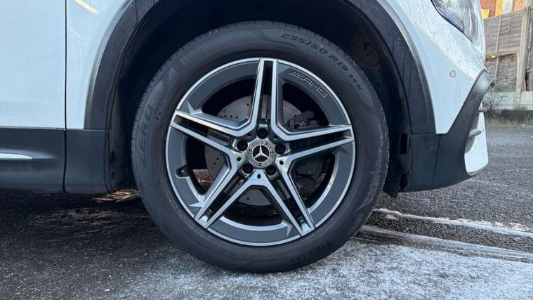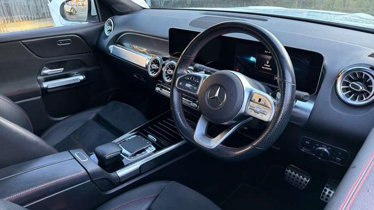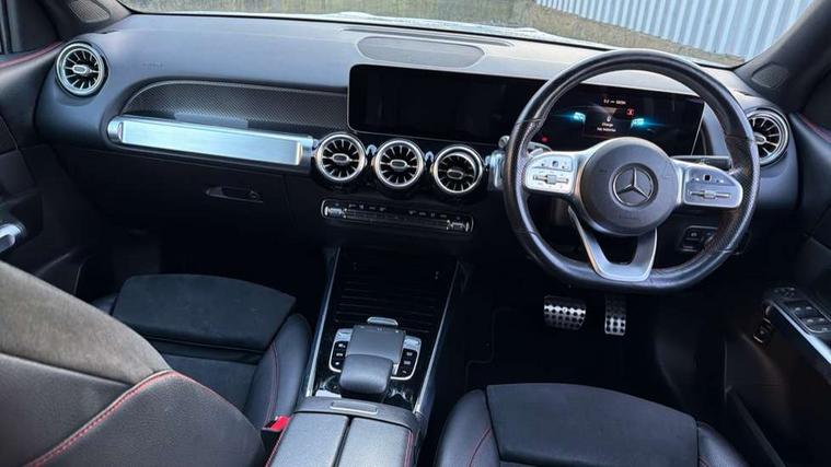 10.25" Digital instrument cluster display screen, 10.25" Digital media screen display, Active lane keeping assist, Attention assist - Monitors steering behaviour and long journey fatigue, Brake pad wear indicator warning light, Cruise control with limiter, DYNAMIC SELECT with a choice of driving modes (ECO, Comfort, Sport, Sport+ and Individual), Easy-pack tailgate, ECO start/stop function, Fluid level warning indicator for fuel, oil, coolant and washer fluid, Hard disk navigation, Hey Mercedes Voice activation, Lamp failure indicator, Mercedes me connect including emergency call system, accident recovery, breakdown and maintenance management, Outside temperature gauge, Owners manual and service booklet in English, Parameter steering system, Pre-installation for Vehicle Monitoring, Pre-installation for Vehicle set up, Pre-installation of private car share, Radio aerial integrated into front and rear windshields, Service indicator (ASSYST), Smartphone integration with Apple CarPlay and Android auto, Speed limit assist, Trip computer in multifunction display with current consumption indicator, Wireless charging, 23.8 litre AdBlue fuel tank, 52 litre fuel tank, Comfort suspension, Rear axle multi-link, DAB digital radio tuner, MBUX multimedia system with DAB digital radio and touchpad including satellite navigation, Mercedes Benz advanced sound system (225 W) with 10 speakers, 1 central speaker, speakers on doors, a tweeter on door, one sub woofer + boost amplifier, Pre installation for Mercedes Benz Link, USB (type C) port in front stowage compartment, USB (type C) ports (2) in stowage compartment, Adaptive brake lights, Aerial for GPS, AMG bodystyling door panels black grained with chrome plated inserts, AMG bodystyling front apron with chrome splitter, AMG bodystyling rear apron with diffuser optics and chrome trim element, AMG specific front and rear bumper including underride guard in high gloss chrome, Beltline strips and weather strip in chrome, Body coloured door handles, Body coloured door mirror caps, Electric adjustable and heated door mirrors with integrated LED side indicators, Exhaust system with dual flow exhaust pipes (non-functional), Front and rear electric windows, Headlamp assist automatic headlamp activation, Heated glass rear windscreen + timer control, High level LED third brake light, LED high performance headlamps with integrated LED daytime running lights, LED tail lamp, Polished aluminium roof rails, Pre-installation for trailer coupling, Privacy glass with dark tinting on rear side windows and rear window, Radiator grille with pins in chrome and single louvre with chrome insert, Rain sensor windscreen wipers, Rear fog lamp, Two visible tailpipe trim elements exhaust, 3 spoke multifunction sport steering wheel in nappa leather, Air conditioning - Two zone thermotronic luxury automatic climate control with display, AMG sports pedals with brushed stainless steel surfaces and black rubber studs, Artico man-made leather/Microfibre Dinamica upholstery with red contrast stitching, Automatic child seat recognition sensor, Black roof lining, Floor mats with stitched AMG lettering, Freight packaging without tie-down hooks, Front centre armrest with stowage, Front door sills with illuminated Mercedes lettering, Front passenger grab handle with brushed side silver chrome, Front sports seats with adjustable head restraints, Galvanished gear shift paddles on steering wheel, Heated front seats, Height/reach adjustable steering column, Interior lighting - 64 colour Ambient lighting, Luggage net on driver/front passenger seat backrest, Net in front passenger footwell, Rear armrest with two integral cup holders for drinks, Spectacles compartment for driver, Stowage compartment in centre console, Stowage compartment with retractable cover, Third row of seats for two people on rear seat, Third row of seats with isofix and top tether child seat fixing points, Touchpad on center console, Twin front cup holders, Two outer rear seat isofix and top tether child seat fixing points, Interior lighting with light and sight pack - GLB, Keyless Go comfort pack - GLB, Mirror pack - GLB, Parking pack - GLB, Seat comfort pack - GLB, 3 rear 3 point seatbelts, Active bonnet pedestrain safety measure which detects an impact and raises bonnet by 65mm, Active brake assist includes forward collision warning system with autonomous braking, Adaptive brake assist with hold function and hill start assist, Airbags - kneebag for driver, Anti-lock braking system (ABS) with brake assist, Childproof locks manually operated for rear doors and electrically operated for rear power windows, Crash responsive emergency lighting, Driver and front passenger head and sidebags, Driver and front passenger windowbags, Dual stage driver and front passenger airbags, Electronic parking brake, Electronic stability programme with acceleration skid control, ESP curve dynamic assist, Front and rear seatbelt reminder, Front brake callipers with Mercedes Benz lettering, Front passenger seat occupancy sensor, Tyre pressure monitoring system, Warning triangle and first aid kit, Alarm system with immobiliser and interior protection -Thatcham category 1, Remote central locking and crash sensor with emergency opening function, Vehicle key with decorative surround in chrome, Black air vents with chrome surround, Carbon structure trim, 19" AMG 5 twin spoke alloy wheels painted tremolite grey with high sheen finish, Summer tyres, Tirefit tyre sealant kit,
