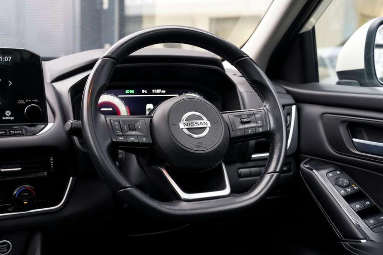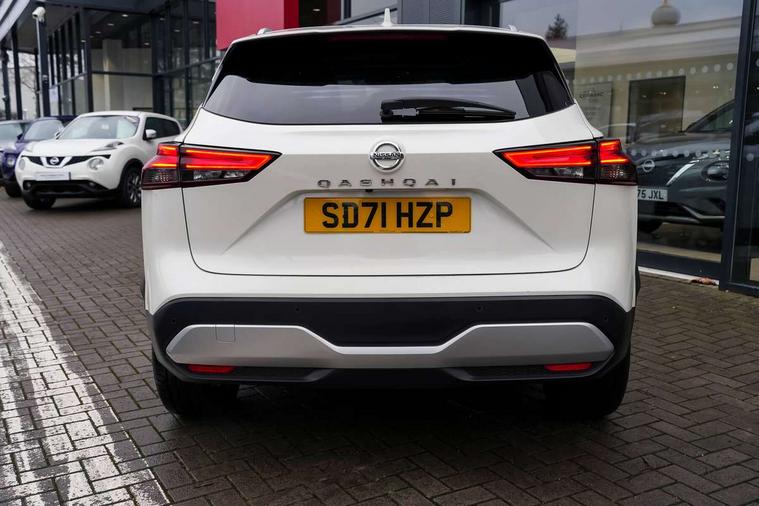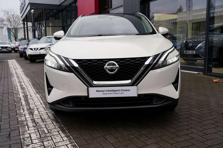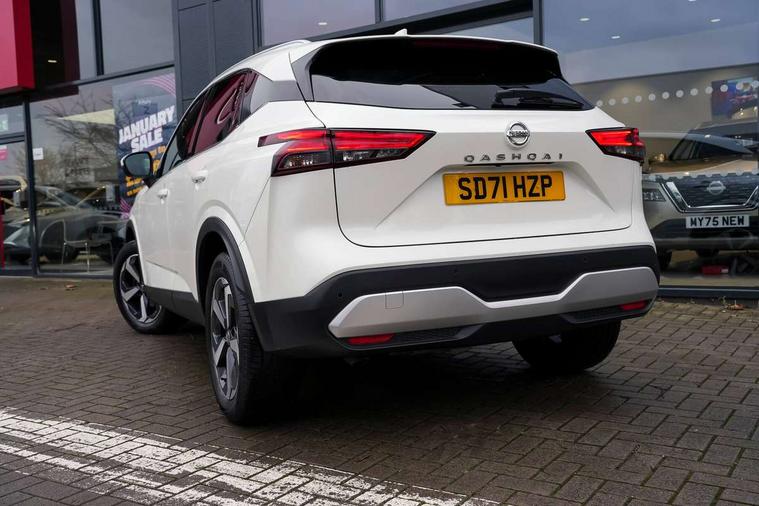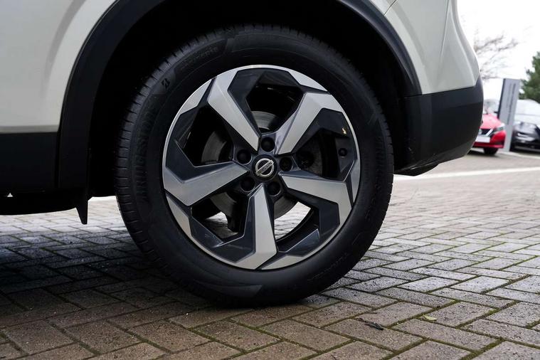 7" High definition full colour TFT screen combimeter, Blind spot warning, Drive modes (sport, normal, eco), Electric speed sensitive power steering, Emergency and breakdown call, Front and rear parking sensors, Idle stop/start system, Intelligent Cruise control (ICC), Intelligent driver alert system, Intelligent forward collision warning, Intelligent lane intervention, Lane departure prevention, Lane departure warning system, Maximum speed limiter, Moving object detection, Push button starter, Rear cross traffic alert, Traffic sign recognition with legal speed adjustment, Trip computer, 6 speakers, AM/FM audio system with DAB, Bluetooth audio streaming, Front USB connections (Type-A and Type-C), Rear USB charging only ports (Type-A and Type-C), Auto dimming rear view mirror, Auto rear wiper when reversing, Body colour mirror caps, Body coloured door handles, Bodyside mouldings, Chrome side window finisher, Electric auto folding door mirrors, Electrically adjustable and heated door mirrors with LED turn indicator, Follow me home headlights, High beam assist, Intelligent auto headlights, LED daytime running lights, LED Headlights, LED rear lights, One touch front and rear electric windows with remote opening and closing, Partially body coloured bumpers, Privacy glass, Rear reversing light (bulb lighting), Rear roof spoiler, Rear styling plate, Shark fin antenna, Splash free rain sensing wipers, Super UV and infrared cut glass, Three blink turn signal, 12v power socket in dashboard and luggage, 2 way electrical driver lumbar adjustment, 2x Rear coat hooks, 3 rear headrests, 4 grab handles, 6 Luggage hooks - 4 on floor, 2 on side, 60/40 split folding rear seat, Ambient lighting around centre console, Centre console storage tray, Chrome interior door handles, Cloth monoform upholstery, Driver and front passenger sunvisors with illuminated vanity mirrors, Driver seat back pocket, Dual zone automatic climate control with pollen filter, Front centre console and armrest, Front cupholder, Front door with bottle holders, Glovebox with light, Hard trunk cover, Height adjustable driver's seat, Height adjustable front headrests, Leather shift knob, Leather steering wheel, Luggage board system, Luggage space lighting, Manually adjustable passenger (slide recline + lifter), Multifunction steering wheel, Passenger seat back pocket, Rear armrest with 2 cupholders, Rear door bottle holders, Soft PVC kneepad, Steering wheel switches, Sunglasses holder, Tilt/telescopic adjustable steering wheel, Two rear isofix child seat anchorage points with top tether, Welcome light and console tray ambient lighting, Connectivity Pack - Qashqai, 3x3 point rear seatbelt pretensioners + load limiters, ABS, ESP, EBD and brake assist, Active brake limited slip, Auto hold function, Child locks on rear doors, Curtain and front side, far side airbags, Driver and passenger airbags, Driver, passenger and 2nd row rear seat belt reminder, Electronic parking brake, Front seatbelt pretensioners + load limiters, Height adjustable front seatbelts, Hill start assist, Intelligent blind spot intervention, Intelligent front emergency braking with pedestrian, cyclist recognition and junction assist, Intelligent rear automatic braking, Tyre pressure monitoring system, Vehicle dynamic control, Capless fuel filler, Engine immobiliser, Nissan i-key, Remote central door locking with deadlocking, Thatcham Cat.1 alarm, 18" Diamond cut alloy wheels,