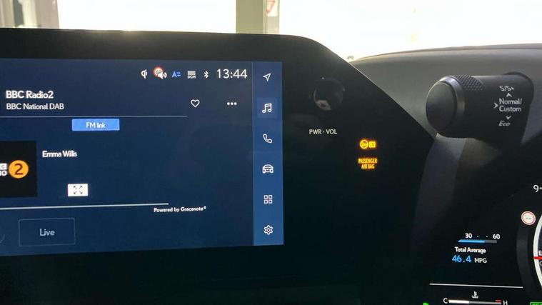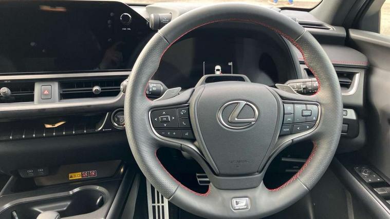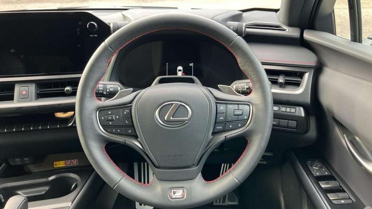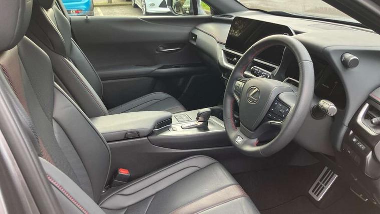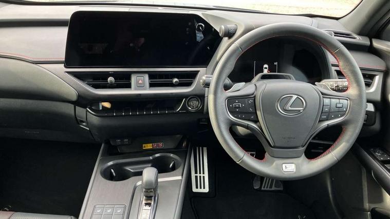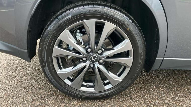 5 Driving modes EV/Normal/Eco/Sport/Sport+, Analogue clock with GPS function, Apple car play/Android Auto, Blind spot monitoring (BSM) with Rear cross traffic alert and auto brake (RCTAB), Bluetooth mobile connectivity, Driver monitoring system, E-call, Electric power steering (EPS) with speed sensitive features, Emergency steering assist, F SPORT exclusive digital speedometer, Front and rear parking sensor with intelligent clearance sonar, Front and rear smart entry, Front bicyclist detection, Front motorcycle rider detection daytime, Front pedestrian detection, Fully digital 12.3" combimeter, multi-information display, Functional module switch for driver seat, Handsfree power back door, Intersection turn assist, Lane change flasher function, Lexus link pro with 12.3" Touchscreen, embedded navigation, LSS+3 includes dynamic radar cruise control, pre collision system, lane departure alert, emergency driving stop, proactive driving assist and OTA, Parking assist monitor with on-screen guard, Pre-crash system, Predictive efficiency drive, Push button start, Remote touch interface, Reversing camera, Road sign assist, Tailgate electric lift and close, Tailgate height memory function, Traffic sign recognition, Trip computer, Wireless apple C smartphone integration, Wireless Smartphone charger, Adaptive variable suspension with rear performance dampers, Coil spring suspension front and rear, Vehicle Dynamics Integrated Management (VDIM), Vehicle Stability Control (VSC), 10 speakers premium audio system, 2 front USB C and 2 rear USB C charging points, AM/FM and DAB radio, AUX socket with VTR compatibility, Steering wheel mounted audio controls, 3 flash lane change indciators, 750kg towing capacity, Acoustic windscreen, Active brake lights, Aero stabilising arch mouldings, Aero stabilising rear lights, Aero ventilated wheels, Auto dimming interior rear view mirror, Auto headlights, Automatic flashing hazard rear headlights (FHL) and safe exit assist (SEA), Bi-LED (low and high beam) headlights with Auto High Beam (AHB), Black and body-coloured outer mirror cover, Body adhesive, laser screw welding and laser brazed roof structure, Body colour roof drip mouldings, Body coloured door handles, Body coloured roof spoiler, Chrome door belt moulding, Chrome moulding side windows frame, Door outside handle puddle lamp, Electro chromic, heated, auto folding door mirrors with reverse tilt function, F mesh signature grille, F SPORT badge front wings, F SPORT exterior styling, F Sport front bumper jet black bumper and grille garnish, F Sport rear bumper, F SPORT stainless steel scuff plates with LEXUS, Follow me home lights, Front and rear one touch power windows, with anti-jam protection, Front and rear performance rod, Halogen front indicator lights, Landing shibo door mirrors, LED cornering headlights, LED daytime running lights, LED front fog lights, LED rear combination tail lights, LED rear fog light, LED third brake light, Lexus chrome plated rear badge, Light green UV reduction windows, Paint protection film, Privacy glass, rear doors and tailgate, Rain sensor windscreen wipers, Rear side wing doors, Rear wiper, Resin rear scuff plates, Shark fin roof aerial, Silver roof rails, Single hidden exhaust pipe, Towing preparation, Variable front intermittent wipers, Water repellent glass front side glass, Wiper blade, 12V accessory port centre console and luggage compartment, 2 cup holders in the front and rear centre console, 2 way manually adjustable rear headrests, 2 x folding shopping bag hooks in boot, 2 x sun visors with vanity mirror and lamp, 3 seat bench in 2nd row, 3 spoke perforated leather trimmed steering wheel with paddle shift, 4 way manually adjustable front headrest, 4 x tie down hooks in the boot, 60/40 split folding rear seat, 8-way electrically adjustable front seats with 2-way power lumbar support, Active sound control, Ambient illumination front centre console, Automatic air recirculation control, Black roof lining, Card holder installed in driver and passengers sun visors, Centre armrest with storage, Driver and passenger door pocket, Driver side machined aluminium footrest, Dual zone electronic climate control + Nano-E humidity sensor, F SPORT logo embossed on front headrests, F SPORT seats, Glovebox, Heated front seats, Heated steering wheel, i-Size attachment outer rear seats, Illuminated entry system, Integral knee pads for front centre console, LED boot light, LED Door courtesy lights, LED glove box light, LED interior illumination, Luggage cover manually folding, Machined aluminium sports pedals, Map pockets in the rear of passenger's front seat, Perforated leather gearshift, Rear air vents with 2 USB chargers, Rear center armrest, Remote climate control, S-Flow technology for climate control, Single front passenger seat, Smooth leather F sport upholstery, Storage tray under audio panel, Tahara door panel finish, Tahara meter hood, Textile carpet mats, Tilt/telescopic adjustable electric steering wheel, Touch Screen Cloth, Under deck storage, Under desk side storage, 2 x Isofix child rear seat restraints, 3x3 point rear seatbelts, Acoustic vehicle alerting system, Anti-lock braking system (ABS), BAS (Brake Assist System), Driver and front passenger 2 stage airbag, Driver and front passenger knee airbag, Driver/front passenger side airbags, EBD - Electronic brakeforce distribution, ECB (Electronically Controlled Brake System), Electric child locks, Electric parking brake, Front adjustable seatbelt anchor points, Front and rear curtain shield airbags, Front outer seatbelt+pre-tensioners, force limiter+tension reduction: 3-point with active safety link to PCS, Front wheel brake 16.5 inch discs, Hill start assist control (HAC), Passenger airbag cut-off device, Rear outer seatbelt+pre-tensioners, force limiter+tension reduction: 3-point with active safety link to PCS, Centre belt w/o pre tensioner+force limiter, Rear wheel brake - 16inch discs, Secondary Collision Brake (SCB), TRC 