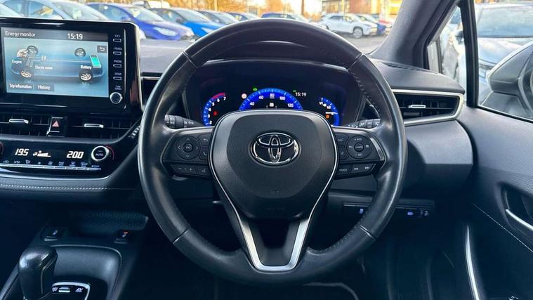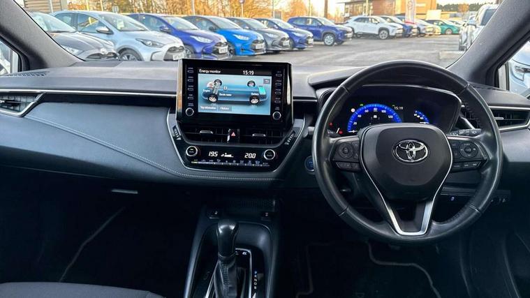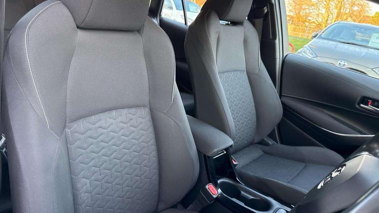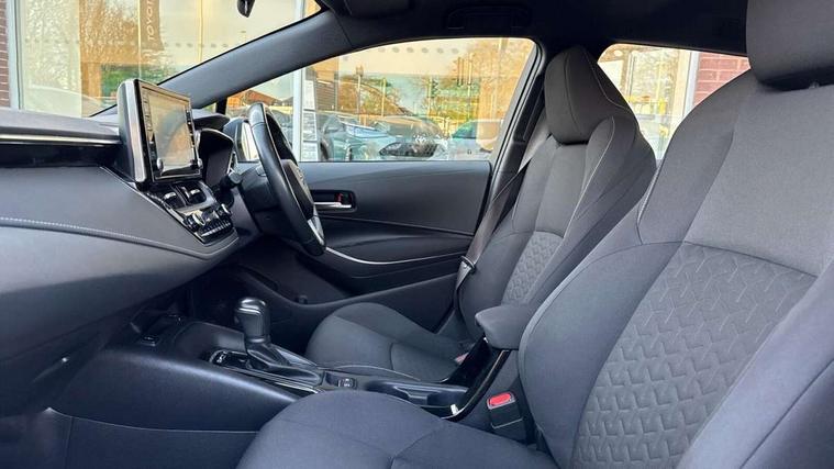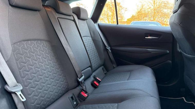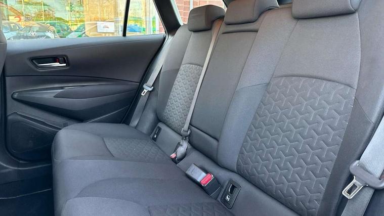 7" Multi information display screen, Bluetooth telephone connectivity, Connected car functionality upgrade, tracker, remote status and e-care, Dynamic radar cruise control (with RSA) including switch on steering wheel, E-call, Electrically assisted power steering, EV drive indicator, Lane Departure Alert (LDA) switch on steering wheel, Memory on adjustable speed limiter, Push button start, Reversing camera, Smartphone integration with Apple CarPlay and Android auto, Gasoline particulate filter, Vehicle Stability Control (VSC), 6 speakers, 8" Touchscreen with MM19 Multimedia system and voice recognition, AM/FM radio, DAB Digital radio, USB and Aux in connectors + 12V front outlet, USB charging port in centre storage box, Aluminium roof rails, Anti-jam protection on power windows, Auto up and down function on all power windows, Automatic headlights with high beam assist, Black metallic surround on lower front grille, Black toyota logo in front, Body colour rear spoiler, Body coloured bumpers, Body coloured door mirrors, Body coloured outside door handles, Follow me home headlights, LED daytime running lights, LED front fog lights, LED Headlights, LED High mounted stop light, Manual day/night rear view mirror, Noise reduction layer on front windows, Power adjustable heated door mirrors, Power front windows, Power rear windows, Rain sensor, Rear side wing doors, Rear window defogger, Rear window wiper, Shark fin antenna, Time adjustment on intermittent wiper, Turning signal integrated indicators in door mirrors, Unique lower skirt, Unique side rocker with black insert, UV-filter on driver and passenger windows, 12v power outlet - luggage side, 3 rear headrests, 3 seat bench in 2nd row, 3 spoke leather steering wheel + gear knob, 60/40 split folding rear seat, Adjustable speed limiter switch on steering wheel, Audio, multimedia and telephone switches on steering wheel, Boot light, Boot underfloor storage, Clean air filter, Driver and front passenger personal light, Driver and passenger assist grip, Driver and passenger sun visor with mirror and light, Dual sided deck board in boot, Dual zone automatic air conditioning with ECO mode switch, Fabric armrests, Front and rear cup and bottle holders, Front and rear door pockets, Front head restraints, Front passenger seat, Heated driver and front passenger seats, Illuminated entry system in room lamp, ISOFIX seat fixing (2 fixings on rear outer seats), Leather gear shift with satin chrome on gear shift console, Manual height adjustable for driver and front passenger seat, Passenger seat back pocket, Pollen filter, Power adjustable lumbar support on driver seat, Power window switches with satin chrome inserts, Quilted fabric upholstery with grey stitches seats, Rear armrest with 2 cupholders, Rear passenger air vents, Rear passenger coat hooks (2), Rear passenger personal lights, Retractable tonneau cover with luggage partition net, Satin chrome inside door handles, Shopping bag hooks in luggage compartment, Side storage in boot, Sliding armrest on centre console box, Slow opening glovebox with lights, Tilt/telescopic steering column, Tonneau cover with under floor storage, Voice recognition switch on steering wheel, Whiplash Injury Lessening (WIL) feature (active headrest) for seats, Toyota safety sense 2 pack - Corolla, 3x3 point rear seatbelts, Adjustable driver and front passenger seat belt extender to top anchor point, Anti lock braking system + Electronic brake force distribution, Brake assist function, Child locks on rear doors, Downhill Assist Control (DAC), Electronic parking brake, Emergency brake light signal (EBS), Front passenger airbag on/off switch, Front seatbelt reminder, HAC - Hill start assist control, Rear seat belt reminder, Seatbelt pretensioners and force limiters, Supplemental restraint system (SRS) 7 airbags - dual driver, dual side curtain, side impact and driver knee airbags, Traction control, Tyre pressure warning system, Acoustic vehicle alert system (AVAS), Alarm with motion sensor and immobilizer, Remote central locking + deadlocks, Satin chrome dash trim, Soft touch texture on upper dashboard, Stitching on lower dashboard, Space saver spare wheel, Unique wheel finish with red wheel cap,