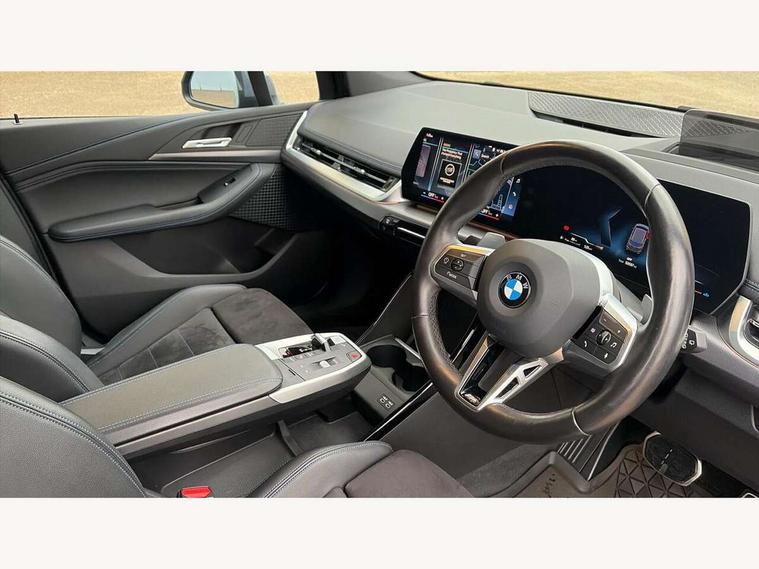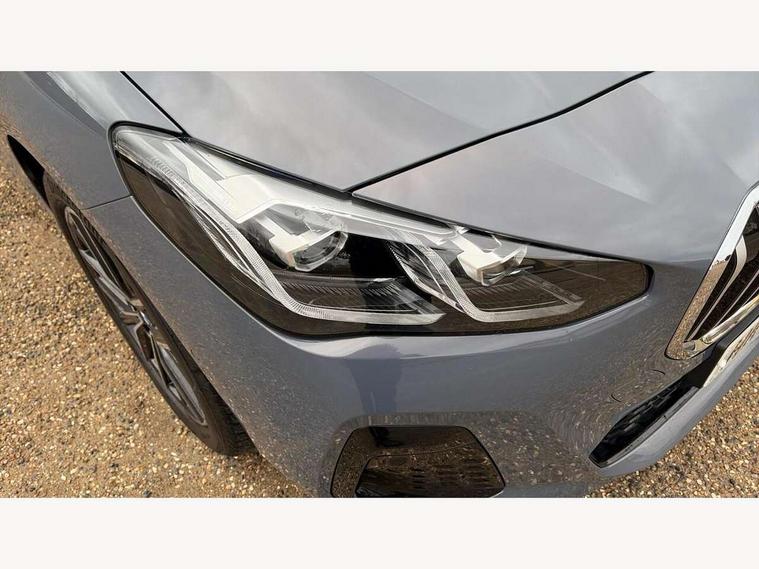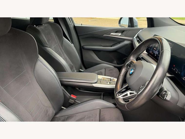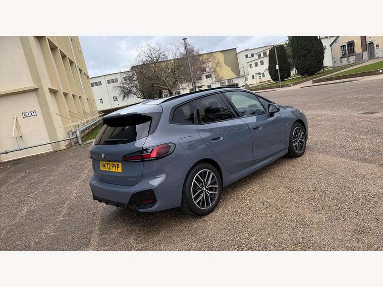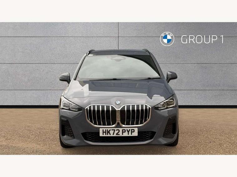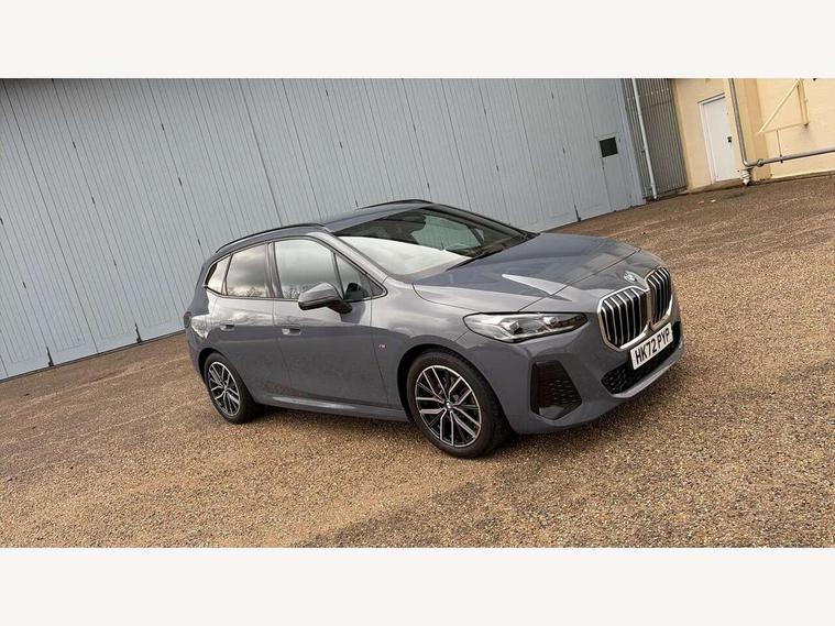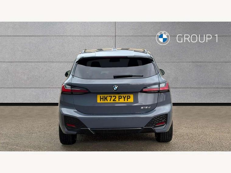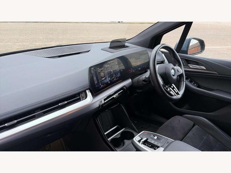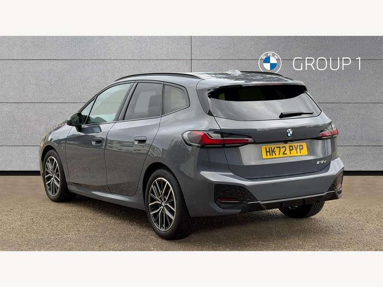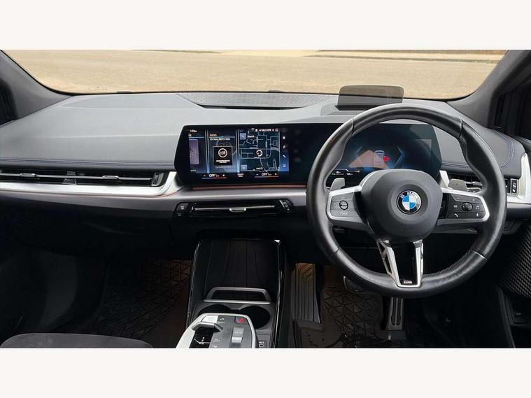 Active Guard incl speed limiting and lane departure functions with auto steering, and front collision warning with brake intervention, Automatic powered tailgate, Automatic start/stop function, BMW Online services, BMW Teleservices, Brake pad wear indicator in front and rear, Condition based service, Drive off assistant, Flat air vents on instrument panel in high gloss black, adjustable slats with elements in pearl chrome, iDrive controller, Language version English, On board computer - average speed+fuel consumption, service interval, clock/date, odometer/trip meter, outside temperature display and ice warning, Parking assistant with active park distance control, reversing assistant, lateral parking aid and rear view camera, Servotronic variable electric power steering (EPS), Smartphone integration, Widescreen display, Diesel particulate filter, Diesel with SCR emission control system, Drive performance control with ECO PRO comfort + sport mode, Gear selector switch with toggle operation, M Adaptive suspension, Steptronic sport transmission with double clutch and gear shift paddles, 2x USB Type C ports in front centre console for charging and data transfer, 2x USB Type C ports in rear centre console for charging, DAB Digital radio, Welcome sound upon opening of the front driver or passenger door, Air inlet middle part on front apron in lines specific design with trim strip in satinised aluminium, Automatic headlights, BMW emblem, engine compartment lid and tailgate, Body colour roof mouldings, Body coloured door mirror caps, Contoured rear roof spoiler in vehicle colour with side aeroblades in black high-gloss, Driver side exterior mirror lighting with BMW logo projection, Dynamic brake lights, Electric adjustable heated door mirrors, Electric windows - front and rear, with open/close fingertip control, anti-trap facility and comfort closing, Folding door handles integrated flush with surface, Front and rear windscreen wipers with heated front washer nozzles, Front bumper cover with independent design in body colour with inserts in black high gloss, Front bumper design elements in satinised aluminium, Front door exit lights, Front door sill finishers aluminium inserts with M inscription, Front entry sills with aluminium inserts + BMW inscription, Front oramental grille with radiator grille bars in satinised aluminium, Heated rear window, Hidden exhaust pipe, High gloss shadow line, High gloss shadowline roof rails, Key with M identification, LED Daytime running lights and parking lights with turn indicators, LED number plate light, LED third brake light in rear spoiler, M identification on sides, Manual headlight range control, Model inscription on right tailgate, Rain sensor, Rear bumper cover with independent design in body colour with inserts in black high gloss, Rear bumper trim strip in satinised aluminium, Rear side wing doors, Shark fin antenna, Side sill covers with independent design in Body colour, Trailer stabilisation logic, Trims on front and rear bumper covers colour-coordinated with side window graphic, Visible VIN plate, Welcome lighting, Windscreen washer nozzle for rear view camera, 12V power socket in luggage compartment and front centre console, 12V socket in right side trim panel, 2 bag hooks in luggage compartment, 2 front reading lights, 2 open cup holders in front centre console, 3 seat bench in 2nd row, 40:20:40 split folding rear seat backrests, Ambient lighting front and rear, Automatic two zone climate control air conditioning, Bottle trays in all doors, Child seat ISOFIX attachment for two outer rear seats and front passenger seat with anchorage points, Driver and front passenger sports seats, Four grab handles integrated in roof lining, Front and rear door pockets, Front and rear footwell lighting, Front and rear side armrest integrated into door trim, Front centre console storage compartment, Front head restraints, Glovebox with light, Heated front seats, Height adjustable 3 rear head restraints, Interior door handle recess light on all doors, Luggage compartment lighting, M Anthracite headlining, M specific floor mats, M sport leather steering wheel, Map pockets, Mechanical rear seats with fore/aft adjustment, Multi-function controls for steering wheel, One piece parcel shelf opens together with tailgate and removable, Rear cloth hooks, Single front passenger seat, Sliding rear seat bench, Stainless steel pedals, Steering wheel column manual adjustment, Storage compartment lighting in centre console and storage tray in centre stack, Storage compartment net in left side trim panel, Storage compartment with folding cover under centre console armrest cushion, Storage tray in right side trim panel, Sunvisors with illuminated vanity mirrors, Three spoke sport leather steering wheel, Connected pack professional - 2 Series Active Tourer, Technology pack - 2 Series Active Tourer - MY22, 3 point seatbelts on all seats, front pyrotechnic belt tensioners, stopper and belt force limiters, rear coded belt buckles, Airbag - Front driver and passenger, front and rear head, front side, curtain head protection, manual deactivation of front passenger airbag possible, Anti lock braking system (ABS) with brake assist, Automatic hold function, BMW emergency call, Brake drying, Braking readiness, Child proof locking system in rear door, Cornering brake control, Crash Sensor - activates hazard/interior lighting + unlocks doors, DSC - Dynamic Stability Control, Dynamic brake control, Dynamic Traction Control - DTC, Electromechanical parking brake, Energy recovery system, Front disc brakes, Integrated braking system, PC iBrake PostCrash approach control warning with light braking function, Rear disc brakes, Tyre pressure monitoring system, Warning triangle and first aid kit, Anti theft alarm system, Closing system with central locking, Engine immobiliser, Locking wheel bolts, Front centre console trim in high gloss black with my mode expressive, Reduced rolling resistance tyres,