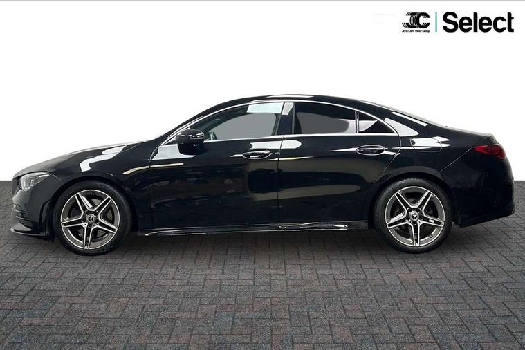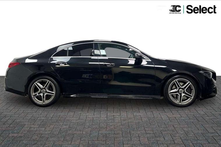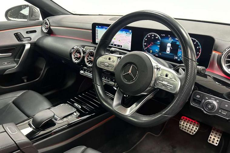 10.25 inch Instrument display with digital cockpit, 10.25 inch touchscreen central media display, Attention assist - Monitors steering behaviour and long journey fatigue, Dual bluetooth interfaces, DYNAMIC SELECT with a choice of driving modes (ECO, Comfort, Sport, Sport+ and Individual), ECO start/stop function, Fluid level warning indicator for fuel, oil, coolant and washer fluid, Hard-disk navigation, Hey Mercedes Voice activation, Lamp failure indicator, MBUX augmented reality for navigation, Mercedes me connect including emergency call system, accident recovery, breakdown and maintenance management, Outside temperature gauge, Owners manual and service booklet in English, Pre-installation for Vehicle Monitoring, Pre-installation for Vehicle Setup, Pre-installation of private car share, Preinstallation for Mercedes Benz link, Radio aerial integrated into front and rear windshields, Service indicator (ASSYST), Smartphone integration with Apple CarPlay and Android auto, Traffic sign assist, Trip computer in multifunction display with current consumption indicator, Wireless charging, 7G-DCT 7 speed automatic transmission, Lowered comfort suspension, Rear axle multi-link, Sporty engine sound system, DAB digital radio tuner, MBUX multimedia system with DAB digital radio and touchpad including satellite navigation, Mercedes Benz advanced sound system (225 W) with 10 speakers, 1 central speaker, speakers on doors, a tweeter on door, one sub woofer + boost amplifier, USB (type C) ports (2) in stowage compartment and 1 in front of centre console, Adaptive brake lights, AMG body styling with AMG front apron and rear apron and visible exhaust tailpipe in chrome trim elements, AMG bodystyling side skirts, Body colour bumpers, Body colour door handles, Chrome beltline strips, Chrome weather strip, Diamond radiator grille pins in chrome with silver painted louvres and chrome insert, Electric panoramic sliding sunroof, Electric windows, Electrically adjustable and heated door mirrors with integrated LED indicators, Exhaust system with 2 Visible tailpipe trim elements and rear apron with trim in chrome, Headlamp assist automatic headlamp activation, Heated glass rear windscreen + timer control, High level LED third brake light, Integrated LED daytime running lights, LED tail lamp, Multibeam LED headlamps with adaptive highbeam assist plus, Privacy glass with dark tinting on rear side windows and rear window, Rain sensing windscreen wipers with two sensitivity settings, Rear fog lamp, Vehicle Monitoring, Vehicle Setup, Window line trim strip in chrome, 3 spoke flattened bottom nappa leather multifunction steering wheel with perforated leather in grip area, 40:20:40 split folding rear seat backrests, Air conditioning - Two zone thermotronic luxury automatic climate control with display, Air vents with surround in silver chrome, Automatic child seat recognition sensor, Black roof lining, Brushed stainless steel sports pedals with rubber studs, Electrically adjustable front memory seats including lumbar support, Floor mats with stitched AMG lettering, Front centre armrest with stowage, Front seat cushion length adjustment, Galvanished gear shift paddles on steering wheel, Heated front seats, Illuminated glove compartment stowage, Illuminated Mercedes benz door sills with Mercedes Benz lettering, Interior lighting - 64 colour Ambient lighting, Luggage net on driver/front passenger seat backrest, Manually height and reach adjustable steering column, Rear armrest with two integral cup holders for drinks, Rear head restraints, Rear interior lamp, Spectacles compartment for driver, Sport seats with fixed head restraints, Stowage compartment in centre console with retractable cover, Sunvisors with illuminated vanity mirrors, Touchpad on center console, Twin front cupholders, Two outer rear seat isofix and top tether child seat fixing points, Keyless go pack - CLA, Light and sight pack - CLA, Mirror pack - CLA, Parking package - CLA, Seat comfort pack - CLA, Active bonnet pedestrain safety measure which detects an impact and raises bonnet by 65mm, Adaptive brake assist with hold function and hill start assist, Anti-lock braking system (ABS), Black seat belts, Bonnet with power domes, Brake pad wear warning indicator, Childproof locks manually operated for rear doors and electrically operated for rear power windows, Crash responsive emergency lighting, Driver and front passenger head and sidebags, Driver and front passenger windowbags, Drivers knee airbag, Dual stage driver and front passenger airbags, Electric parking brake, Electronic stability programme with acceleration skid control, ESP curve dynamic assist, Front and rear seatbelt reminder, Front brake callipers with Mercedes Benz lettering, Front passenger seat occupancy sensor, Three point rear seat belts, Tyre pressure monitoring system, Warning triangle and first aid kit, Alarm system with immobiliser and interior protection -Thatcham category 1, Remote central locking and crash sensor with emergency opening function, Light aluminium with longitudinal grain interior trim, 18" 5 twin spoke design alloy wheels painted in titanium grey with high sheen finish, Summer tyres, Tirefit tyre sealant kit,