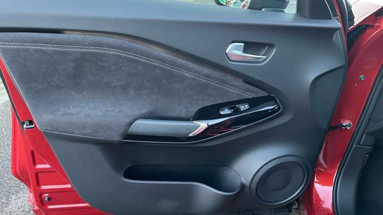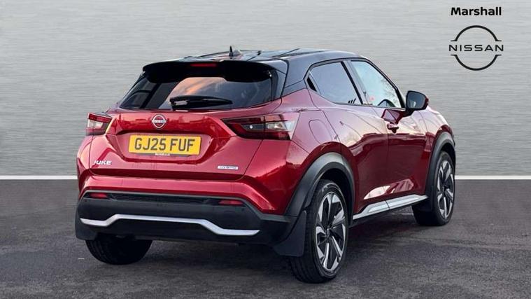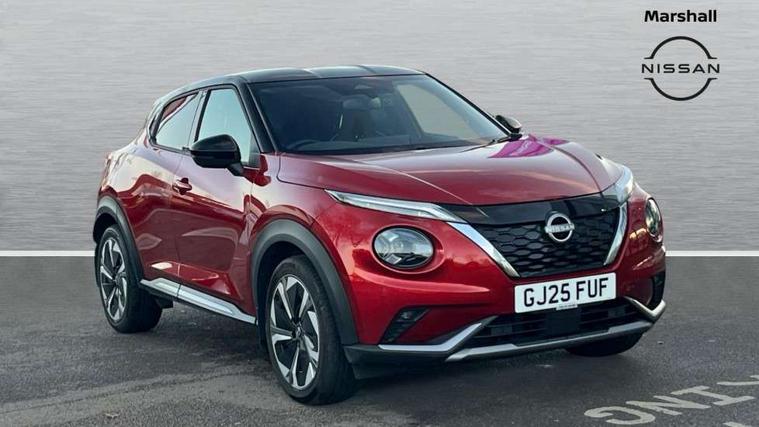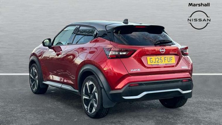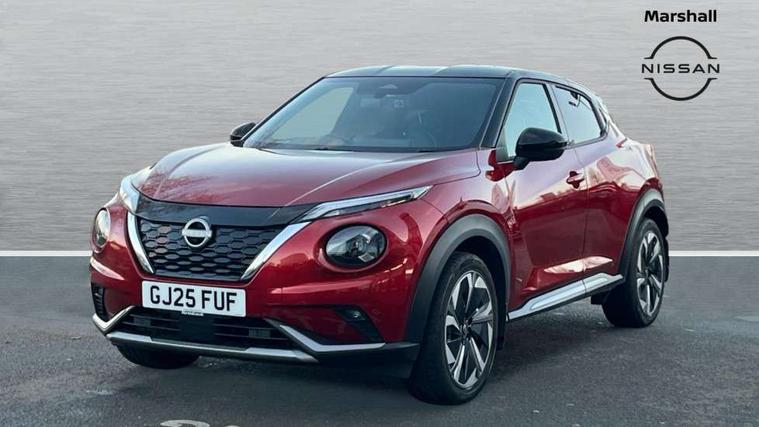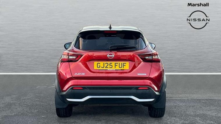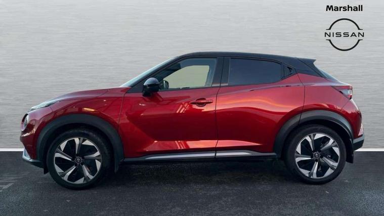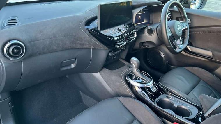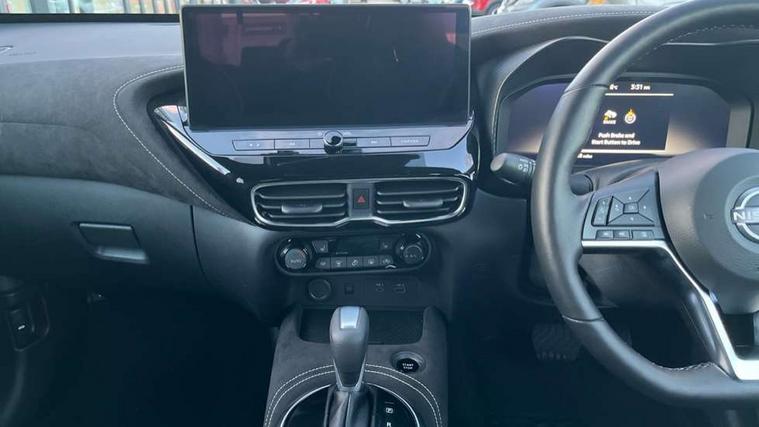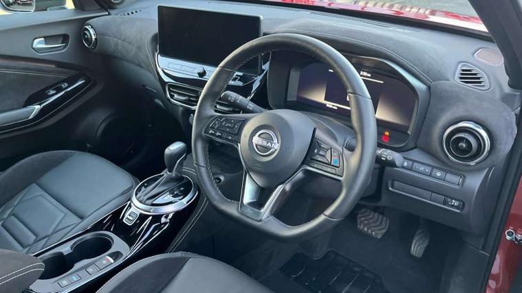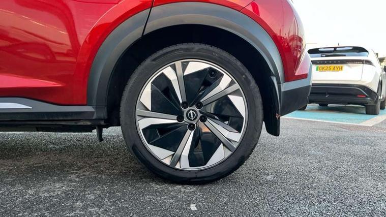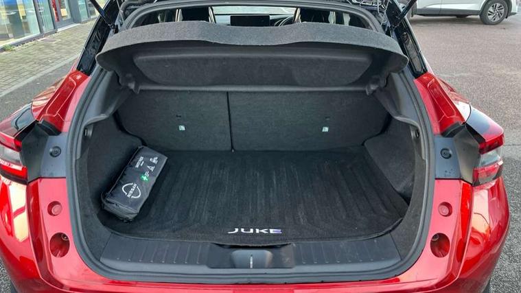 12.3" full colour TFT screen combimeter, Drive modes select (Eco, normal and sport), e-Pedal step, Emergency and breakdown call, EV mode switch, Front parking sensor, Intelligent driver alert system, Intelligent lane intervention, Lane departure warning system, Nissan connect 12.3" touch screen entertainment system, Nissan connect nav with TomTom traffic, Nissan connect services, Outside temperature sensor, Power Steering, Rear parking sensor, Stop/start button, Traffic sign recognition, Trip computer, Voice recognition, WiFi connectivity, Wireless Apple CarPlay and Google Android auto, Wireless Smartphone charger, 10 Bose speakers 8 speakers and 2 headrest speakers for driver/passenger seats, 2 X Rear console USB port, Bluetooth system, USB, Aux-in and 12V socket, Bose personal plus audio system, DAB Digital radio, Auto dimming frameless rear view mirror, Automatic hazard signal with emergency stop signal, Body colour door handles, Electrically adjustable door mirrors with integrated indicators, Follow me home headlights, Front and rear electric window with one touch driver window, High beam assist, LED 3rd brake light, LED daytime running lights, LED front fog lights, LED headlamps, LED rear fog lamp, LED rear lamps, One touch passenger window, Rear privacy glass, Rear side wing doors, Rear wiper, Roof spoiler, Shark fin roof antenna in solid Black, Solid black door mirrors, Solid black front bumper/rear bumper and side skirts inserts, Three blink turn signal, 3 height adjustable rear headrests, 3 seat bench in 2nd row, 60/40 split folding rear seat, Card holder on driver sunvisor, Door ambient lighting, Driver seat back pocket, Driver side rear coat hanger, Driver/passenger sunvisors and vanity mirrors, Front and rear cabin lights, Front armrest, Front door pockets with bottle holders, Front head restraints, Front/rear passenger grab handles, Gear console ambient circle lighting, Height adjustable driver's seat, Internal chrome door handles, Luggage board, Luggage space lighting, Monoform sporty seats, Multifunction steering wheel, Passenger seat back pocket, Rear door bottle holders, Single front passenger seat, Smooth synthetic leather steering wheel, Synthetic leather kneepad, Synthetic leather shift knob, Telescopic steering wheel adjustment, Two cupholders in front centre console, Two rear isofix child seat anchorage points with top tether, Welcome light and console tray ambient lighting, Comfort pack - Juke, Heat pack with height adjustable passenger seats - Juke, Interior personalisation pack - Juke, ProPilot pack - Juke Auto, Satin grey exterior personalisation pack - Juke, ABS with EBD and brake assist, Active ride control, Active Trace Control, Driver and passenger airbags, Driver and passenger side airbags, Electric handbrake with auto hold function, Electronic Stability Programme (ESP), Front and rear curtain airbags, Height adjustable seatbelts, Hill start assist, Intelligent emergency braking with pedestrian and cyclist recognition, Rear door child safety locks, Seatbelt reminder for driver/front passenger and rear seats, Three 3 point rear seatbelts, Traction control, Tyre pressure monitoring system, VDC Dynamic Vehicle Control, Alarm, Immobiliser, Intelligent key and start push button with walk away lock and approach unlock functions, Remote central locking, 19" Aero alloy wheels, Tyre puncture repair kit,