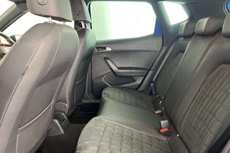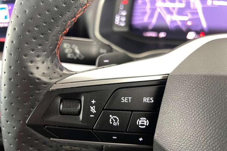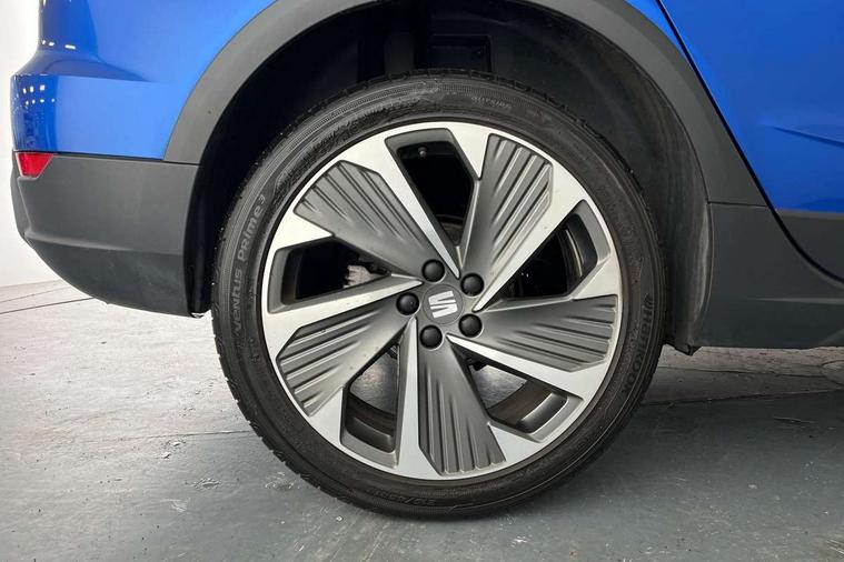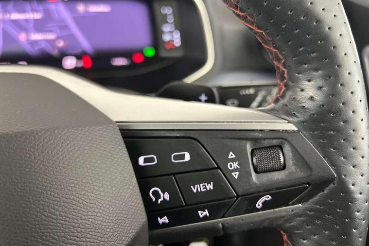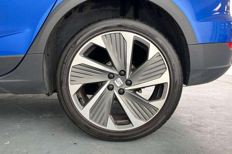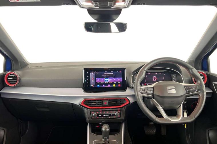 Digital cockpit, E-call, Electric speed sensitive power steering, Full Link Smartphone Integration with Mirror Link, Apple Car Play, Google Android Auto with USB Type C cable for Apple and Android compatibility, Lane keeping system, Rear parking sensor, Seat connect with safety, service, remote and online, SEAT Drive profile - Four different models normal-sport-eco-individual, steering response, throttle response and gear shifts mode, Bluetooth interface for hands free and audio streaming, DAB digital radio and AM/FM radio, Steering wheel mounted audio controls, Anti theft roof antenna, Auto dimming interior rear view mirror, Automatic activation of hazard warning lights, Body coloured bumpers, Body coloured door handle inserts, Chrome roof rails and window surrounds, Chrome window trim, Dark tinted rear windows, Electric front/rear windows, Electrically adjustable, heated and folding door mirrors, FULL LED automatic headlights with dynamic headlight range control, coming and leaving home, LED daytime running lights, LED rear tail lights and licence plate lights, Protective side mouldings, Rain sensing wipers, Rear side wing doors, Rear spoiler, Rear window wash/wipe, Roof colour door mirrors, Third brake light, Twin exhaust pipe styling hidden exhaust pipe, Visible VIN plate, Windshield wiper with intermittent control and potentiometer, 2 cupholders, 3 seat bench in 2nd row, 60/40 split folding rear seat, Aircare filter, Black interior roof, Double boot floor, Driver sunvisor with covered mirror + card holder, Dual zone climate control, Front courtesy light with 2x front and 2x rear reading lights, Front seat back storage pockets, Front sport seats, Heated front seats, Height adjustable front seats, Height/reach adjustable steering column, Illuminated boot, Interior ambient lighting, Interior light in footwell, central console and door panel, ISOFIX points in outer rear seats with top tether anchorage points, Microsuede cloth upholstery, Passenger sunvisor with vanity mirror, Perforated flat bottomed leather steering wheel/gear knob/handbrake with red stitching and FR logo, Single front passenger seat, Steering wheel mounted gearshift paddles, Two front and three rear height adjustable headrests, Connectivity pack plus - Arona, Interior chrome pack - Arona, 3 point seatbelts on all rear seats, ABS, Active front headrests, Child locks on rear doors, Driver and front passenger airbags with front passenger airbag de activation, front side and curtain airbags, Electronic stability control, Emergency Brake Assist (EBA) and front assist, Front and rear seatbelt reminder, Hill hold control, Multi-Collision braking, Tiredness recognition system, Traction control, Tyre pressure monitoring system, Alarm with back-up horn, Electronic engine immobiliser, Locking wheel bolts, Remote central locking + deadlocks, Tow away protection, Titan black dashboard, 18" Performance Cosmo grey matt alloy wheels,