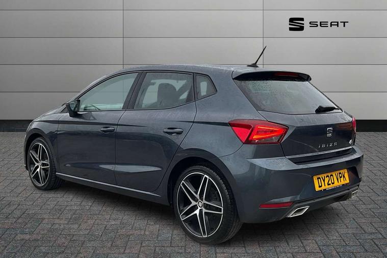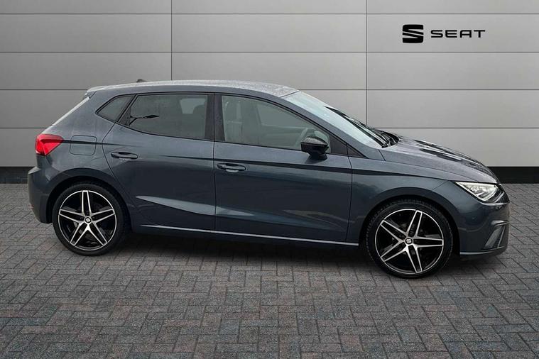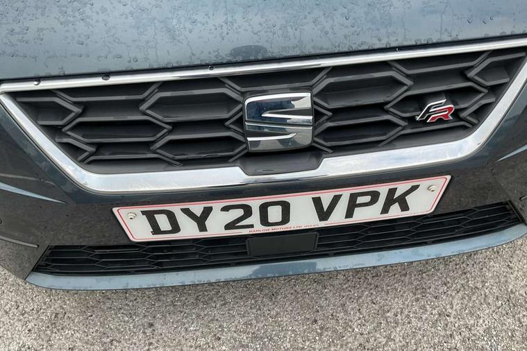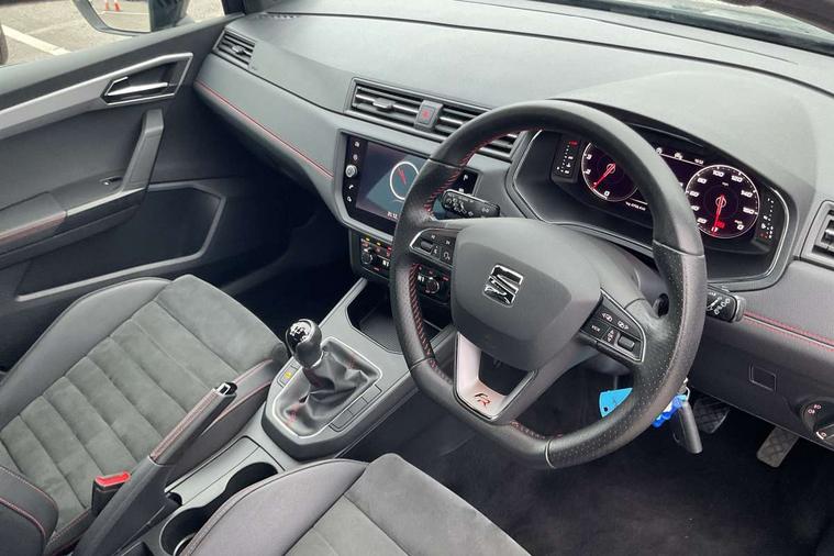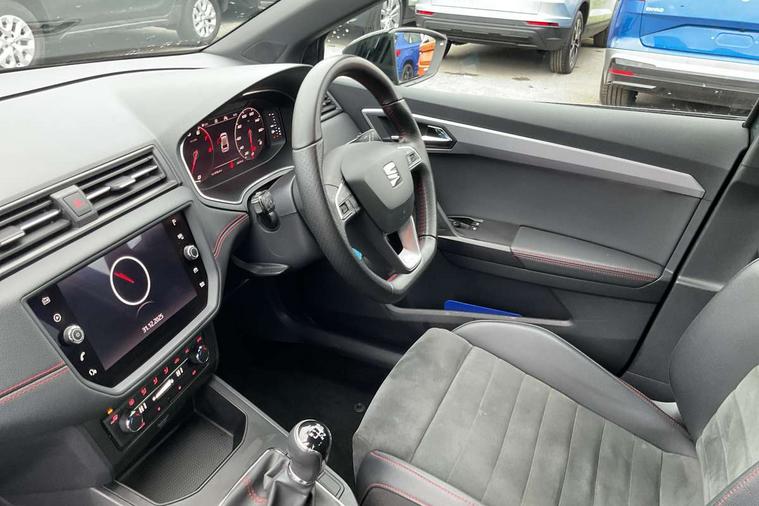 'Lights On' Reminder warning buzzer, Bluetooth Handsfree Phone Connection, Cruise control, Digital clock, Digital cockpit, Full Link Smartphone Integration with Mirror Link, Apple Car Play, Google Android Auto, Low fuel warning light, Outside temperature gauge, Power Steering, Satellite navigation system with 3D mapping, 8" touch screen, voice control and additional USB port, SEAT Drive profile, SEAT logo boot release, Trip computer, Sports suspension, 6 speakers, Auxiliary input socket, CD player, Digital Audio Broadcast (DAB) Tuner, Radio/MP3 player, SD card slot, SEAT USB media cable, Steering wheel mounted controls, USB port, Anti theft roof antenna, Auto dimming rear view mirror, Automatic headlights, Automatic rain sensing wipers, Body colour bumpers, Body colour door handles, Brilliant black door mirrors, Chrome front grille frame, Chrome grille, Coming/leaving home lighting function, Cornering front fog lights, Dark tinted rear windows, Electric folding door mirrors, Electric front windows, Electric headlight adjustment, Electrically adjustable and heated door mirrors, Exclusive FR rear bumper, Full LED headlights, LED daytime running lights, LED tail lights, Rear fog lights, Twin exhaust pipes, 3 rear headrests, 60/40 split folding rear seat, Door and steering wheel ice metal decorative inserts, Driver's sunvisor with ticket holder/vanity mirror, Dual zone climate control, Dust/pollen filter, Flat bottomed perforated leather steering wheel with red stitching and FR logo, Front courtesy lights, Front cupholders x 2, Front reading lights, Gear shift indicator, Glovebox, Height adjustable driver's seat, Height adjustable front/rear head restraints, Height adjustable passenger seat, Height/reach adjust steering wheel, Illuminated boot, Instrument lighting with brightness control, Leather dashboard, Leather handbrake, Microsuede cloth upholstery, Multi-colour ambient interior lighting, Passenger sunvisor, Rear top tether child seat ISOFIX attachment, Sports seats, Full LED headlight pack - Ibiza, 3 point seatbelts on all 3 rear seats, ABS, Active front headrests, Child locks on rear doors, Curtain airbags, Driver/Front Passenger airbags, ESP+EBA, Front assist (AEB), Front passenger airbag deactivation, Front side airbags, Hill hold control, Multi-Collision braking, Seatbelt warning, Tiredness recognition system, Tyre pressure monitoring system, Electronic engine immobiliser, Locking wheel bolts, Remote central locking + deadlocks, Volumetric alarm with back up horn, 18" Performance machined bi-colour alloy wheels,