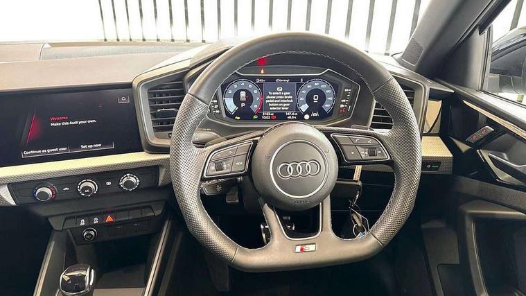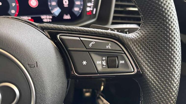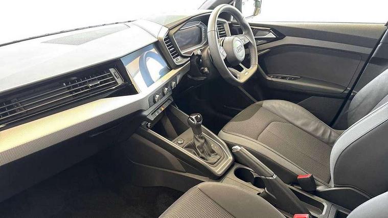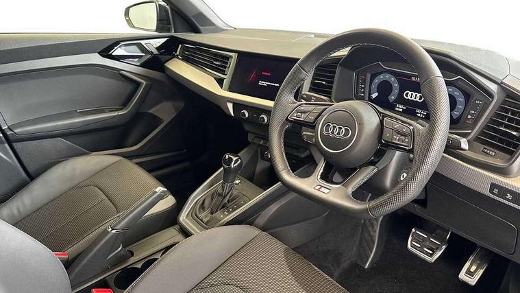 10.25" Digital instrument cluster display classis style instrument dials + speed, odometer, time, outside temperature, telephone menu + fuel level warning, Advanced driver attention and drowsiness monitor, Audi connect emergency call and service, Audi remote connect and control, Audi smartphone interface, Bluetooth interface, Camera based traffic sign recognition, Cruise control, Driver's information system, Electromechanical power steering, Lane departure warning system, Rear parking sensor, Service interval indicator, Speed limiter, Start stop system with recuperation, Voice control system, Washer fluid level indicator, Sports suspension, 2 x USB type C connection points, 6 loudspeakers, DAB Digital radio, MMI radio plus with 10.1" colour MMI display screen and MMI touch, Auto dimming rear view mirror, Black side skirts, Body coloured bumpers, Door sill trims with aluminium inlays and logo, Electric front and rear windows, Electrically adjustable, heated, folding door mirrors with integrated LED side indicator, Front side air inlets in grained matt black and C frame in anthracite black, Front wing badges, Headlight cleaning system, Heat insulating glass windscreen and side windows, Heated rear windscreen, High level LED brake light, LED daytime running lights, LED headlights with range control LED rear lights + dynamic rear indicators, Privacy glass, Radiator grille and rear diffuser in matt anthracite black, Radiator protective grille frame in matt aluminium silver, Rain and light sensors, Rear fog lights, Rear side wing doors, Rear wiper, Side front spoiler lips in grained matt black, 12V socket in centre console with two cup holders, 3 rear seats with headrests, 3 seat bench in 2nd row, 3 spoke flat bottomed multi-function plus leather steering wheel with S badging, grips in preforated leather, contrast stitching and paddle shift, 40:60 Split folding rear seat or fully collapsed, Black cloth headlining, Front and rear velour black floor mats with contrast stitching in fine silver, Front head restraints, Front passenger seat, Height and reach adjustable steering wheel, Interior lighting includes roof module, front and rear reading lights and right luggage compartment lighting, ISOFIX child seat mounting for front passenger and outer rear seats including top tether attachment point of outer rear seats, Leather gear knob with aluminium trim, Leather handbrake grip, Manual air conditioning, Manual height adjustable for driver and front passenger seat, Manually adjustable lumbar support in front seats, Stainless steel pedals, Ambient lighting package - A1, Black styling pack - A1 Sportback Black Edition, Luggage compartment pack - A1, 3x3 point rear seatbelts, Audi pre-sense front with pedestrain and cyclist recognition, Brake assist function, Driver and front passenger airbag with front side and head airbags, Electronic Stability Control including ABS, EBD, ASR and EDL, Front passenger airbag deactivation switch, Hill hold assist, Manual rear child locks, Seatbelt height adjustment for front seats, Seatbelt monitoring, Tyre pressure loss indicator, Warning triangle and first aid kit, Anti theft alarm, Anti theft wheel bolts, Immobiliser, Remote control key with safelock, Aluminium trim for control switches, air vents and digital instrument cluster, Black dashboard, Silver grey inlays polygon structure in diamond paint finish, Structured grey accent surfaces insert of air vents, interior door handle recesses and centre console in quartz paint finish,