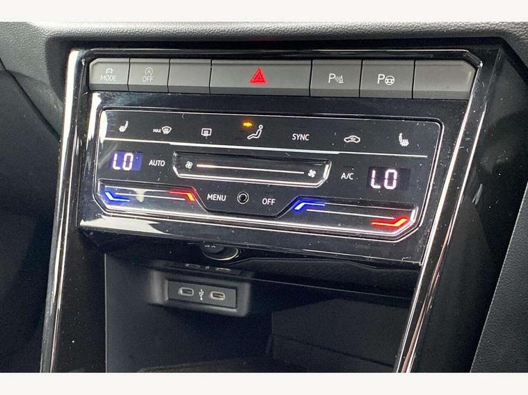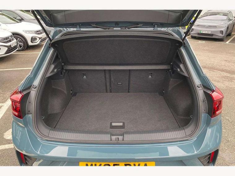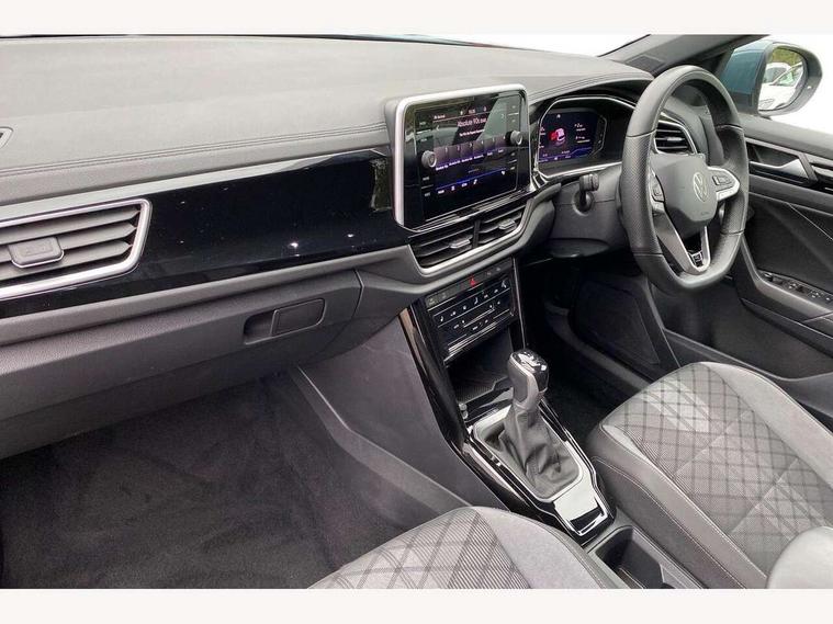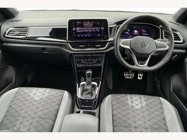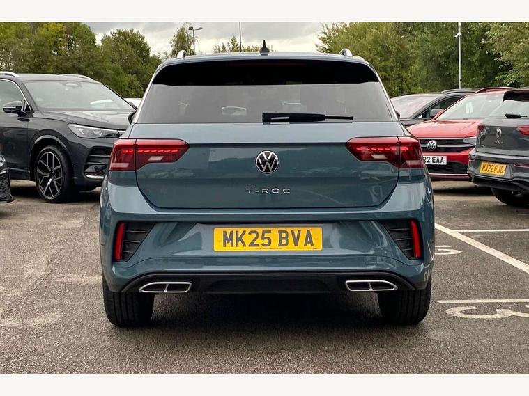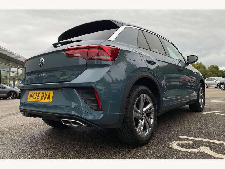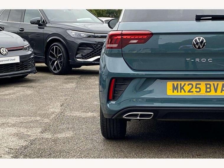 10.25" Digital cockpit pro, Advanced driver attention and drowsiness monitor, Emergency call service, Lane keeping system Lane Assist, Mobile phone interface, Modified key software - reduce switch off time for key status change to Long no motion, Online services, Park assist including front and rear parking sensors, Service interval indicator, Tailgate/trunk lid release from outside, Think blue trainer driver tips and journey analysis, Warning sound and light for front seatbelts unfastened, Wireless app connect, Battery regeneration during braking, Start/stop function with battery regeneration, DAB Digital radio, Diversity antenna for FM reception, Front and rear 6 speakers, Music playback - MP3, WMA and AAC files, Premium USB cable in choice of either Apple or Android smartphone compatibility, SD card slot, Simultaneous pairing of 2 compatible mobile devices, Title and cover art display, We Connect and We Connect Plus functionality, Auto dimming interior rear view mirror, Automatic hazard lights activation under emergency braking, Automatic headlight control with LED separate daytime running lights with coming/leaving home function, Body coloured exterior mirror housings and door handles, Electrically adjustable and heated door mirrors, Extended roof spoiler, Exterior mirrors aspherical on driver side, convex on front passenger side, External USB type C socket and charging sockets, Front windscreen wiper with intermittent wipe and 4 position delay, Heated rear window, LED 3rd brake light, LED rear combination lamps, LED rear number plate lights, Power windows with comfort operation and circuit breaker, Privacy glass for rear side windows and rear window, R-Line design body coloured bumpers, Rain sensor, Rear exhaust tailpipe, Rear fog light on one side and reversing lights on both sides, Rear side wing doors, Rear wash/wipe with intermittent wipe setting, Remote electrically foldable door mirrors, puddle lights and reverse activated passenger's door mirror, 12V power socket in centre console, 3 rear head restraints, 3 seat bench in 2nd row, 4 load lashing points in luggage compartment, Air care climatronic air conditoning system with active combination filter and 2-zone temperature control, Black roof lining, Chrome plated decorative trims, Chrome plated radiator grille inserts, air vent surrounds and light switch surrounds, Door and side trim panel with leatherette insert, Front + rear carpet mats, Front centre armrest, Front cupholders x 2, Front footwell illumination, Front reading light, Front scuff plates with R Line logo, Front seat back storage pockets, Glove compartment door with light, Instrument lighting, white adjustable panel illumination, Interior ambient lighting and surround lighting, Interior light delay, Isofix child seat preparation, Leather gearshift handle, Load-through provision with cup holder when folded down ('Unsplit rear seat bench, split folding backrest, with centre armrest), Luggage compartment lighting, Single front passenger seat, Stainless steel pedals, Storage compartment in left and right luggage area, Storage compartment in rear doors, Storage compartments in driver and front passenger doors, Sunvisors with illuminated vanity mirrors, Variable boot floor, height adjustable and removable, Driver assistance pack without proactive passenger protection - T-Roc, 3 point height adj front seatbelts + pretensioners, 3 point seatbelts in outer rear with ECE label, ABS, Child locks on rear doors, City emergency braking and pedestrian monitoring, Driver and front passenger airbag with front passenger airbag deactivation, Driver and front passenger safety-optimised head restraints, Drivers seatbelt reminder, Electronic parking brake, Electronic Stability Control (ESC) inc EDL (Electronic Differential Lock) and ASR (Traction Control), Front and rear passengers curtain airbag system including front side airbags, Hill start assist, Predictive pedestrian protection, Rear disc brakes, Two tone horn, Tyre pressure loss indicator, Volkswagen roadside assistance, Piano black decorative inserts in dashboard and front door trim panels, Trims for alloy wheels,