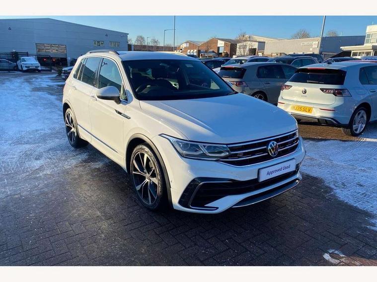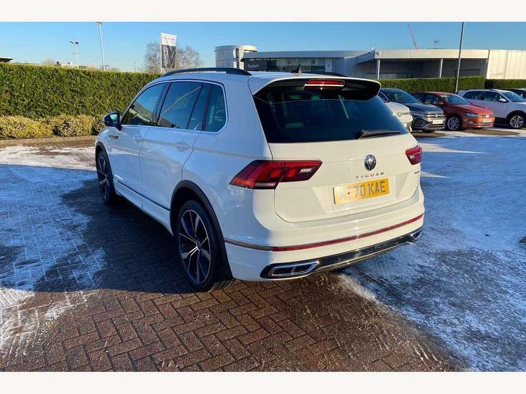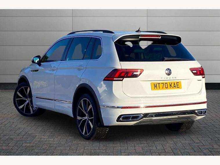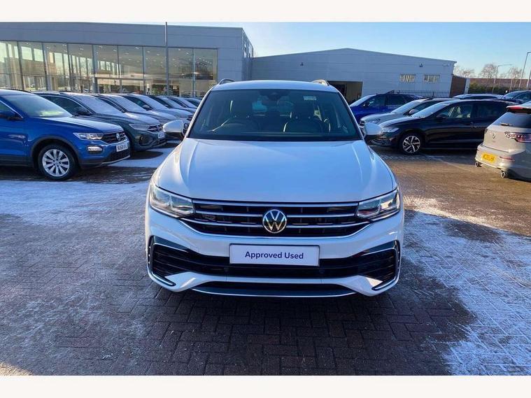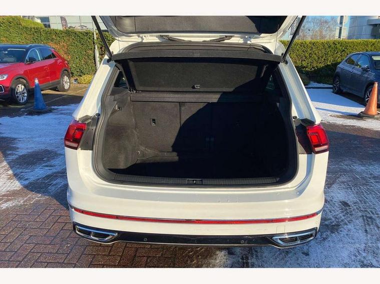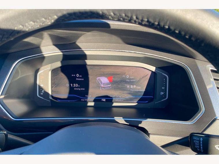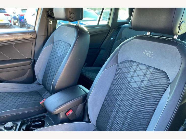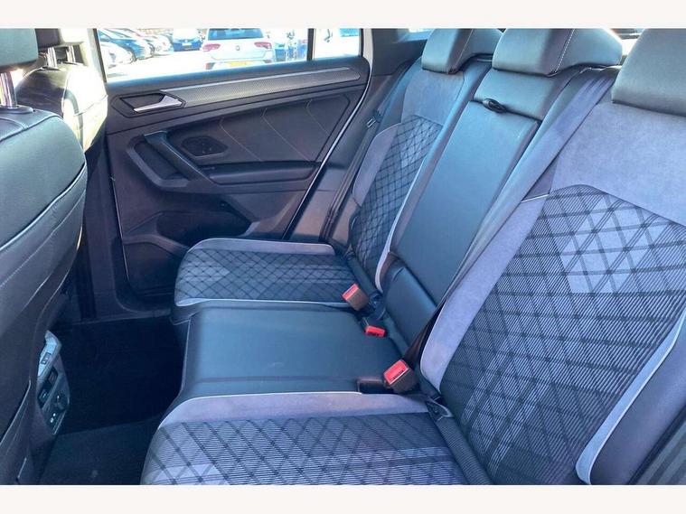 Adaptive cruise control ACC stop and go including speed limiter, App-Connect incl. App-Connect Wireless for Apple CarPlay and Android Auto, Bluetooth phone integration system, Digital Cockpit Pro - Active info display, Distance control assist, Driver alert system, Driver profile selection, Dynamic road sign display, eCall emergency call system, Electromechanical speed sensitive power steering, Front/rear Parking distance control, Lane keeping system Lane Assist, Lights on warning, Multifunction front facing camera, Outside temperature display, Premium multifunction display with multi colour display, Service interval indicator, Start/stop system with regenerative braking, Tailgate/trunk lid unlocking from outside, Warning sound and light for doors and tailgate open, Battery regeneration during braking, Diesel particulate filter, Misfuel prevention device for diesel engine, XDS electronic differential lock for improved traction and handling, 2 USB-C ports in the front, 1 USB-C charging socket on the center console in the rear, Diversity antenna for FM reception, Radio, SD card slot, Simultaneous pairing of 2 compatible mobile devices, SMS functionality - read, compose and send SMS messages using touch-screen display, Title and cover art display, Auto dimming interior rear view mirror, Automatic headlight control system, Black roof rails, Body colour door handles, Body coloured bumpers in R Line style, Chrome moldings on the side windows, Coming/leaving home lighting function, Dynamic headlight range control, Front and rear electric windows, Heated rear window, High level 3rd brake light, Laminated safety glass windshield, heat and sound insulating, LED rear number plate lights, License plate carrier in front and rear, Poor weather light and cornering light, Power adjustable, folding and heated door mirrors with surround lighting, front passenger exterior mirror lowering function, Privacy glass for rear side windows and rear window, R Line body kit, R Line side sills, Rain sensor windscreen wipers, Rear exhaust tailpipe, Rear fog lamp, Rear spoiler in R style, Rear windscreen washer and wiper with interval delay, Side and rear windows in heat insulating glass, Trailer Stability Programme, Unique R Line badging, Windscreen wipers/ intermittent wipe + 4 position delay, 12V outlet in center console rear and in luggage compartment, 12V outlet in front and tray, 2 cup holders in front, 2 LED front reading lights, 2 LED rear reading lights, 3 rear headrests, 4 load lashing points, 40:20:40 split folding rear seats, Air Care Climatronic 3 zone automatic climate control with enhanced air filter and controls in the rear, Backrest release for left front seat, Black headlining, Brushed stainless steel pedals and footrest, Carpet mats in front and rear with decorative stitching in Gray, Door and side trim panel in foam film, insert in leatherette, Driver + front passenger lumbar support, Front footwell illumination, Front seats head restraints (x-adjustment), Height adjustable front seats, Height/reach adjust steering wheel, Instrument lighting white adjustable panel illumination, Interior light with delay, Isofix Preparation 2 Rear child seats, Leather gear knob, Leather wrapped multifunction steering wheel with paddle shift, Lockable cooled glovebox, Luggage compartment lighting, Rear bench seat asymetrically split folding, longitudinally movable and folding with load-through hatch and center armrest, Remote unlocking for rear seat backrest, Removable luggage cover, Safety optimised front head restraints, Sliding/reclining rear seats, Standard rear seat release, Storage compartment in driver's door, Storage compartment in passenger's door, Storage compartment in rear doors, Storage compartments in luggage area left and right, Storage tray on dashboard, Sun visors with illuminated vanity mirrors, Tool kit, Top front comfort seats, Variable boot floor, height adjustable and removable, Ambience pack - Tiguan R Line, Driver assistance pack plus - Tiguan Auto, 3 point seat belt for centre rear seats, 3 point seat belts with seat belt pretensioners for the outer rear seats, Active bonnet, Curtain airbags for front and rear passengers, Driver/Front Passenger airbags, Drivers knee airbag, Electronic parking brake with auto hold, Electronic Stability Control with driver steering recommendation, ABS, ASR, EDL, EDTC and trailer stabilization, Front assist with autonomous emergency braking (for Adaptive Cruise Control ACC up to 130 mph), Front disc brakes, Front passenger airbag deactivation, Front side airbags, Height adjustable front 3 point seatbelts + pretensioners, Hill hold control, Pedestrian monitoring system, Rear disc brakes, Rigid safety cell with front and rear crumple zones, Two tone horn, Warning sound and light for front seat belts if unfastened, Warning triangle, Anti theft alarm system with interior monitoring, backup horn and towing protection, Anti theft wheel bolts, Electronic engine immobiliser, 20" Misano black with diamond turned surface alloy wheels with Airstop tyres,