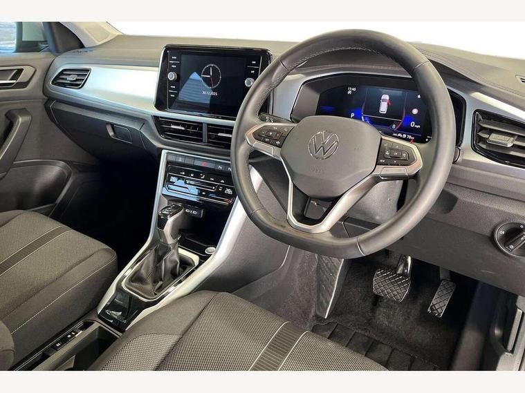 Advanced driver attention and drowsiness monitor, Dynamic road sign display, Emergency call service, Lane keeping system Lane Assist, Mobile phone interface, Modified key software - reduce switch off time for key status change to Long no motion, Online services, Park assist including front and rear parking sensors, Power assisted speed sensitive steering, Rear view camera, Service interval indicator, Tailgate/trunk lid release from outside, Think blue trainer driver tips and journey analysis, Warning sound and light for front seatbelts unfastened, Wireless app connect, Battery regeneration during braking, Front shock absorption, Rear shock absorption chassis with increased ride height, Start/stop function with battery regeneration, DAB Digital radio, Diversity antenna for FM reception, Music playback - MP3, WMA and AAC files, Premium USB cable in choice of either Apple or Android smartphone compatibility, SD card slot, Simultaneous pairing of 2 compatible mobile devices, Title and cover art display, We Connect and We Connect Plus functionality, Auto dimming interior rear view mirror, Automatic hazard lights activation under emergency braking, Automatic headlight control with LED separate daytime running lights with coming/leaving home function, Black roof rails, Body coloured bumpers and radiator grille with chrome trim and front fog lamps with chrome bezel, Body coloured exterior mirror housings and door handles, Electrically adjustable and heated door mirrors, Extended roof spoiler, Exterior mirrors aspherical on driver side, convex on front passenger side, External USB type C socket and charging sockets, Front windscreen wiper with intermittent wipe and 4 position delay, Heated rear window, LED 3rd brake light, LED rear combination lamps, LED rear number plate lights, Power windows with comfort operation and circuit breaker, Privacy glass for rear side windows and rear window, Rain sensor, Rear exhaust tailpipe, Rear fog light on one side and reversing lights on both sides, Rear side wing doors, Rear wash/wipe with intermittent wipe setting, Remote electrically foldable door mirrors, puddle lights and reverse activated passenger's door mirror, 12V power socket in centre console, 3 rear head restraints, 3 seat bench in 2nd row, 4 load lashing points in luggage compartment, Air care climatronic air conditoning system with active combination filter and 2-zone temperature control, Black stitching for floor mats, Ceramique roof liner, Cloth upholstery, Door and side trim panel in cloth, Drawer under drivers seat, Driver/front passenger seat height adjustment, Front centre armrest, Front comfort sports seats, Front cupholders x 2, Front reading light, Front seat back storage pockets, Glove compartment door with light, Instrument lighting, white adjustable panel illumination, Interior ambient lighting and surround lighting, Interior light delay, Isofix child seat preparation, Leather gearshift handle, Load-through provision with cup holder when folded down ('Unsplit rear seat bench, split folding backrest, with centre armrest), Luggage compartment lighting, Lumbar support for driver's and front passengers seat, Non-folding front passenger seat backrest, Single front passenger seat, Storage compartment in left and right luggage area, Storage compartment in rear doors, Storage compartments in driver and front passenger doors, Sunvisors with illuminated vanity mirrors, Variable boot floor, height adjustable and removable, Driver assistance pack without proactive passenger protection - T-Roc Life/Match, 3 point height adj front seatbelts + pretensioners, 3 point seatbelts in outer rear with ECE label, ABS, Child locks on rear doors, City emergency braking and pedestrian monitoring, Driver and front passenger airbag with front passenger airbag deactivation, Driver and front passenger safety-optimised head restraints, Drivers seatbelt reminder, Electronic parking brake, Electronic Stability Control (ESC) inc EDL (Electronic Differential Lock) and ASR (Traction Control), Front and rear passengers curtain airbag system including front side airbags, Front disc brakes, Hill start assist, Predictive pedestrian protection, Rear disc brakes, Two tone horn, Tyre pressure loss indicator, Volkswagen roadside assistance, Alarm with interior protection, Keyless locking and starting system keyless access with safelock, Pewter matt decorative inserts for intrument panel, centre console and door panels at the front, Trims for alloy wheels,