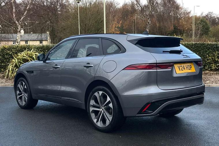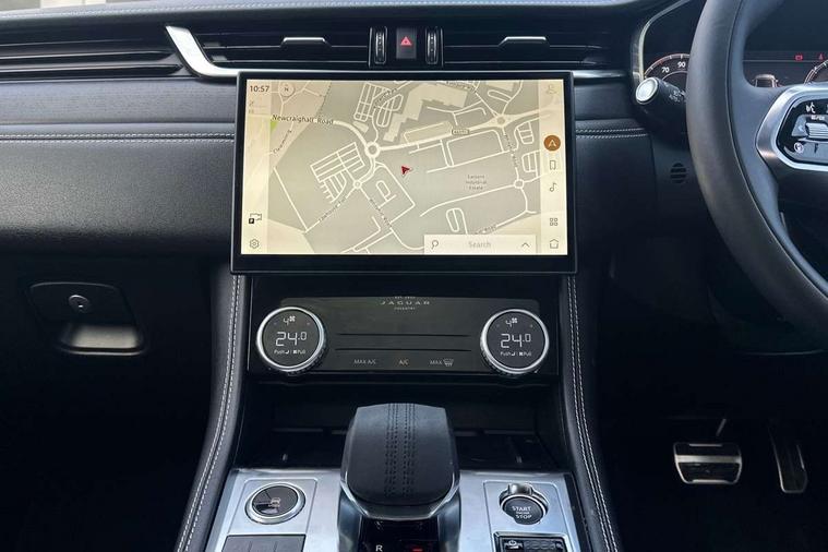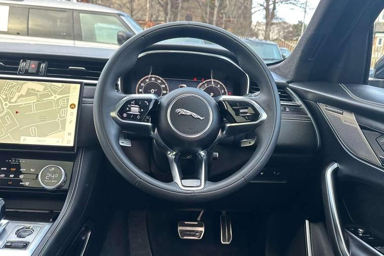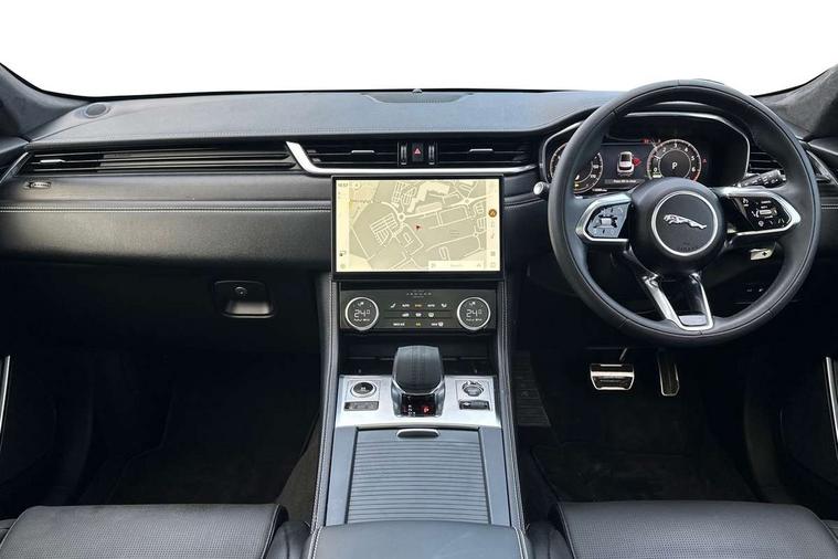 11.4" touchscreen, Adaptive cruise control with steering assist, Android Auto, Apple car play, Blind spot assist, Bluetooth connectivity, Clear exit monitor, Driver alert system, Driver condition monitor, eCall emergency call system, Eco driving style assistant, Electric power assisted steering, InControl remote, Interactive driver display digital with 12" TFT display, Jaguar Toggle shift selector, Lane departure warning system, Lane keep assist, Outside temperature gauge, Personalisation profile management, Pivi pro connected navigation system with app interface and media storage, Pro services and wifi hotspot, Push button starter, Rear collision monitor, Rear traffic monitor, Service interval indicator, Speed proportional steering, Start up sequence with movement in dials and lighting, Traffic sign recognition with adaptive speed limiter, Trip computer, Voice control system, Wireless device charging, 7 kW onboard charger, 8 speed automatic transmission, AC/DC charging, Adaptive dynamics, All terrain progress control, All Wheel Drive (AWD), Configurable dynamics, Home charging cable, Open differential with torque vectoring by braking, Public charging cable, AM/FM radio, Bluetooth streaming, DAB Radio (Digital Audio Broadcasting), Dynamic volume control, InControl apps, InControl protect, iPod integration, 3 flash lane change indicators, AHBA and animated directional indicators, Approach Illumination, Auto dimming rear view mirror, Automatic headlights, Electric heated/power fold memory door mirrors with approach lights and auto dimming driver side, Electric windows with one touch open/close and anti trap, F-Pace and R Dynamic badge, Green tinted glass, Heated front windscreen + heated washer jets, Heated rear window with timer, Illuminated metal tread plates with Jaguar script, Jaguar script and leaper, LED High level third brake light, LED tail lights, Metal load space scuff plates, Non acoustic front windscreen, P400e AWD badge, Privacy glass (rear side windows and rear screen), R Dynamic badge on side door, Rain sensor windscreen wipers, Rear fog lights, Rear metal tread plates, Rear side wing doors, Rear wiper, Trailer stability assist, Variable front intermittent wipers, 12V power point front, 3 rear headrests, 3 seat bench in 2nd row, Additional power sockets - Two additional USB sockets in rear centre console and one 12V socket in trunk, Air distribution speed, Bright metal foot pedals, Centre armrest console, Centre console with side storage, Configurable cabin lighting, Deletion loadspace storage rails, Door sill tread plates, Ebony suede cloth headlining, Electrically adjustable steering column, Fold flat front seats, Front centre armrest with storage compartment, Front door storage space, Glovebox finisher with jaguar script, Heated steering wheel, Hooks in loadspace, Illuminated glovebox, Interior front door handles with separate locking switches, ISOFIX on outer rear seats, Jaguar sense, Leather steering wheel, Luggage tie downs in loadspace, Mist sensing, Multifunction steering wheel, Overhead lighting console, Overhead stowage for sunglasses, Passive front head restraints, Premium carpet mats, Rear air vents, Rear armrest with twin cupholders, Rear centre headrest, Rear door storage space, Reversible boot floor, Satin chrome gearshift paddles, Shopping bag hook, Single front passenger seat, Sunvisors with illuminated vanity mirrors, Twin front cupholders with cover, Online Pack with data plan - F-Pace, 380mm front brakes and 325mm rear brakes, 3x3 point rear seatbelts, ABS, All surface progress control (ASPC), Brake pad warning light, DSC - Dynamic Stability Control, Electric parking brake (EPB), Emergency brake assist, Front airbags with passenger seat occupant detector, Front and rear seatbelt reminder, Front side airbags, Full length side window curtain airbag, Hill launch assist, Power operated child locks, Traction control, Tyre pressure monitoring system, Immobiliser, Keyless entry, Keyless Start, Locking wheel nuts, Perimeter alarm, Remote central locking, Valet mode,