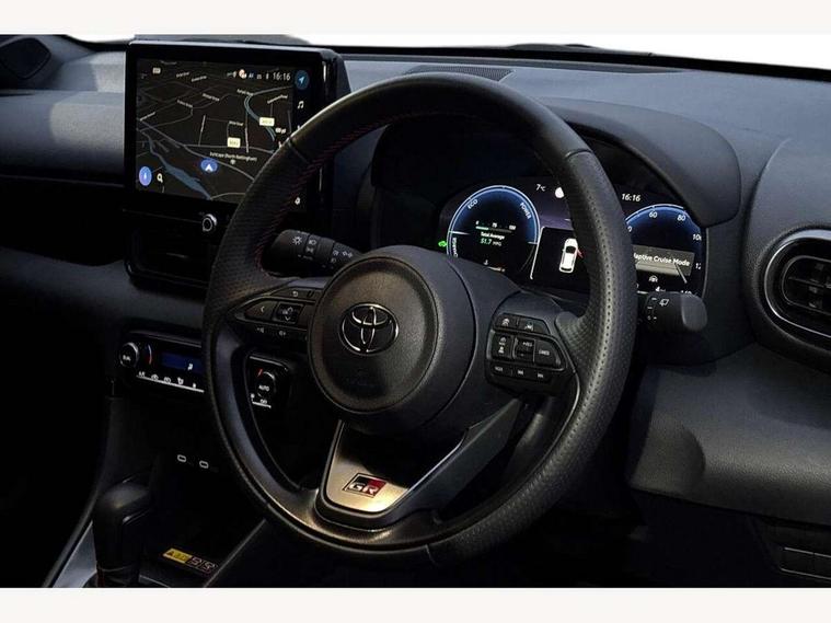 12.3" Digital Combimeter, Adaptive cruise control, Adjustable speed limit with speed warning, Bluetooth connectivity, Colour binocular inspired displays with digital speedometer, E-call, Electric power steering, Hybrid energy display, Lane trace assist, Multi information display switches on steering wheel, Pre-collision system (PCS), Reversing camera, Tailgate, Voice recognition, Wireless charger, Vehicle Stability Control (VSC), 10.5" Toyota smart connect multimedia with wireless smartphone integration incl apple car play and cloud Navigation, 6 speakers, Toyota Touch 3 system with DAB radio, USB connection, Acoustic windscreen glass, Auto high beam assist, Auto windscreen wipers, Automatic headlights, Dark chrome lower front grille, Electric adjustable heated door mirrors, Follow me home headlights, Front auto power windows with anti jam protection, LED daytime running lights, LED front fog lights, LED front light guide, LED Headlights, LED High mounted stop lamp, LED Indicators, LED rear light guide, Manual headlight levelling, Painted chequered front grille with hot stamp in mesh design, Rain sensor, Rear auto power windows with anti jam protection, Rear privacy glass, Rear roof spoiler, Rear side wing doors, Rear wiper, Shark fin antenna, Turning signal integrated indicators in door mirrors, Variable front intermittent wipers, 3 adjustable rear headrests, 3 seat bench in 2nd row, 3 spoke leather steering wheel, 60/40 split folding rear seat, Active headrests, Adjustable boot height, Ambient lighting, Black roof lining, Coat hooks in rear grab handles, Cup holders (2 front & door), Data Communication Module (DCM) connected services, Dual zone automatic air conditioning, Front armrest, Front sport seats, Glovebox, GR embossed in headrests, Height adjustable driver's seat, Height adjustable passenger seat, Isofix seat fixing, Leather gearshift, Map pockets on the backs of the front seats, Pollen filter, Shopping bag hooks, Single front passenger seat, Suede upholstery, Tilt/telescopic steering column, 3 point seatbelts on all rear seats, ABS+EBD+Brake assist, Electronic parking brake, Emergency brake light system (EBS), Front passenger airbag on/off switch, Front seatbelt reminder, Hill start assist control (HAC), Rear child proof door locks, Rear seat belt reminder, Supplemental Restraint System (SRS) 8 airbags: Driver & passenger's airbags, dual side curtain airbags, side impact airbags, front centre airbag, Toyota Safety Sense 3 with over the air updates, Tyre pressure warning system, 2x Master key, Alarm/immobiliser, Keyless smart entry with push button start, Remote AC via MyT, Remote locking via MyT, Remote powered central double locking doors, GR Sport interior styling with accents and exterior styling, Piano black interior trim, Soft touch instrument panel, 18" Black Machined-face, 10 spoke alloys wheels, Space saver spare wheel,