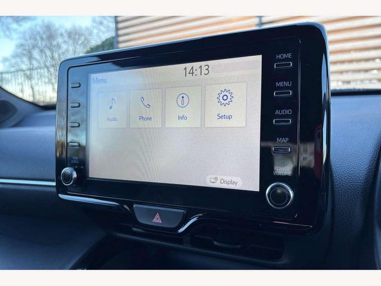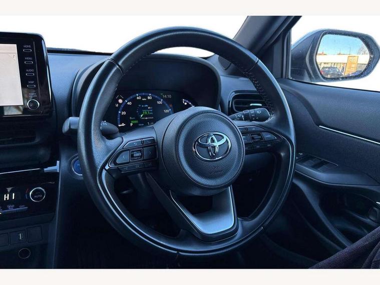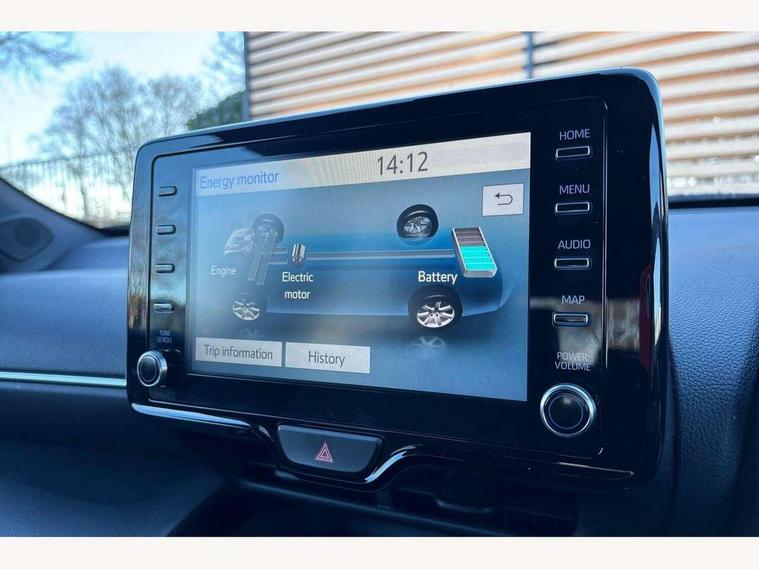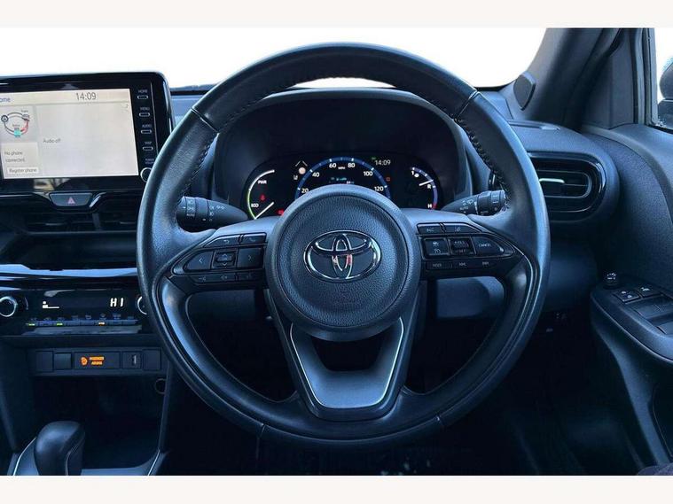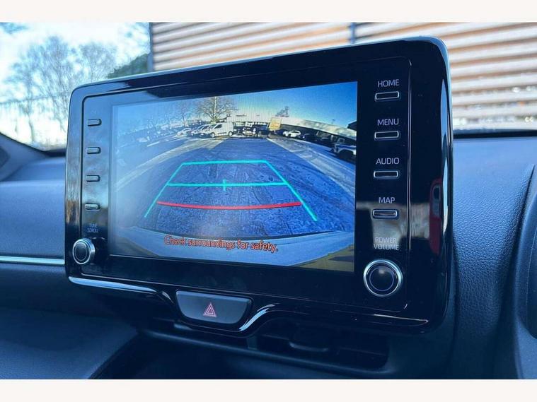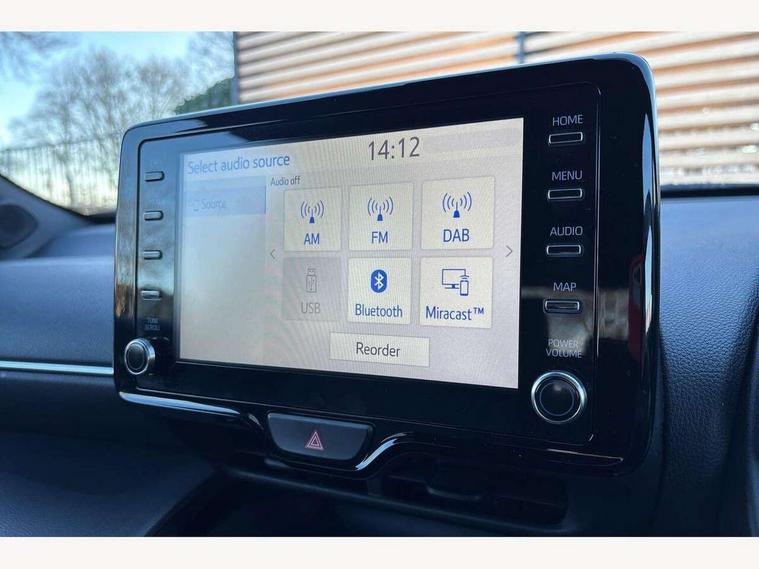 7" Multi information display screen, 8" Toyota touch 2 multimedia system with Smartphone integration with Apple CarPlay and Android auto, Adjustable speed limiter, Bluetooth connectivity, Driver attention alert system, eCall emergency system, Electric power steering, Full range intelligent adaptive cruise control, Hybrid system indicator, Key reminder warning, Lane trace assist, Multimedia, audio, telephone and voice recognition switches on steering wheel, My T Connected services, Pre-collision system enhanced with emergency steering assist, Reversing camera, Road sign assist - RSA, Steering assisted vehicle stability control, 6 speakers, DAB Digital radio, USB connection, 3rd brake light, Acoustic windscreen glass, Aluminium roof rails, Anti-jam protection on power windows, Auto high beam [AHB] with on/off switch, Automatic headlights, Black lower front grille, Black Shark-fin antenna, Black upper front grille, Black wheel arch mouldings, Body colour door handles, Body colour front bumper, Body colour rear bumper, Electric adjustable heated door mirrors, Follow me home headlights, Front and rear electric windows with auto up/down function, Front intermittent wipers, Headlight cut off reminder, Indicators integrated on door mirrors, Intermittent rear wiper, LED daytime running lights guide, LED front fog lights, LED front light guide, LED Indicators, LED projector headlights, LED rear light guide, Manual headlight levelling, Manually retractable door mirrors, Noise reduction layer on windscreen, Privacy glass, Rain sensor, Rear LED lights with sequential indicators, Rear side wing doors, Rear spoiler, Rear window defogger, 12v power outlet - front, 2x Rear coat hooks, 3 seat bench in 2nd row, 3 spoke leather steering wheel, 40:20:40 split folding rear bench seat, Adjustable speed limiter switch on steering wheel, Auto air conditioning, Black roof lining, Boot light, Central armrest, Centre console in light blue ambent lighting, Driver and front passenger personal lights, Fabric door trim, Fabric upholstery, Footwell in light blue ambient lighting, Front console box, Front cup holders, Front head restraints, Glovebox, Height adjustable driver's seat, Height adjustable front passenger seat, Hooks for luggage holding belts, ISOFIX child restraint system, Lane departure alert switch on steering control, Leather gearshift, Light blue ambient lighting on front doors, Manual telescopic and tilting steering wheel, Mirror on driver and passenger sun visor, Pollen air filter, Rear cup holders, Rear head restraints, Single front passenger seat, Soft tonneau cover, 3x3 point rear seat belts, ABS+EBD+Brake assist, Driver and passenger central airbags, Driver and passenger front airbags, Driver and passenger side airbags, Electronic parking brake, Emergency brake light system (EBS), Front seat belt reminder, Hill start assist control (HAC), Passenger airbag on/off switch, Pre-collision system with pedestrian and cyclist detection, Rear door child safety locks, Rear passenger side airbags, Rear seat belt reminder, Traction control, Tyre pressure warning system, Immobiliser, Intrusion alarm, Keyless smart entry with push button start, Power door locks, Power passenger window lock, Remote door lock, Tyre repair kit,