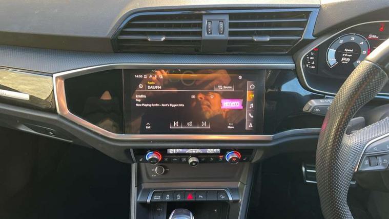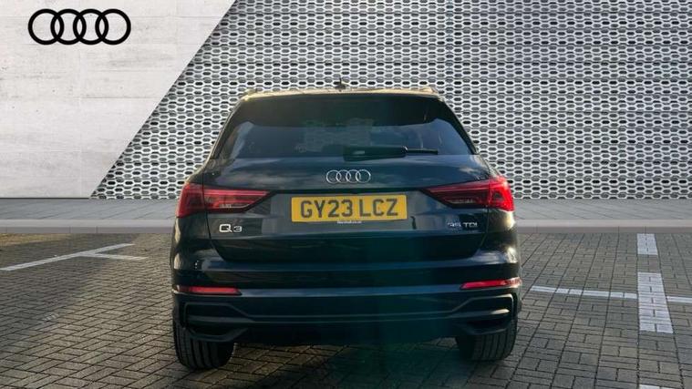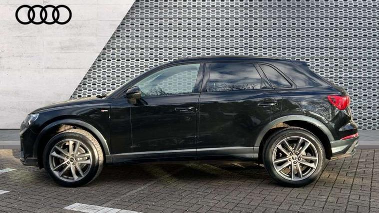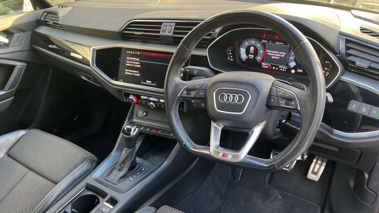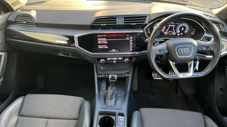 Amazon alexa Integration, Audi drive select, Audi lane departure warning, Audi smartphone interface includes wireless Apple carplay/Android Auto, Audi Virtual Cockpit - 10.25" display, Bluetooth interface, Camera based traffic sign recognition, Legal emergency call, MMI Navigation Plus with high resolution 10.1 inch touchscreen colour display, Power operated tailgate, Progressive steering, Service interval indicator, Start stop system with recuperation, Voice control system with natural language interaction, Diesel particulate filter, Sports suspension, 2 USB-C ports with charge and data functions, 6 passive loudspeakers, DAB digital radio module, Acoustic windscreen, Auto dimming frameless rear view mirror, Black roof rails, Electrically folding, adjustable and heated door mirrors with integrated LED side indicators and kerb view function for passenger side, Front and rear electric windows, Front fog lights, Grille vertical bars in aluminium silver/Matt, High gloss black finish B and C pillars, LED Dynamic rear indicators, LED headlights with LED daytime running lights, LED rear lights, LED third brake light, Privacy glass dark tinted rear and rear-side windows (from B-pillar backwards), Rain and light sensors, Rear diffuser grille in grained matt black, Rear diffuser strip in matt anthracite black, Rear side wing doors, Rear wiper, S line bumpers in contrasting Manhattan grey, Variable front intermittent wipers, 12V socket in rear centre console, 3 seat bench in 2nd row, 40:20:40 folding with manual adjustment for 60:40 forwards/backwards position and backrest angle, Adjustable rear seat bench/backrest with centre armrest and cupholder, Black cloth headlining, Dual zone electronic climate control, Front and rear black floor mats with contrast stitching in rock grey, Front and rear headrests, Front and rear roof module including reading lights, Front centre armrest, Glove compartment lighting, Height and reach adjustable steering wheel, Illuminated door sill trims with S logo, ISOFIX child seat mounting for front passenger with airbag deactivation and outer rear seat including top tether attachment point for outer rear seats, Luggage compartment light, Manual front seats with height adjustment, Perforated leather gearknob, Single front passenger seat, Stainless steel luggage compartment sill finisher, Stainless steel pedals, Ambient lighting pack - Q3, Black styling pack - Q3, Non smoking pack - Q3, 3x3 point rear seatbelts, 6 airbags - Driver, front passenger, curtain and side windows, Audi pre-sense front with pedestrain and cyclist recognition, Electrically operated child locks on rear doors, Electromechanical parking brake, Electronic stabilisation control including ABS, ASR and EDL, Front seatbelt reminder, Hill descent control, Hill hold assist, Pre sense basic, Seatbelt monitoring, Tyre pressure warning, Warning triangle and first aid kit, Anti theft alarm, Anti theft wheel bolts, Immobiliser, Remote central locking, Aluminium look interior elements, Detail dashboard around MMI touch colour display in glass look, black with surround in aluminium look, Leatherette door armrest, Piano black inlay, 19" 5 twin arm design diamond cut audi sport alloy wheels in matt grey look,