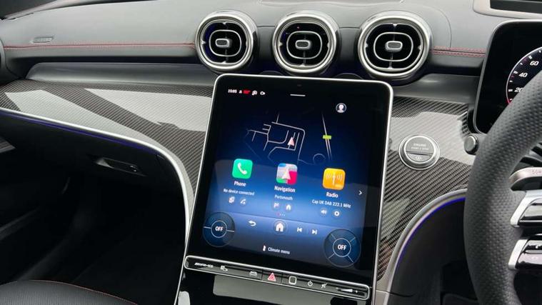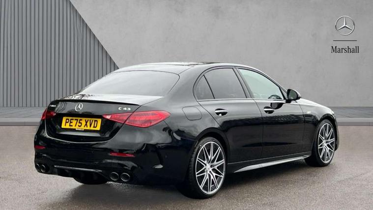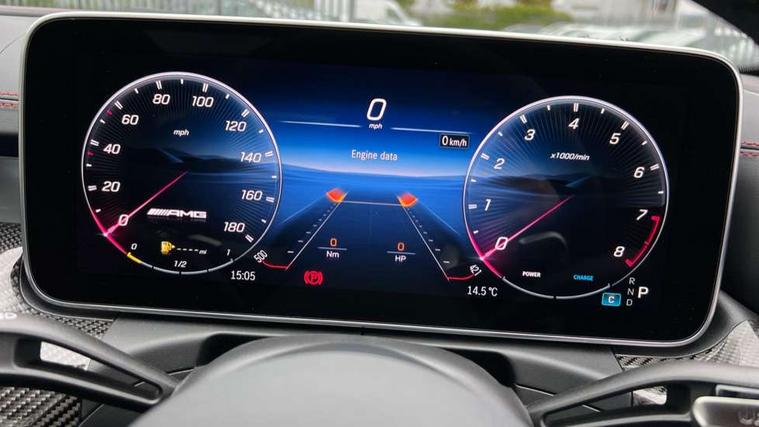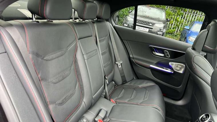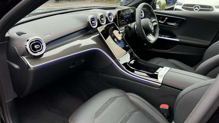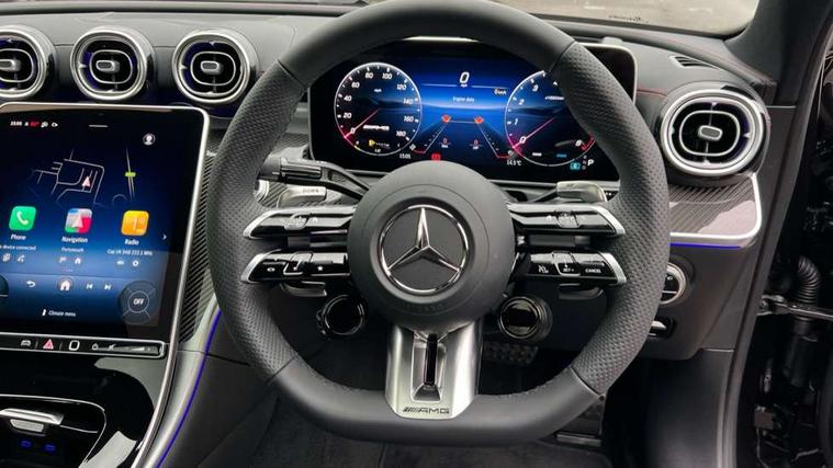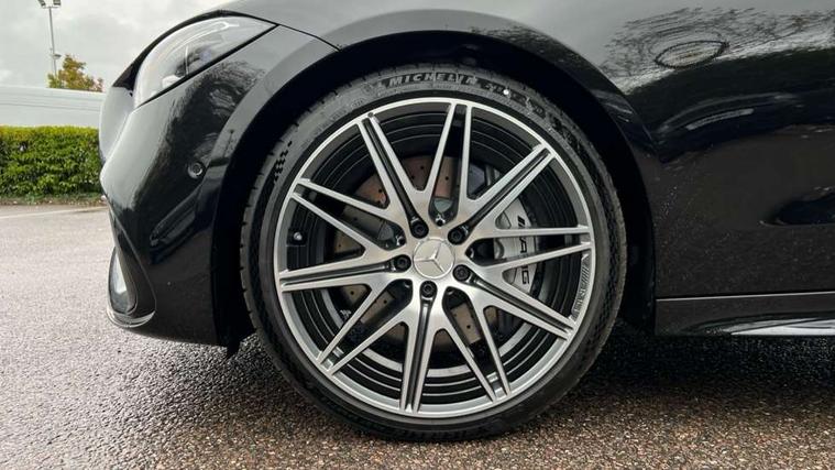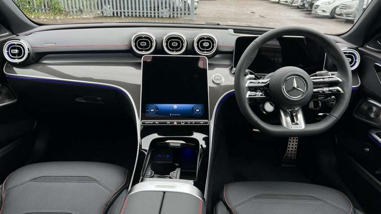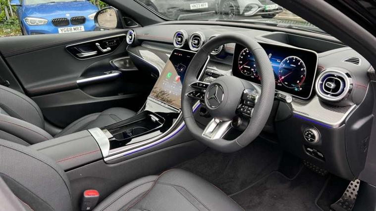 11.9" high resolution multimedia colour display, 12.3" digital instrument cluster display, AMG DYNAMIC SELECT with a choice of driving modes (Slippery, Comfort, Sport, Sport+, Individual), Attention assist, E-call, Extended MBUX functions, Finger print scanner, Fluorescent jacket for driver, Hard disc navigation, Head up Display, MBUX augmented reality for navigation, MBUX navigation premium, Outside temperature gauge, Rear axle steering, Remote services, Service indicator (ASSYST), Smartphone integration, Sports direct steer speed sensitive steering, Status display for rear seat belts in instrument cluster, Traffic sign assist, Wireless charging system for mobile devices, 66 litre fuel tank, 9G TRONIC 9 speed automatic transmission, AMG Ride Control suspension, Petrol Particulate Filter, Suspension with adaptive damping system, Burmester 3D surround sound system with sound personalisation, DAB Digital radio, MBUX multimedia system, Adaptive brake lights, Adaptive high beam assist plus, AMG body styling front apron, rear apron and side skirts, AMG fuel cap, AMG Real Performance Sound, AMG spoiler lip in body colour, Body coloured bumpers, Digital light LED headlamps, Electric panoramic glass sunroof, Electric windows with one touch opening/closing and obstruction sensors, Electrically adjustable and heated door mirrors, Flared wheel arches, High gloss black door mirror housing, LED daytime running lights, LED Indicators, LED tail lights, LED third brake light, Mercedes AMG exterior, Noise acoustic glass, Rain sensor with automatic windscreen wiper activation, Rear boot, Rear side wing doors, 3 seat bench in 2nd row, 40:20:40 split folding rear bench seat, Ambient lighting premium, Ambient lighting with projection of brand logo, AMG floor mats, AMG illuminated door sills, AMG Performance steering wheel in nappa leather, AMG steering wheel buttons, Auto Mercedes-Benz child seat recognition sensor, Black roof liner, Boot lid convenience closing feature, Double cupholder in centre console, Electrically height/reach adjustable steering column, Folding rear seat backrest, Front and rear head restraints, Gearshift paddles on steering wheel, Heated front seats, Mercedes AMG interior, Multicontour and climatised front seats, Rear top tether child seat ISOFIX attachment, Single front passenger seat, Sports seats, Stowage glove compartment, Sunvisors with vanity mirrors, THERMATIC automatic climate control, AMG exterior night pack - C Class, Interior light package - C Class, Keyless go comfort package - C Class, Memory package - C Class, Mirror package - C Class, Parking package with 360 degree camera - C Class, Stowage space pack - C Class, USB package plus - C Class, 3 rear 3 point seatbelts, Active bonnet pedestrian safety measure which detects an impact and raises bonnet, Adaptive brake system with HOLD function and brake drying in the wet, AMG high performance braking system, Anti-lock braking system (ABS), Child proof door locks, Drivers knee airbag, Drivers pelvis airbag, Dual stage driver/passenger airbags, Electric parking brake, Electronic Stability Programme (ESP), Front and rear window airbags, Front centre airbag between driver and front passenger seats, Front side airbags, Silver brake callipers, Tyre pressure monitoring system, Warning triangle and first aid kit, Antitheft alarm system, Interior monitoring system and Increased antitheft protection, Central locking with interior switch, automatic locking and crash sensor with emergency opening function, Chrome surround in electric key, Dashcam, Urban guard vehicle protection plus, Carbon fibre trim with centre console in high gloss black, Dashboard, instrument panel and beltlines in ARTICO man made leather in nappa look, 20" AMG 10 twin spoke light alloy wheels aerodynamically optimised in tanatalite grey with high sheen finish, TIREFIT with tyre inflation compressor,