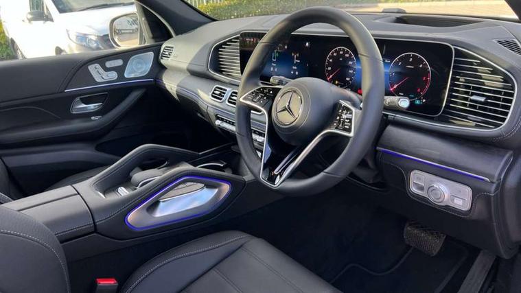 12.3 High resolution wide screen cockpit display with choice of three display styles Classic, Progressive or Sport and unique ambient lighting setting, 360 degree view camera, Active parking assist with PARKTRONIC, Attention assist, Brake wear warning display, Direct steer speed sensitive steering, DYNAMIC SELECT with a choice of driving modes (ECO, Comfort, Sport and Individual), Easy-pack tailgate - Powered opening/closing automatically, ECO start/stop function, Hard-disk navigation, Head up Display, MBUX augmented reality for navigation, MBUX voice control activated by keywords "Hey Mercedes", Mercedes Benz emergency call system, Mercedes me connect - vehicle set up and monitoring, Outside temperature display, Pre-installation for digital key transfer, Service indicator (ASSYST), Status display for rear seat belts in instrument cluster, Traffic sign assist, Trip computer in multifunction display showing current fuel consumption, Wireless charging, Wireless smartphone integration including Apple CarPlay and Android auto, 48V Technology, 4MATIC all wheel drive system for all weather traction, 85 litre fuel tank, 9G TRONIC 9 speed automatic transmission, Airmatic air suspension with adaptive damping system, Diesel particulate filter (DPF), Mild Hybrid starter alternator, Additional USB connection, Bluetooth interface for hands free and audio streaming, Burmester surround sound system, DAB digital radio tuner, Front and rear USB ports, Sound personalisation, Adaptive brake lights, Aluminium look, illuminated running boards with rubber studs, AMG bodystyling front and rear aprons and side skirts in polished aluminium, AMG Line exterior, Auto headlights, Automatically dimming rear view mirror and driver's exterior mirror, Beltlline in polished aluminium, Body colour door mirrors, Body coloured bumpers, Bright trim elements, Electric windows with one touch opening/closing and obstruction sensors, Electrically adjustable, heated, folding exterior mirrors, Exterior styling - front bumper, radiator grille and front air intakes, Heat insulating privacy glass, Heated windscreen washers, LED 3rd brake light, LED daytime running light signet, LED rear lights, Magic vision control, Multibeam LED headlights with adaptive highbeam assist plus, Panoramic sliding sunroof, Radiator grille with integrated star and single louvre in matt iridium silver with chrome trim, Radio aerial integrated into rear window, Rain sensing windscreen wipers, Rear side wing doors, Rear wiper, Roof rail system, Roof rails in polished aluminium, Transparent Bonnet, Visible twin pipe exhaust system integrated into bumper, Window surround in polished aluminium, 3 seat bench in 2nd row, 3 spoke round bottomed multifunction steering wheel in nappa leather, 3rd row of seats for 2 people, 4 way adjustable front head restraints, 4 way lumbar support for driver and front passenger, 40:20:40 split folding rear seats, AMG line interior, Black fabric roof liner, Dividing net for luggage compartment partitioning and occupant protection, Electric height/reach adjustable steering column, Electrically adjustable front seats with memory function, Front centre armrest with stowage compartment and illuminated grab handles, Gearshift paddles on steering wheel, Glove compartment - lockable, air conditioned and illuminated, Heated front seats, Heated steering wheel, Illuminated front door sill with Mercedes Benz lettering, Illuminated vanity mirrors, Interior lighting - 64 colour Ambient lighting, Leather upholstery, Luggage compartment cover, Luxury AVANTGARDE Interior, Seat occupancy sensor for front passenger seat, Single front passenger seat, Steering column gear selector, Sunvisors, Thermotronic automatic 4 zone climate control, Touchpad, Velour floor mats, Exclusive Trim package - GLE, Keyless go comfort package - GLE, Active bonnet, Anti-lock braking system (ABS), Black seat belts, Childproof locks manually operated for rear doors and electrically operated for rear power windows, Drivers knee airbag, Dual stage airbags - driver and front passenger, sidebag, and front and rear window airbags, Electronic parking brake, Electronic stability programme (ESP) with curve dynamic assist and cross wind assist, First aid kit, warning triangle and high visibility jacket, ISOFIX child seat points with automatic child seat recognition, Perforated front brake discs and brake calipers with Mercedes-Benz lettering, Pre-Safe anticipatory safety system, Three point rear seat belts, Tyre pressure monitoring system, Alarm system/interior protection/immobiliser, Central locking with interior switch, automatic locking and crash sensor with emergency opening function, Chrome surround in electric key, Dashcam, Guard 360 degree vehicle protection plus, Anthracite open pore oak wood trim, Dashboard and door beltlines in ARTICO man made leather with contrast top stitching, 21" AMG multi spoke light alloy wheels painted in himalayas grey with a high sheen finish, TIREFIT with tyre inflation compressor,